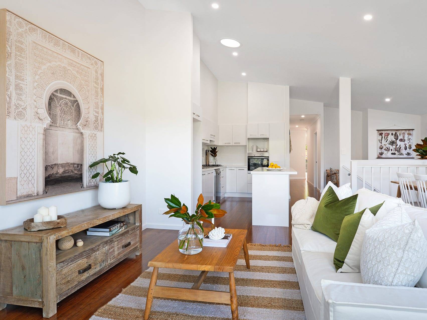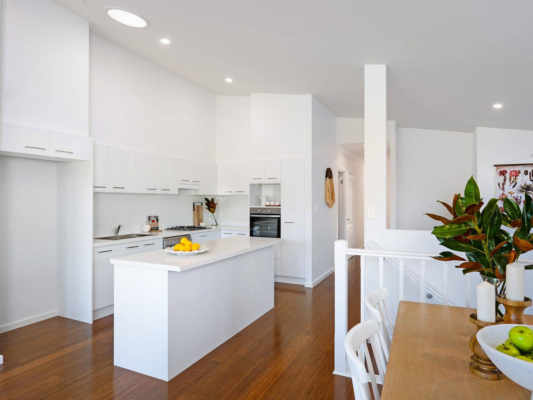 Completed in September 2018 built by Marksman Homes, we have two townhouses on offer. Both homes offer a rear North-facing aspect, which bathes both properties in sunlight and perfectly captures the rejuvenating coastal breeze. High clearance, raked ceilings amplify the sense of space and light throughout the open plan kitchen, living and dining room, complimented by seamless bamboo flooring.