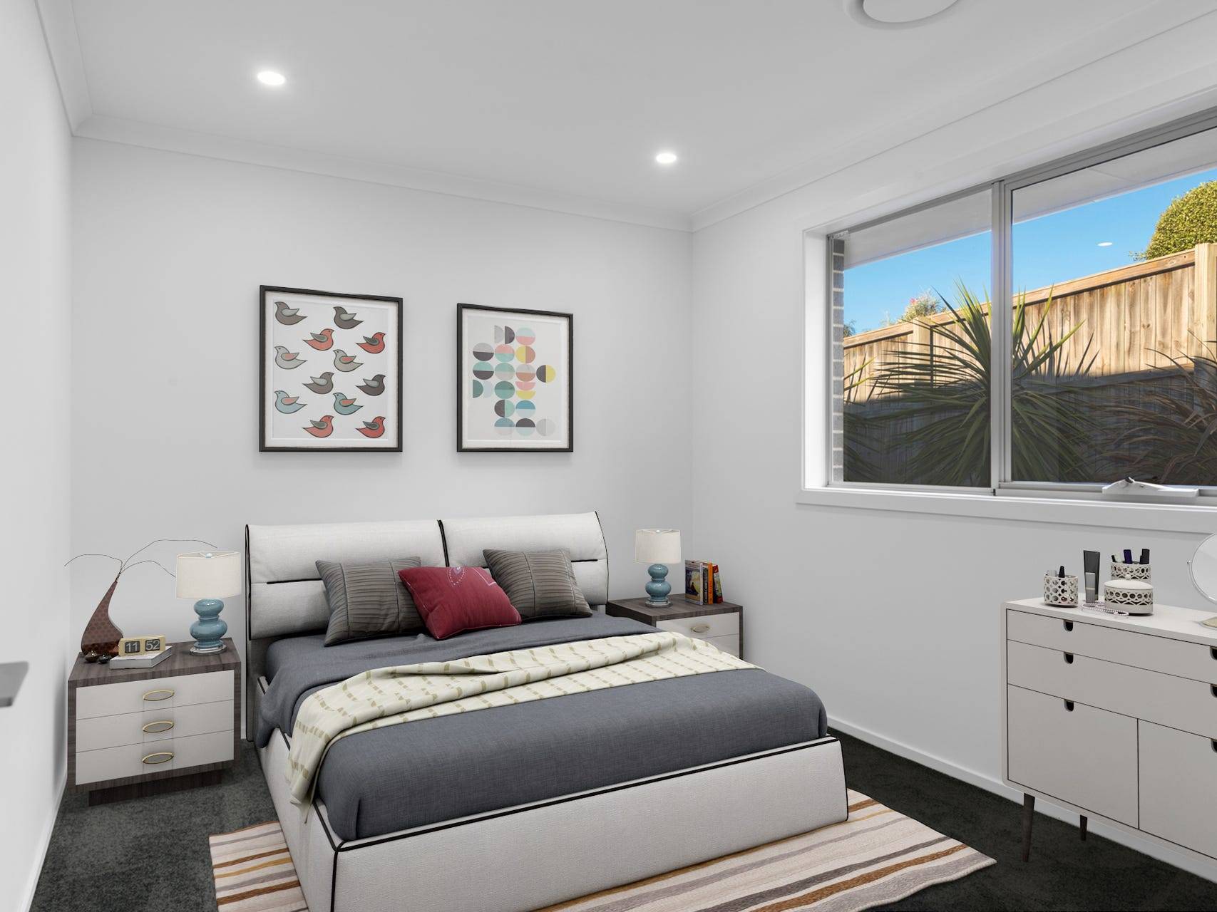 The well-designed floor plan creates a wonderful flow through this single-level home. Living areas flow through to spacious bedrooms, which are carpeted in a rich plush charcoal pile, adding to the theme of decadence.