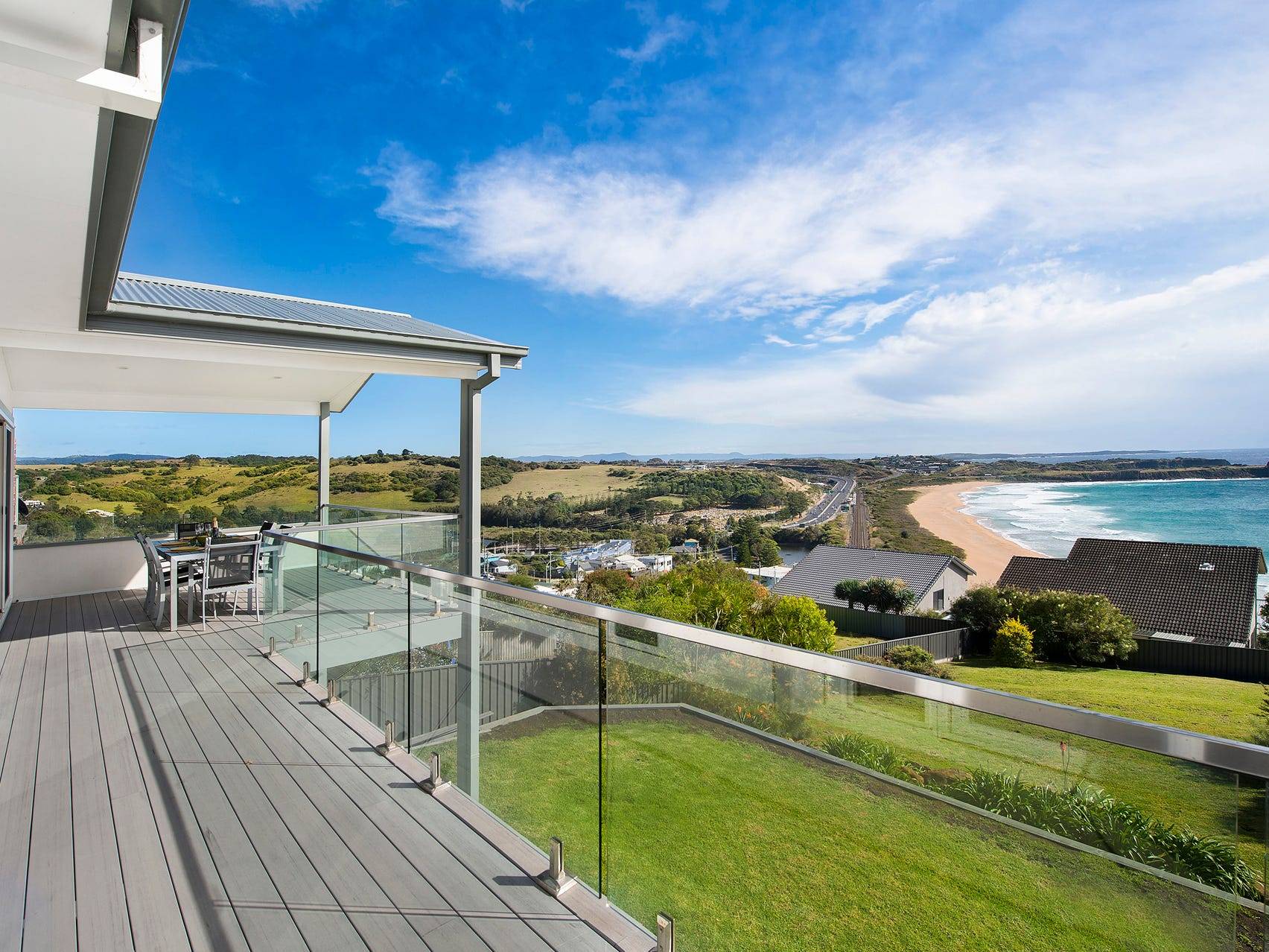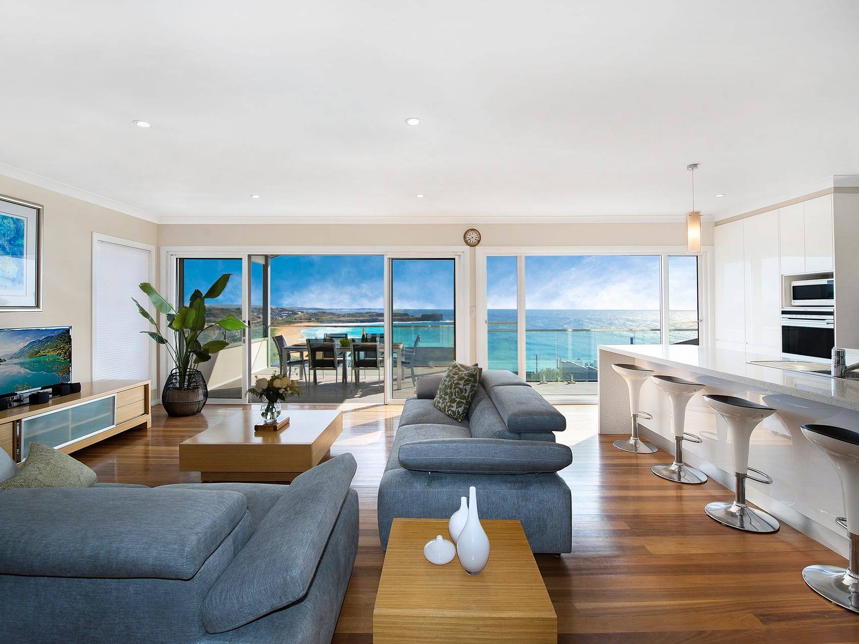 Commanding a magnificent elevated North aspect, you will admire waves rolling along the great expanse of Bombo Beach, and panoramic views of the sun rising from the Tasman Ocean and then setting over the tree lined Illawarra escarpment.