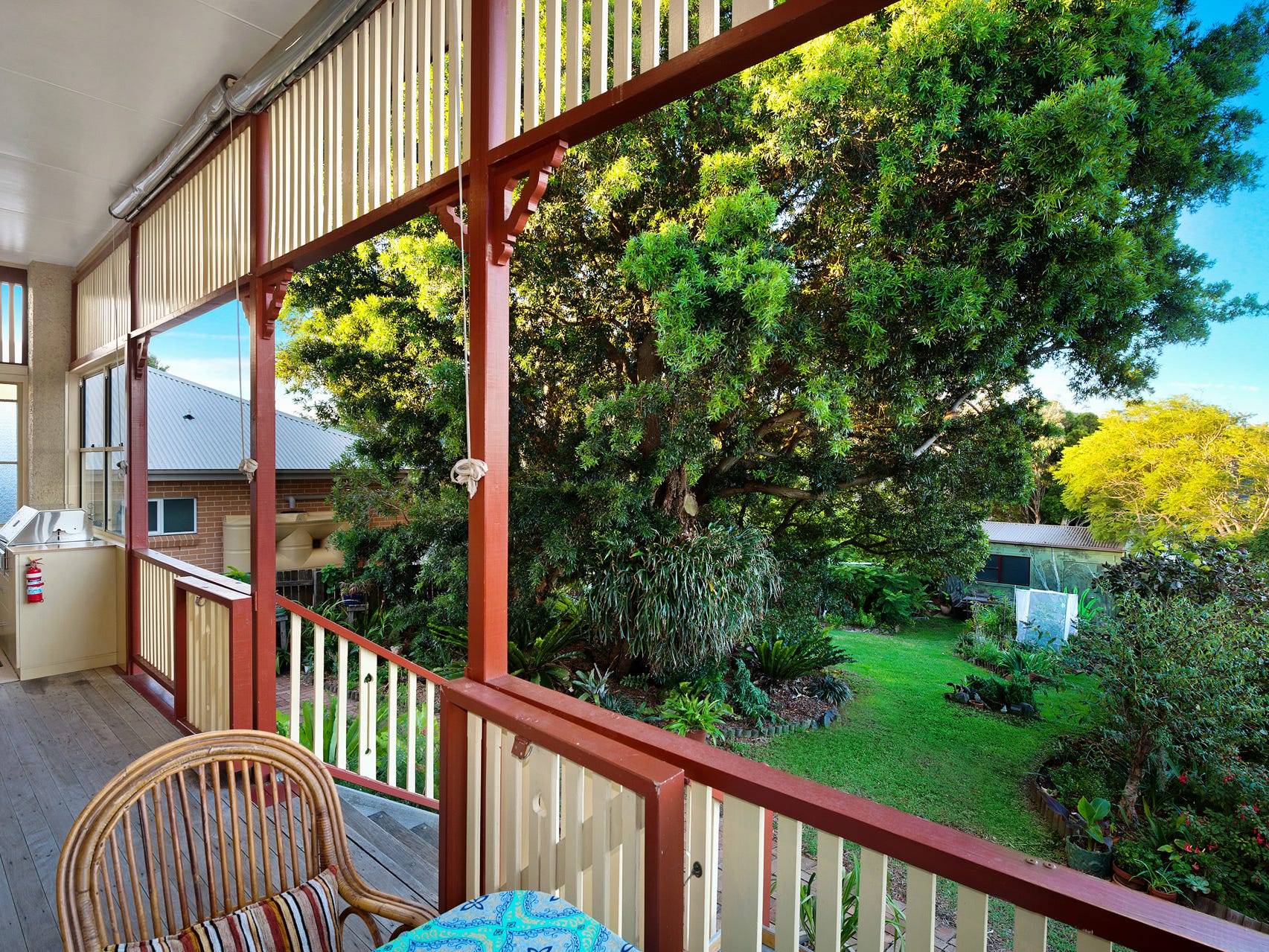 In the charming backyard, a majestic Native Plum Pine tree offers dappled shade while your eyes absorb the sheer beauty of this splendid rambling garden. Take the time to admire the 50-year-old Birds Nest Fern, Staghorn and Elkhorn ferns, combined with productive citrus trees, veggies, herbs and a wonderful passionfruit vine.