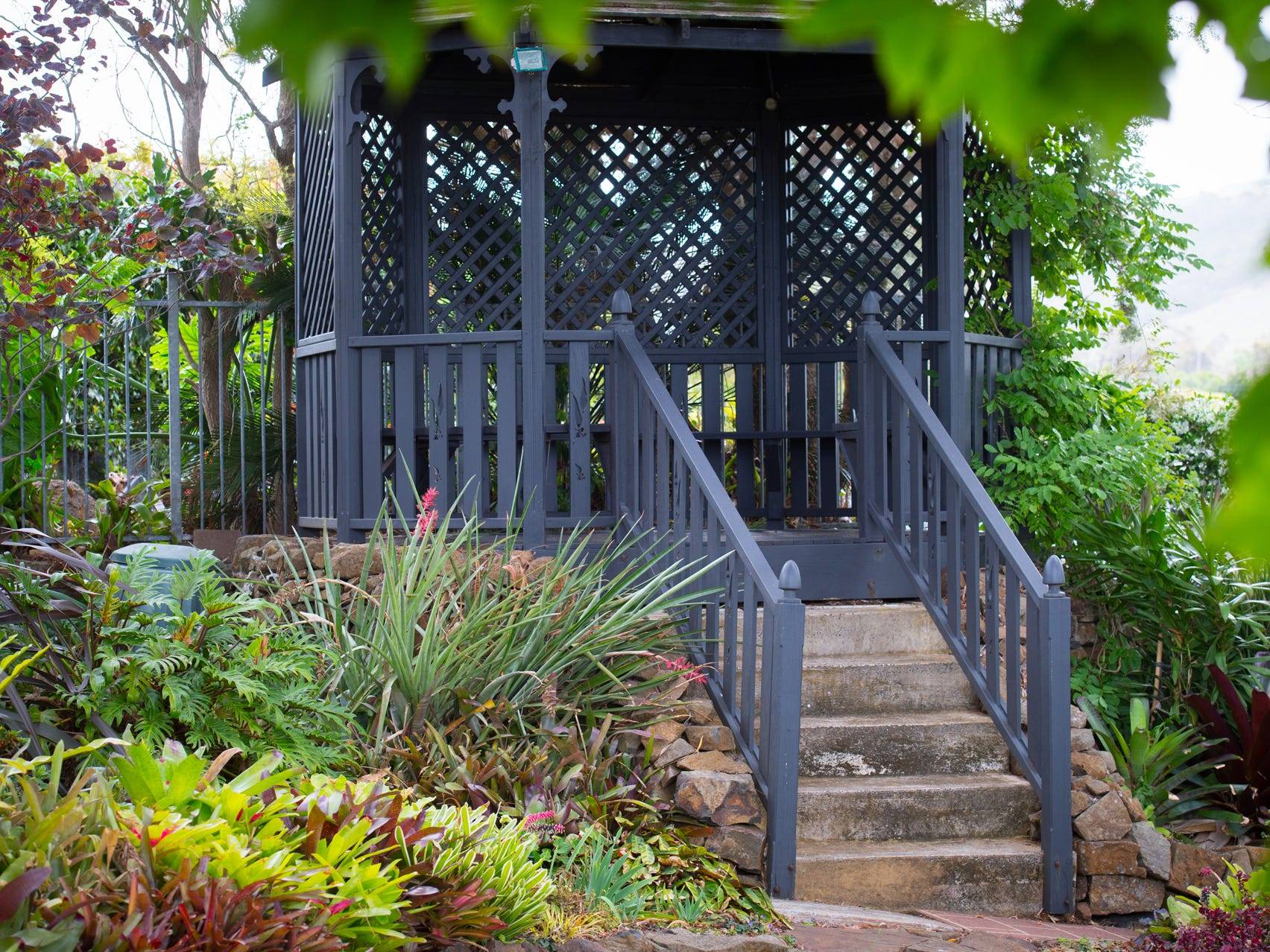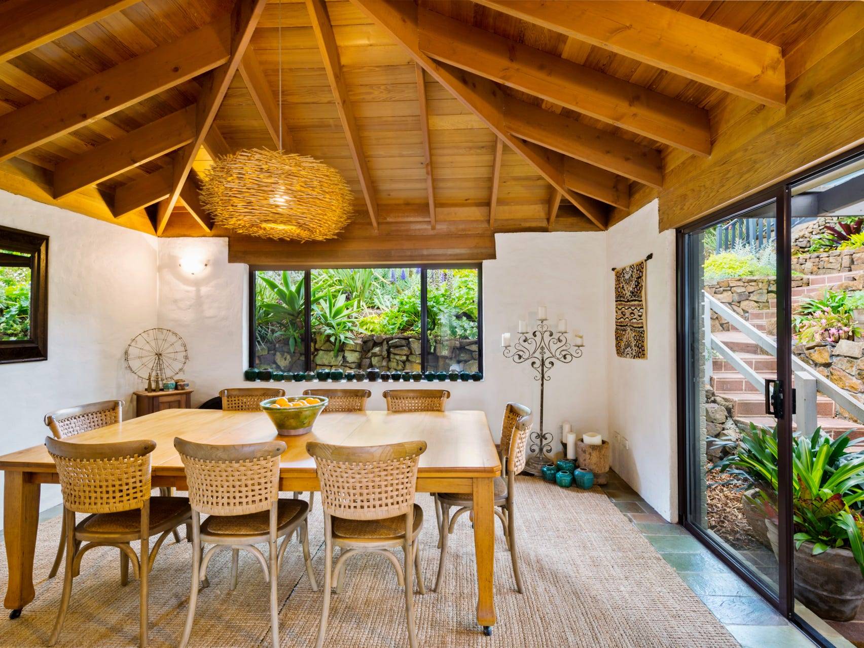Timber floors and vaulted ceilings. combine with bespoke interiors to create an earthy vibe. Step outdoors to a magnificent display of well established tropical plants, blended with traditional cottage varieties, with secret nooks throughout the garden, which beckon you to sit, unwind, and re-energise.