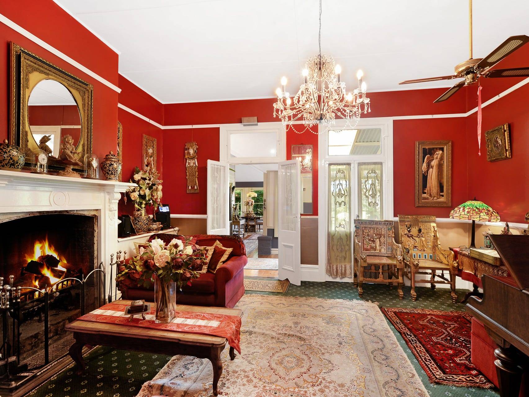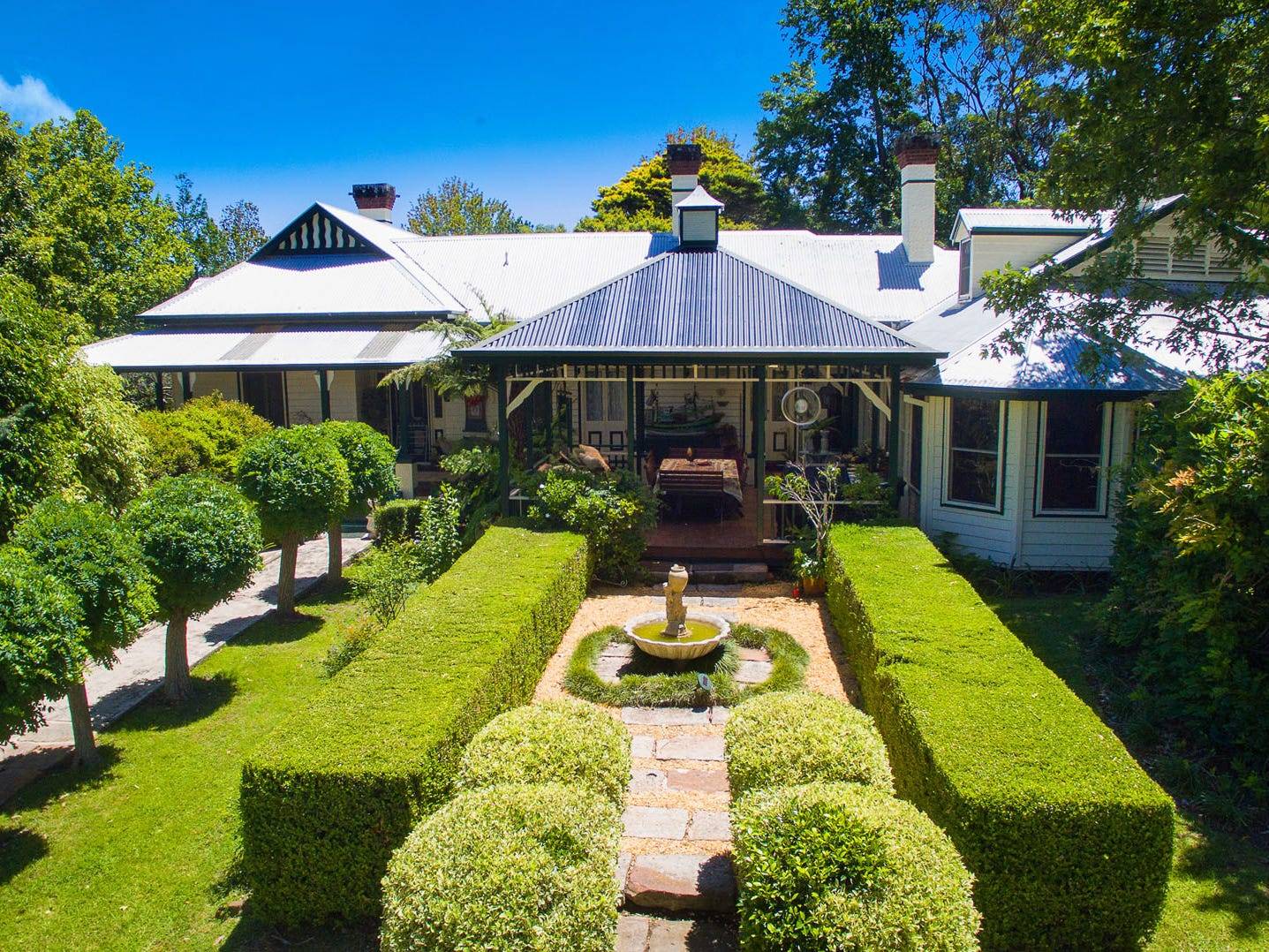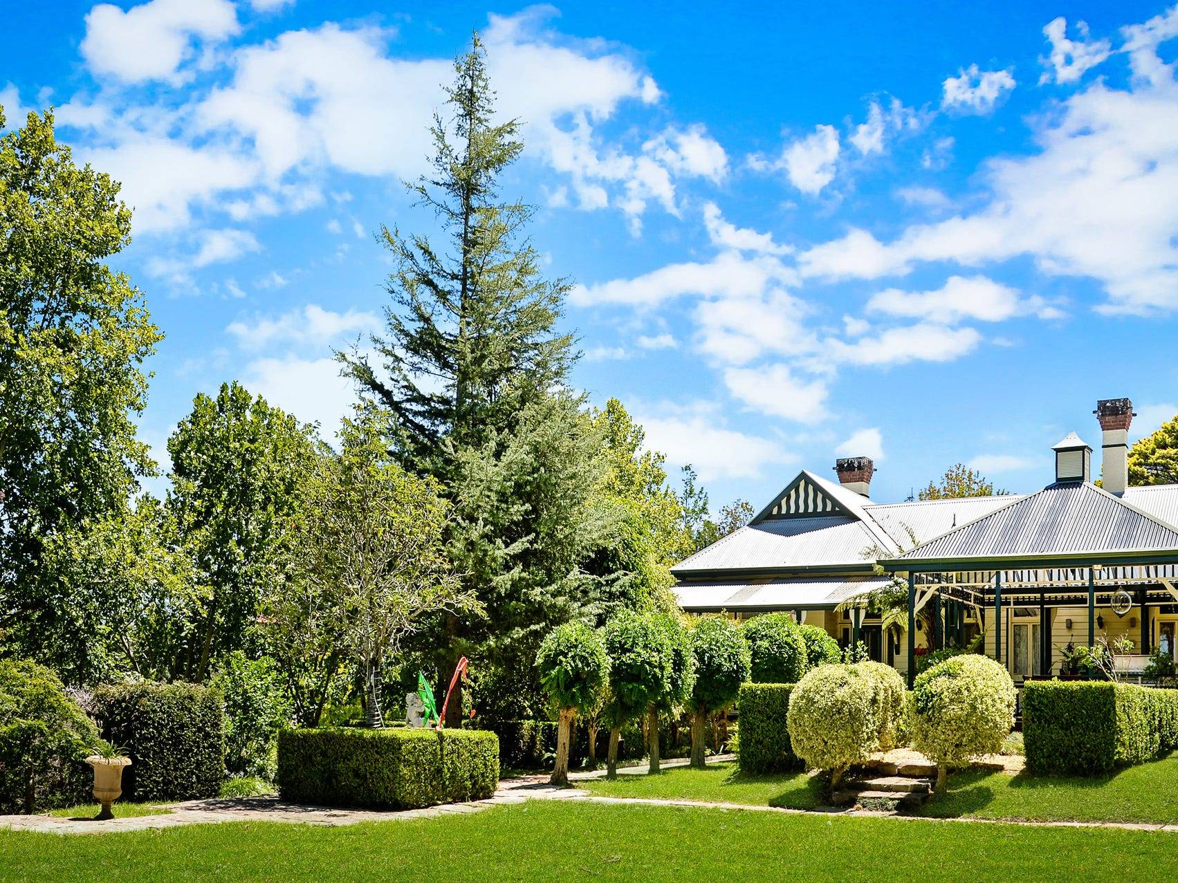 The house is comprised of seven bedrooms, six with ensuite, a country kitchen with a walk-in pantry, formal and informal living areas, separate dining room and an atrium. Features include many aspects of the 1800s era - high ceilings, ornate cornices, hardwood flooring and fireplaces. A wide, wrap around verandah with an undercover entertaining area overlooks water features, the manicured lawns and established gardens. The property also includes the original dairy featuring rustic hand hewn timbers, a silo and horse paddocks.