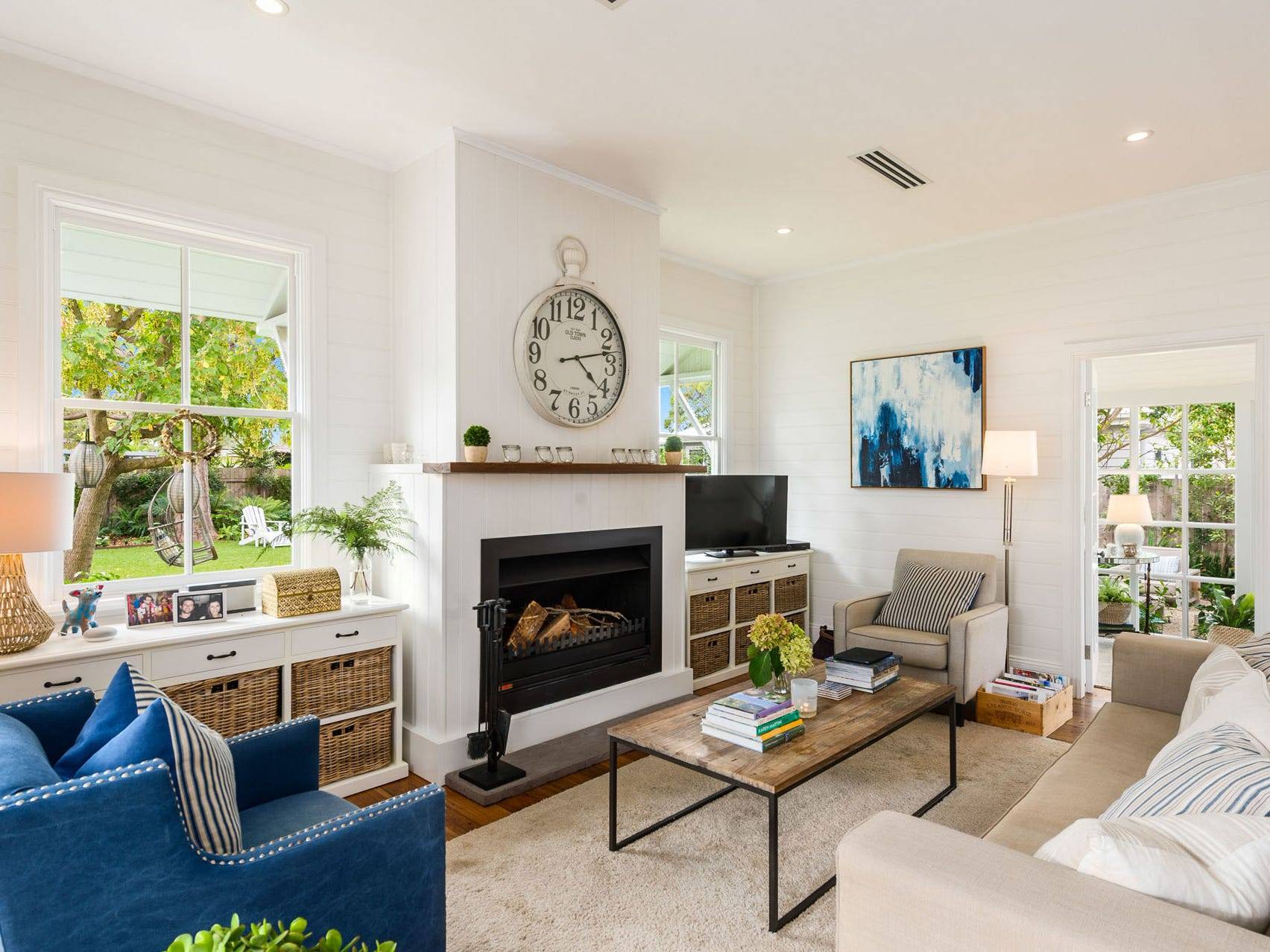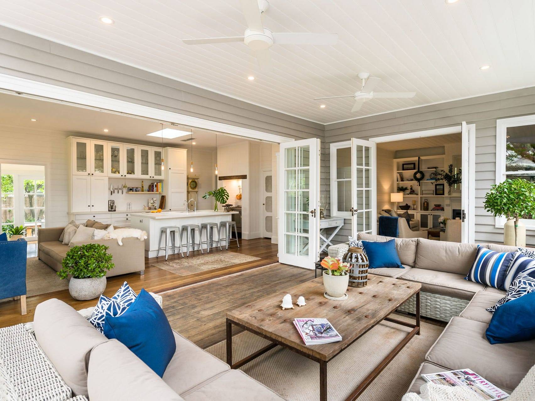 Simple but elegant light filled white washed interiors, married with high decorative ceilings and original timber flooring, reflect the home's historic beginnings. This classic 1880's country weatherboard exterior has been restored and finished in shades of grey, with the perfect complement of white trim and wrap around verandas.