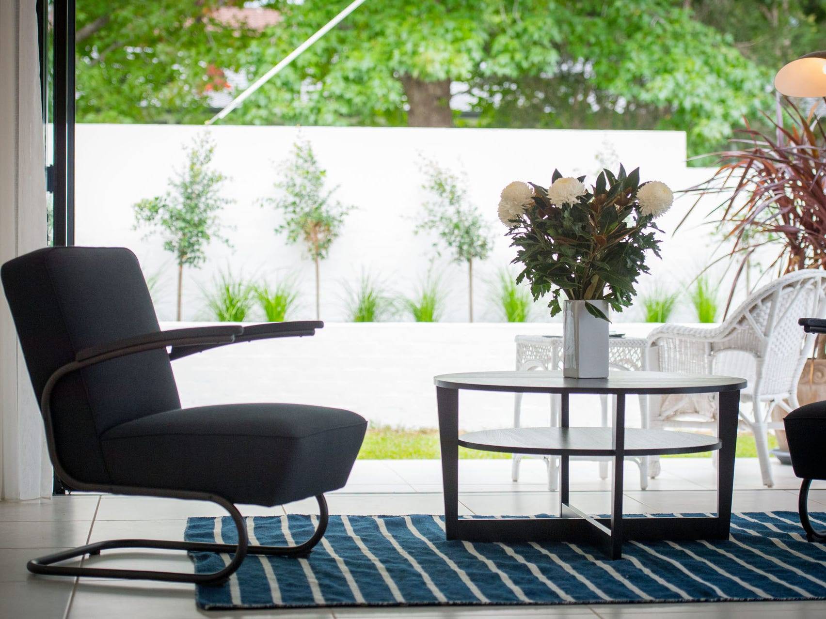 An abundance of glass wrapped interiors ensures adequate flooding of gentle northern light. The home is extremely private with soft curtains and high double brick fencing. The double garage is adjoined to the rear of the home for complete ease of access.