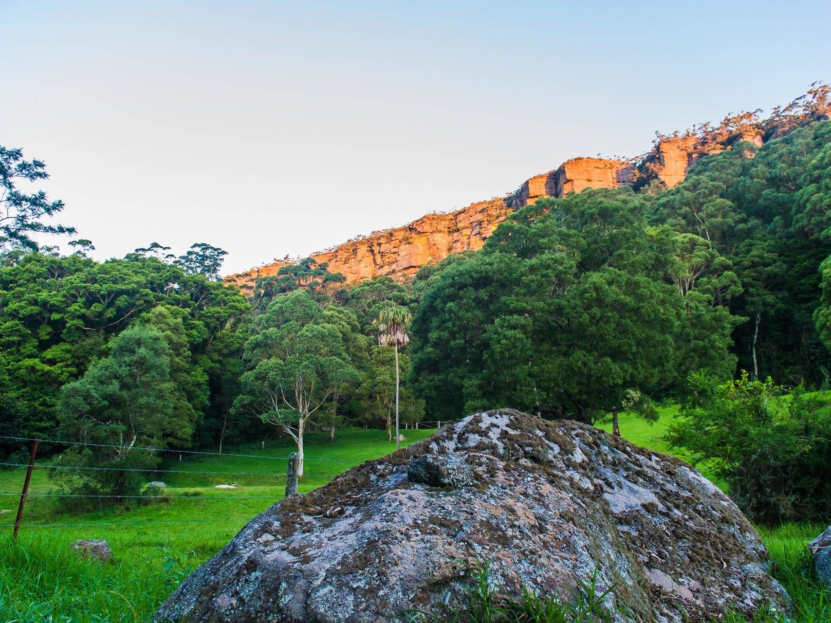Walking across the paddock and up the road you will come to another dam and more paddocks with fabulous views of the escarpment and valley. Sitting on the top bench you will see the entire valley filled with mist in the mornings or watch the sun go down over the hills in the evening reddening the escarpment, the perfect spot for a studio