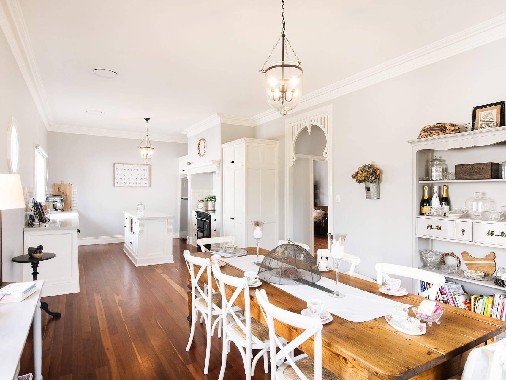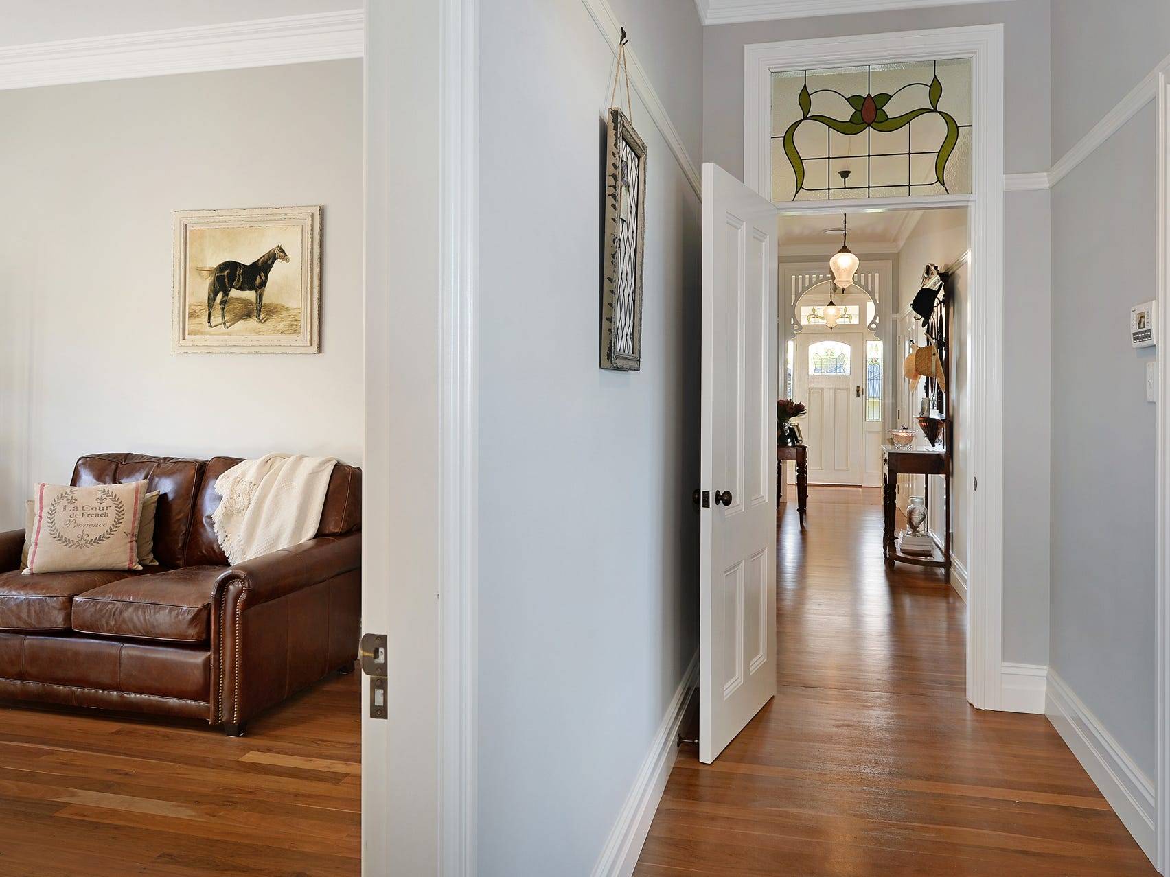 10-foot ceilings, bay windows, wide central hallway, french doors, leadlight windows, and Victorian style plaster cornices & high skirting boards throughout the entire house are just some of the hallmarks of this classic design. The luxurious solid ironbark timber flooring throughout is complemented by the quality light fittings and the abundance of natural light due to the perfectly positioned wide verandahs.