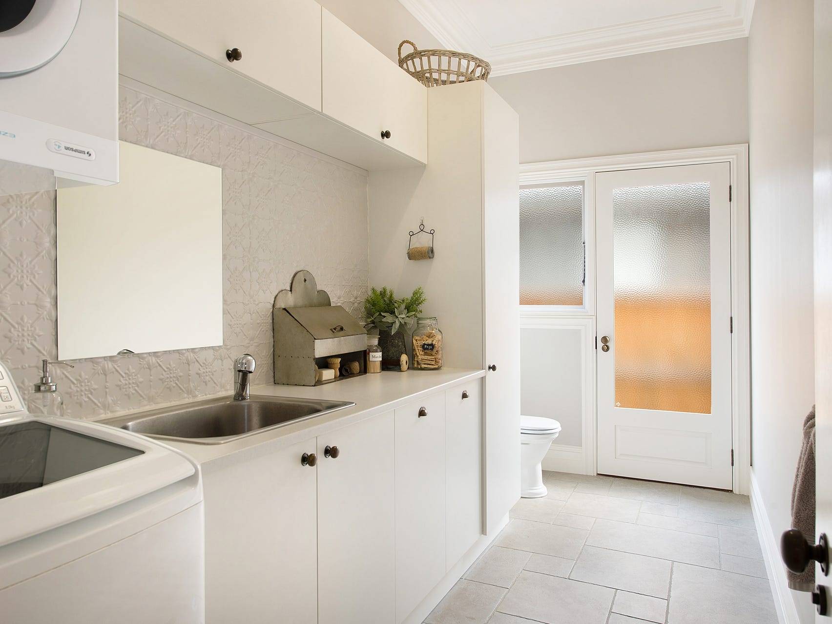 A custom-crafted solid timber hand-painted kitchen is found at the rear of the home with an abundance of high-end essential appliances for every cooking need. The gourmet kitchen features Smartstone Carrara benchtops, butlers fireclay sink, fully integrated Miele dishwasher, Belling 900mm freestanding oven with induction cooktop and 3 separate ovens. A spacious bathroom beckons you to relax and unwind in a fully restored antique claw foot bath.