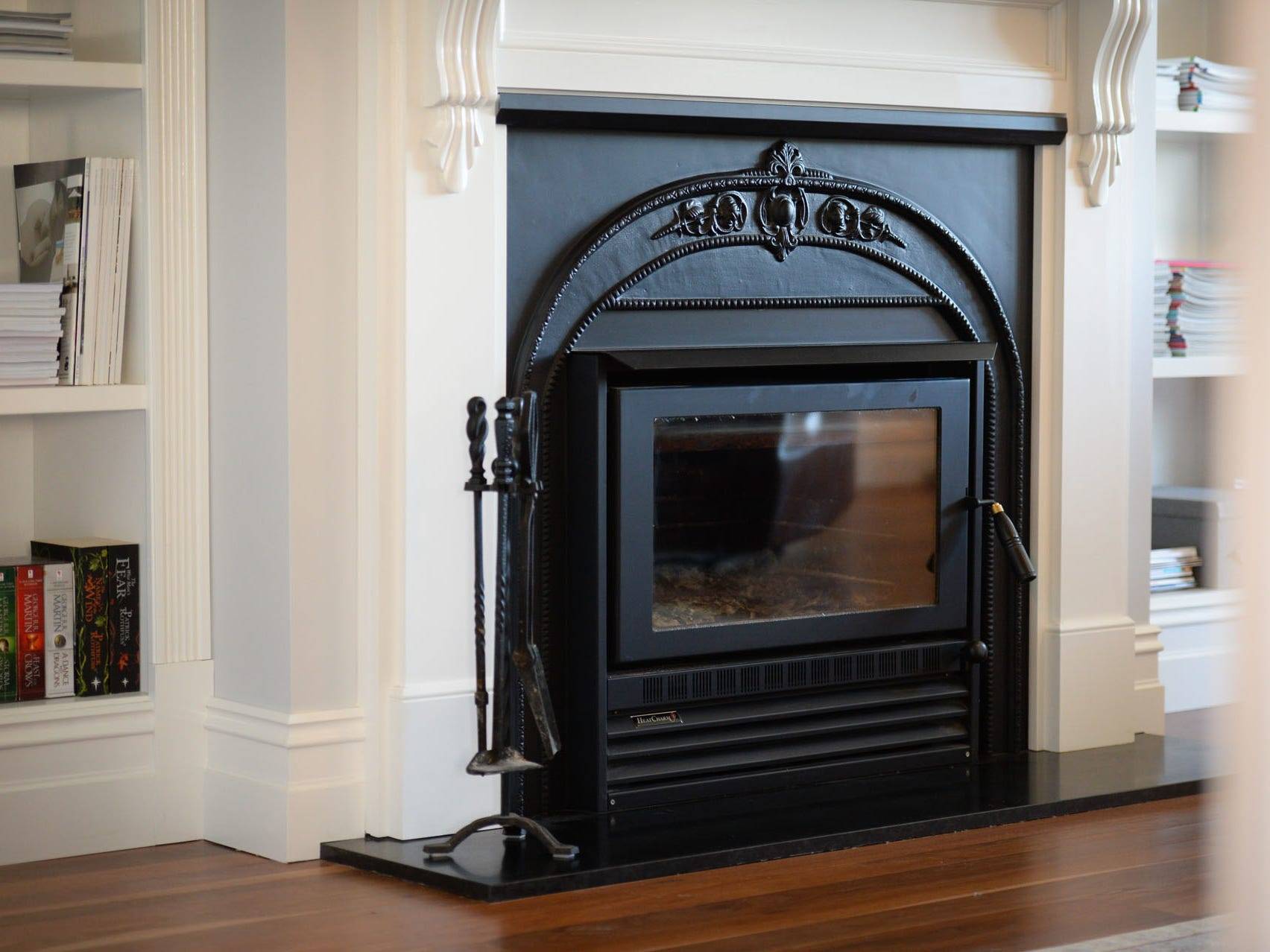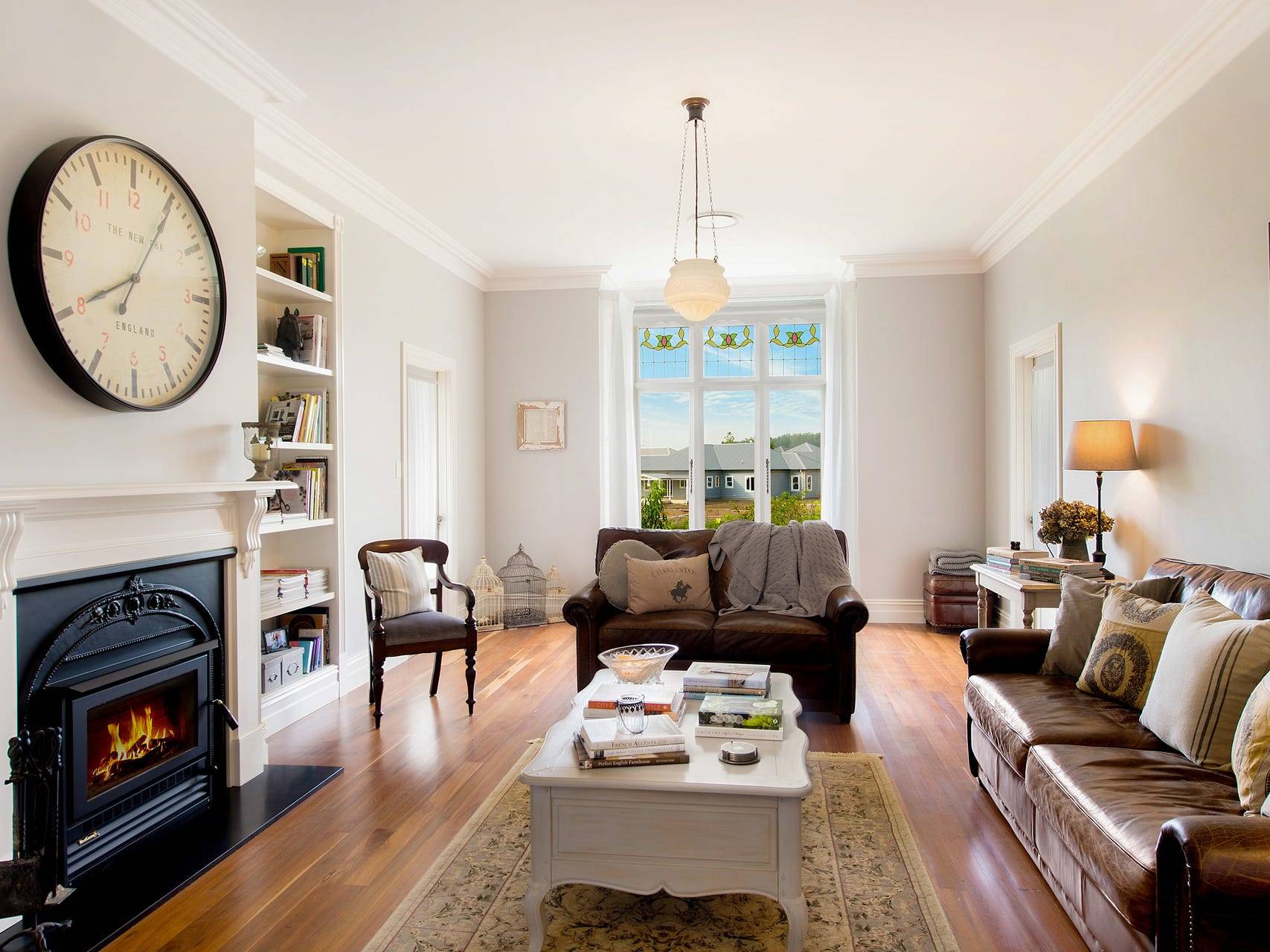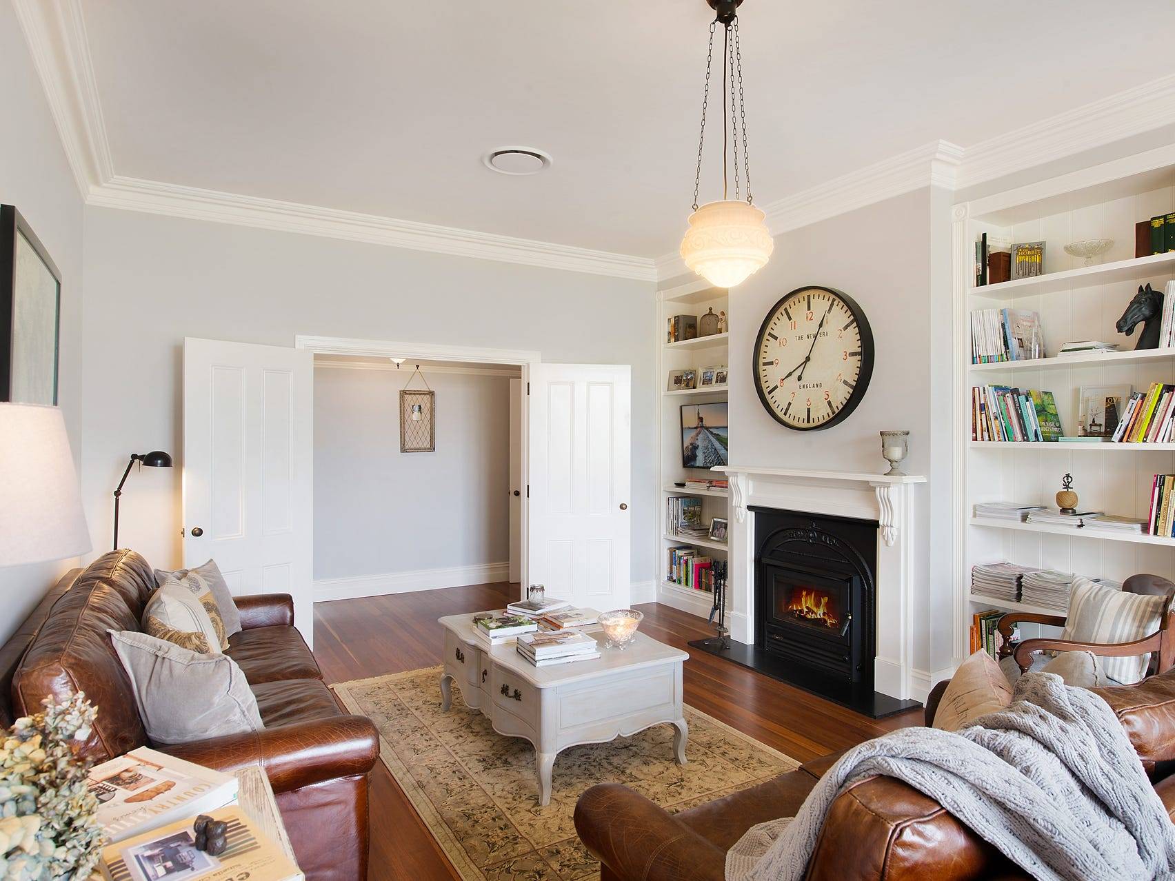 Impeccable design and the highest attention to detail can be found throughout this magnificent home, which features a sumptuous living room with floor to ceiling custom-built bookcases and a Victorian-style Heat Charm inbuilt slow combustion wood heater.