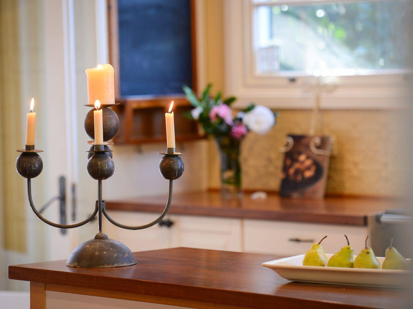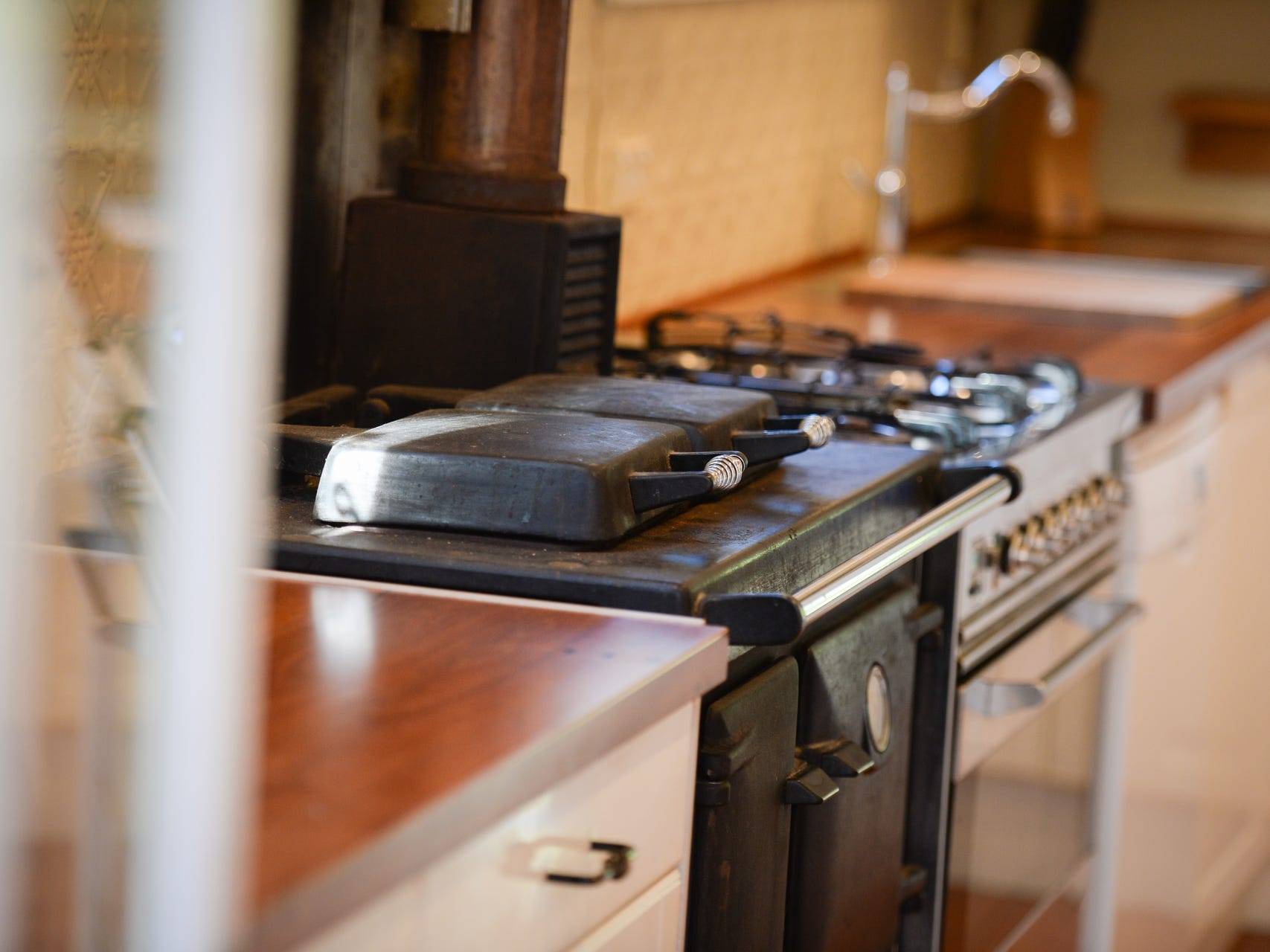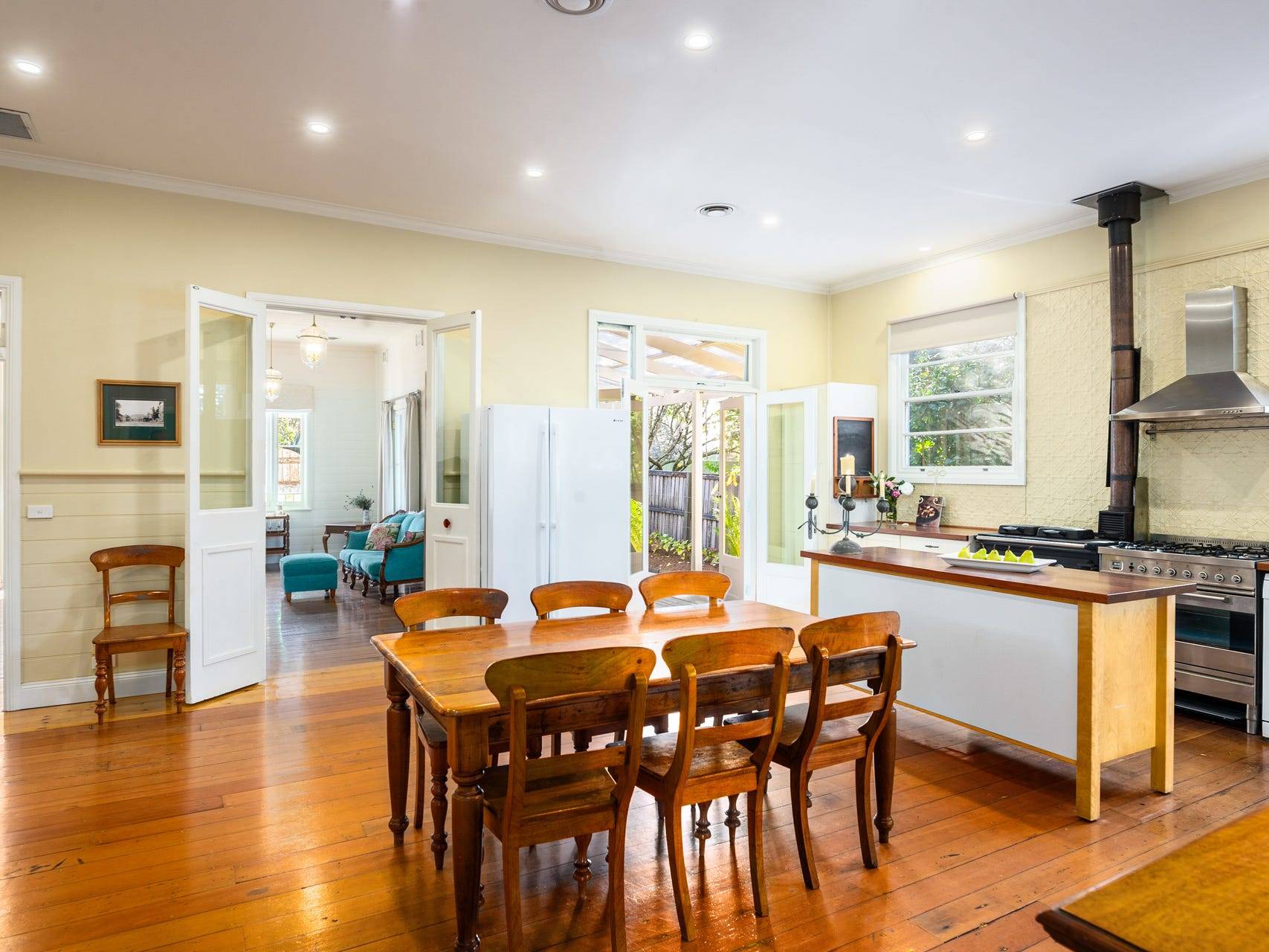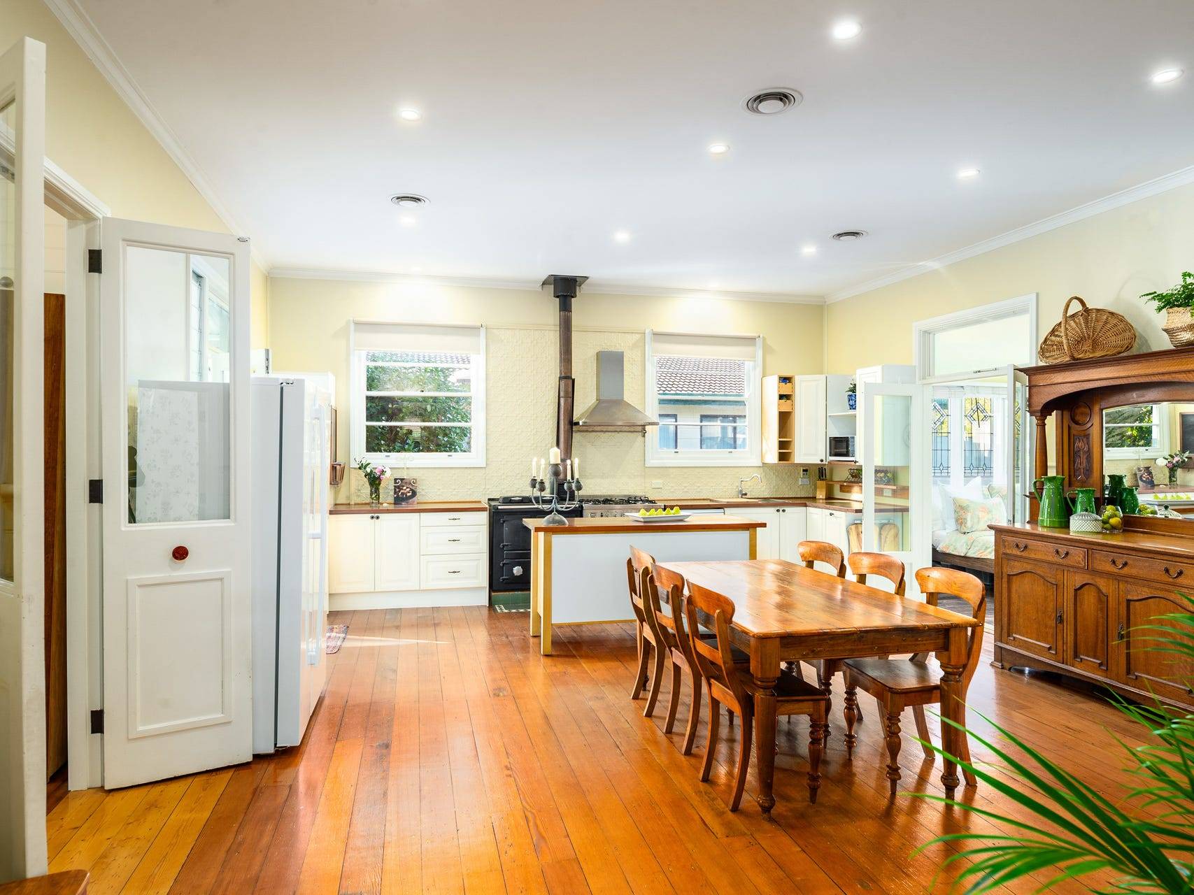 Sawmill Cottage enchants visitors with its large, light-filled rooms, high ceilings, and original detailing. At the heart of the home, a grand open plan kitchen presents with high quality appliances, authentic pressed tin wall panels, and tactile hardwood timber bench tops. It's the kind of room where family and friends come together to share food and friendship; a place to create a lifetime of memories. A featured Rayburn wood burning stove warms the kitchen whilst a wholesome soup is cooking or a batch cookies.