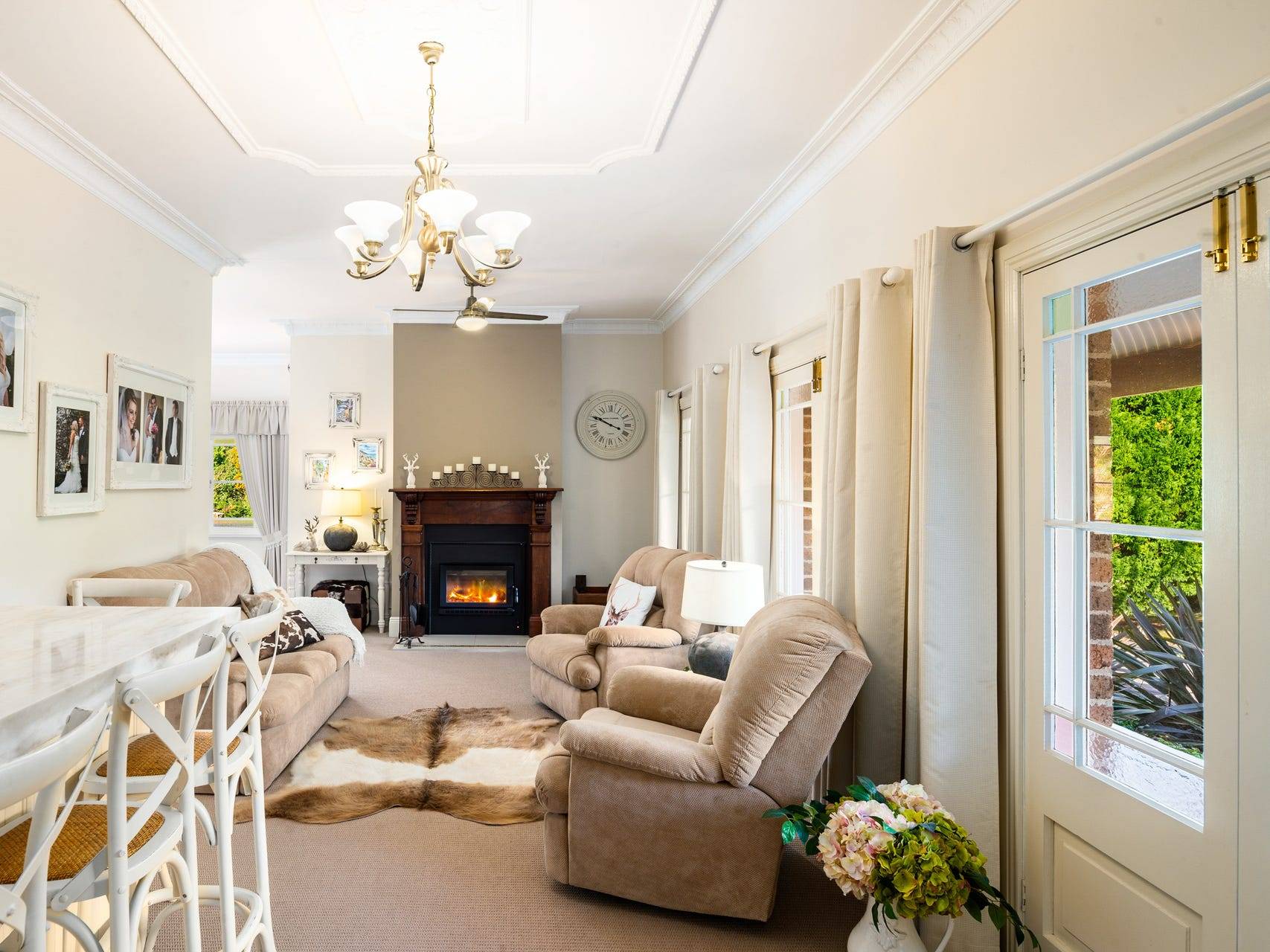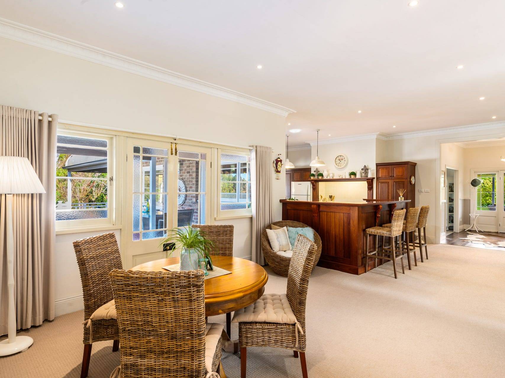 Enter the spacious residence through an entry foyer and into an alluring front living room complete with a cosy wood burning fire place. The home is meticulously maintained and purpose built to take in every aspect of the garden. Grand open-plan living areas open onto an expansive outdoor entertaining area, with views across the park like gardens and enticing solar heated pool. This ultimate outdoor alfresco entertaining is ideal for bringing family and friends together all year round lapping up these marvellous outdoor spaces.