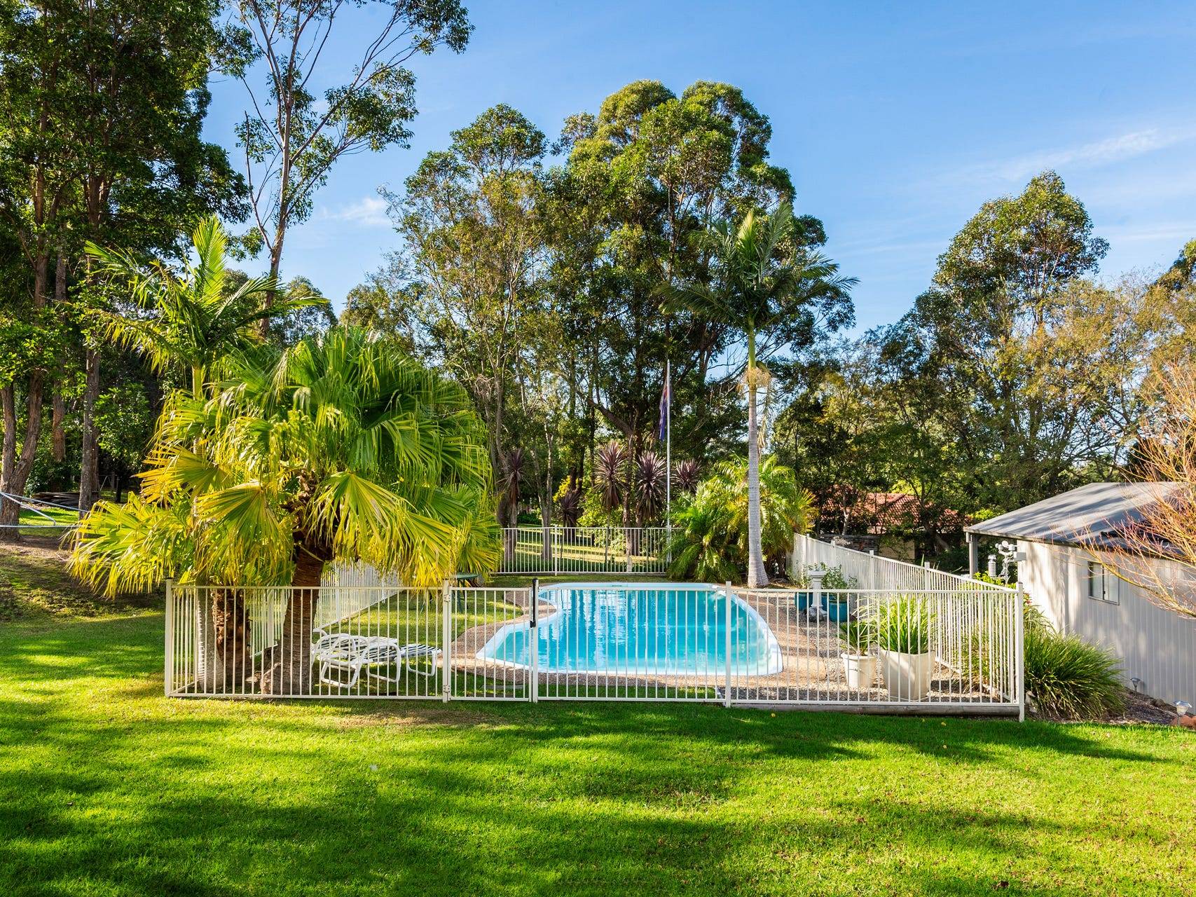 At the rear of the property you will find a four-car garage/machinery shed with ample space for automobiles, boat or campervan. An additional garden shed office sits to the rear of the block complete with heating/air-conditioning perfect for study or working from home.