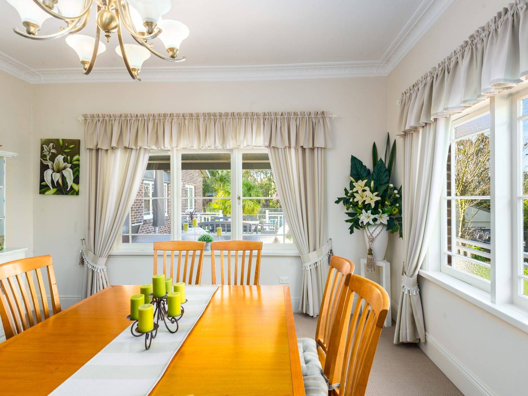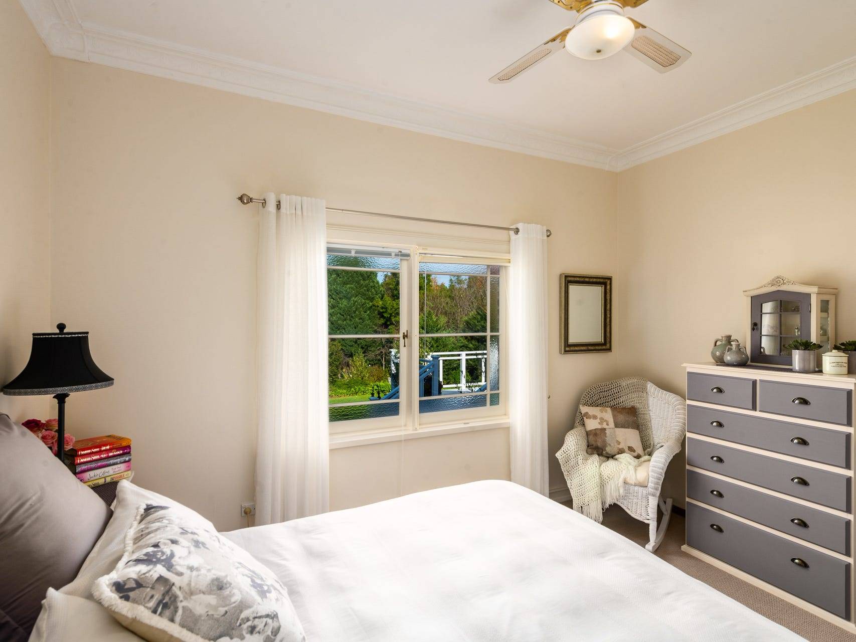 The gardens are uncomplicated in design, spacious and free flowing, featuring mature specimen trees, hedges, stunning botanicals, lush green lawn, offering sanctuary and privacy from the street.