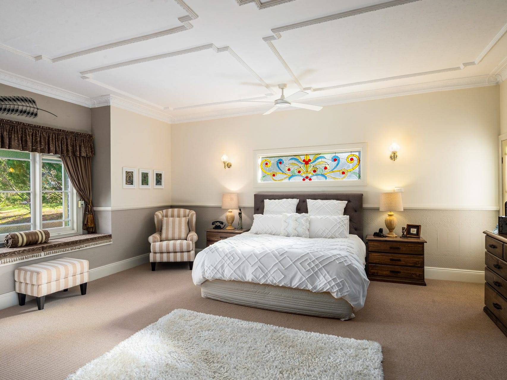 The theme of opulence continues into the bedrooms, which feature BIR, premium wool carpets, ceiling fans, and majestic garden views. The home also boasts a fourth bedroom which could also be used as a study or guest accommodation. The master suite has an abundance of space as you open the double doors to a room so luxurious it belongs on the cover of a magazine.