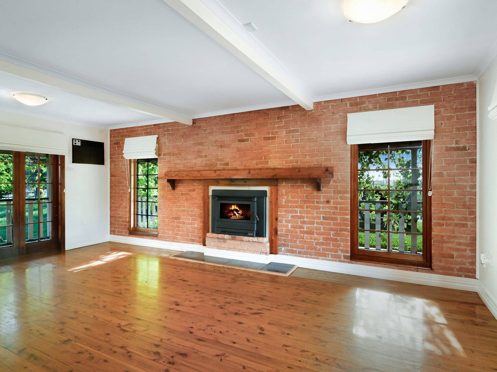 The living area is spacious and open with high ceilings. A slow combustion stove is a focal point of the room, framed by large windows, looking out to the mature deciduous shade trees that shelter Carinya Cottage from the road. Autumn welcomes the cooler nights triggering gorgeous colors and shedding of leaves, allowing warm winter sun.