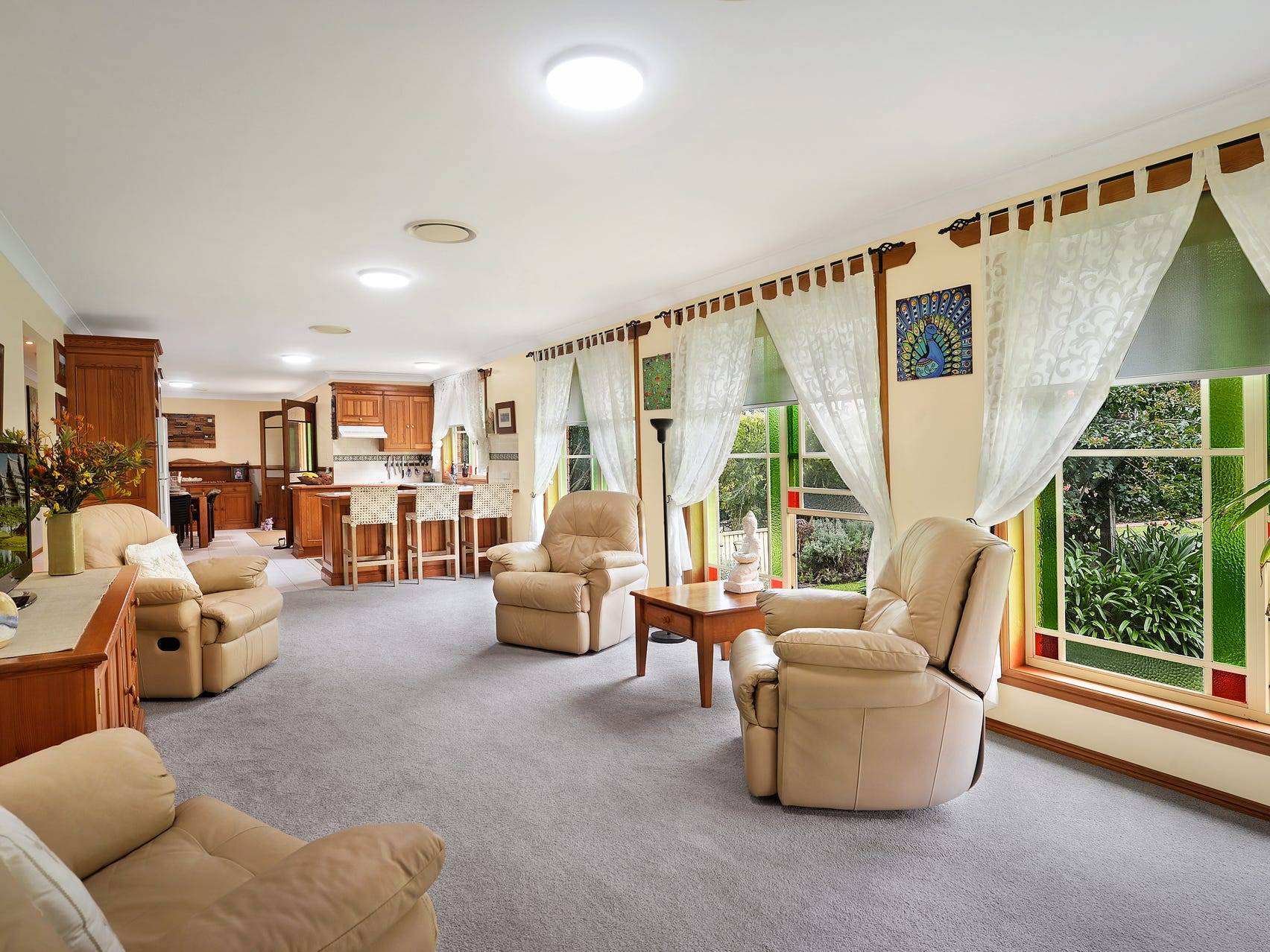 Situated on a large gently sloping 800m2 block, bounded by picturesque established gardens, this highly desirable single-level home is located along a private driveway on the ridge between the Kiama and Jamberoo boundary. Downstairs you will find an oversized double garage with separate access for a trailer, caravan or boat.