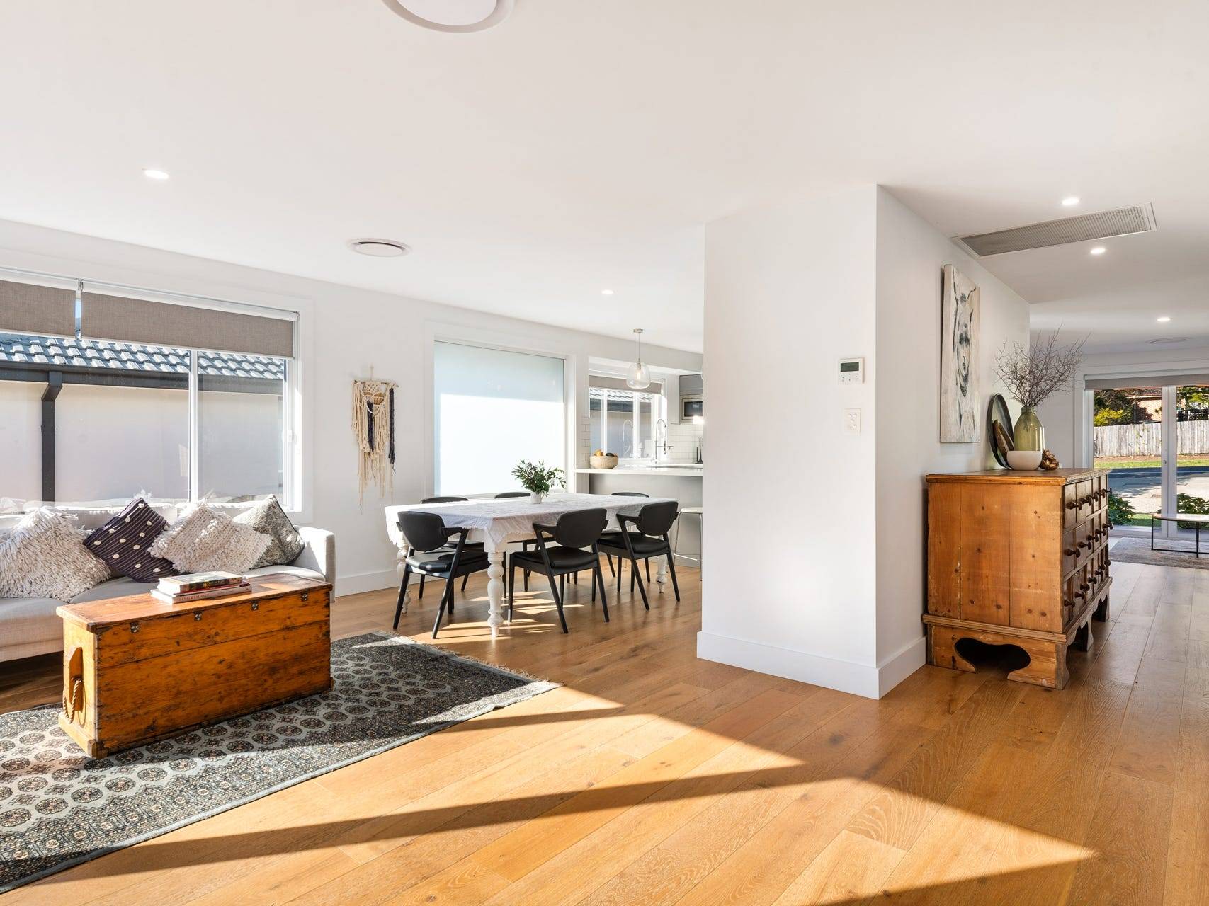 Every bedroom is of generous size, hidden from the entertaining areas. The main bathroom and master suite room have access to an expansive timber deck - also added during the renovations - which wraps around the entire back of the building. It can also be accessed from the open plan living room and dining room, which leads onto the kitchen with its modern breakfast bar - perfect for all the family.