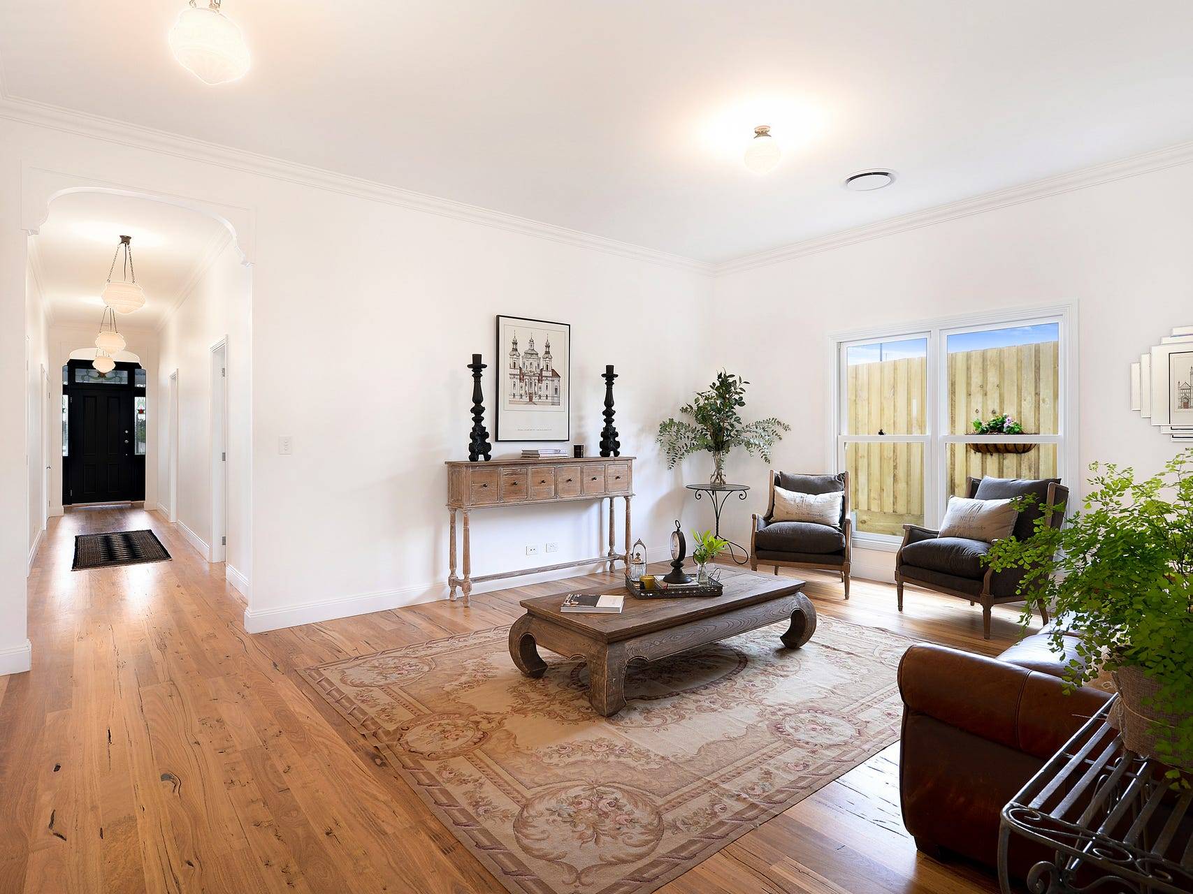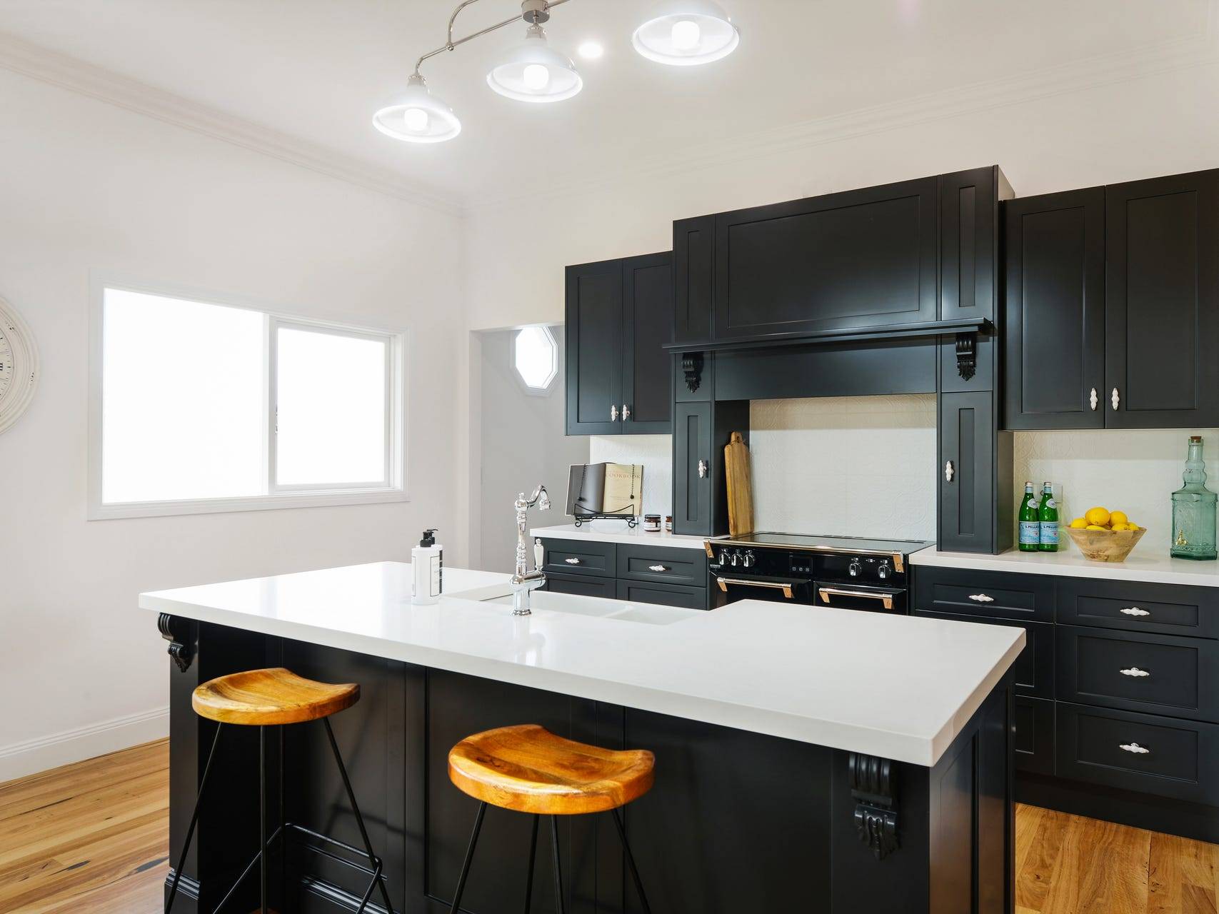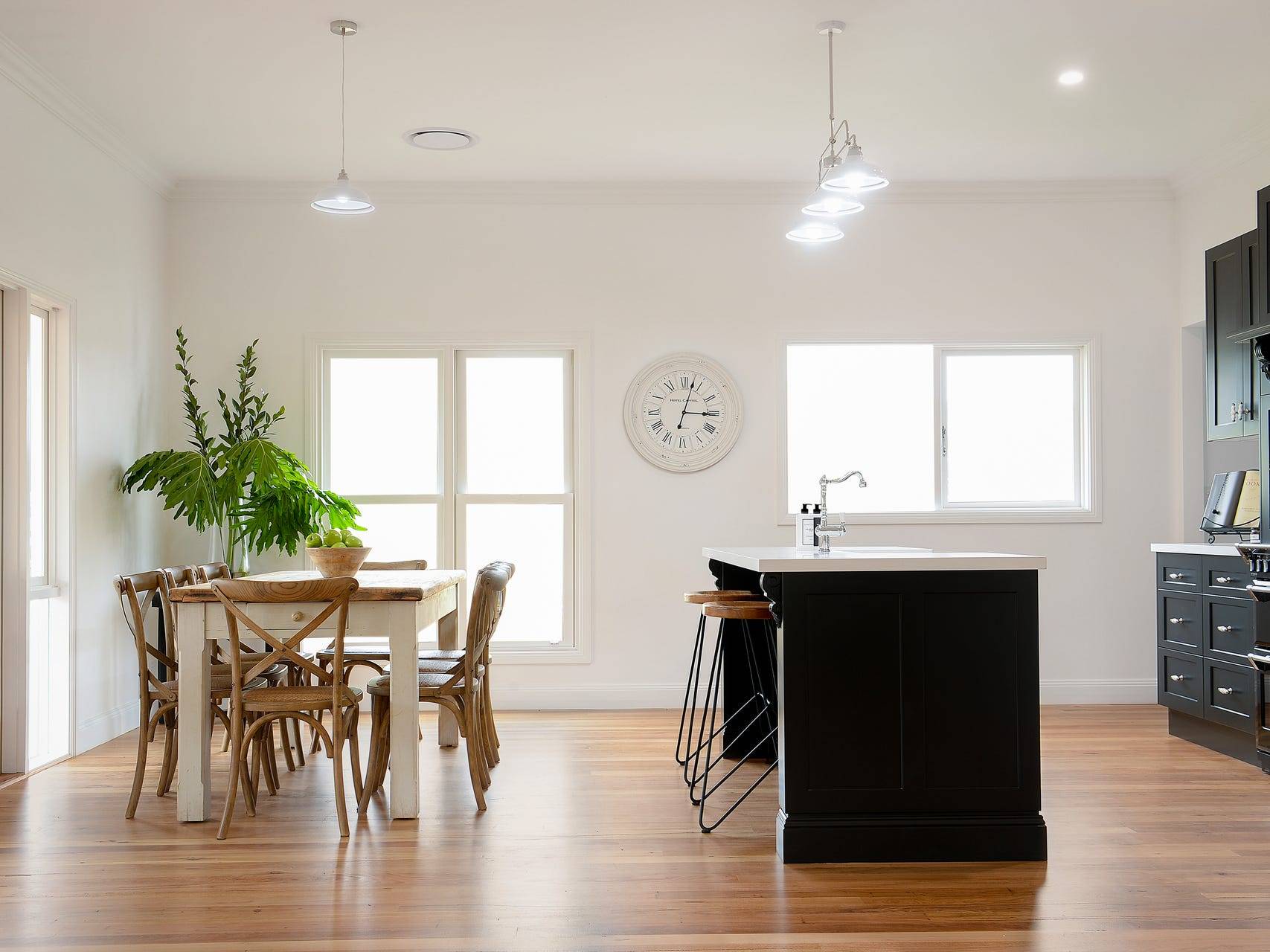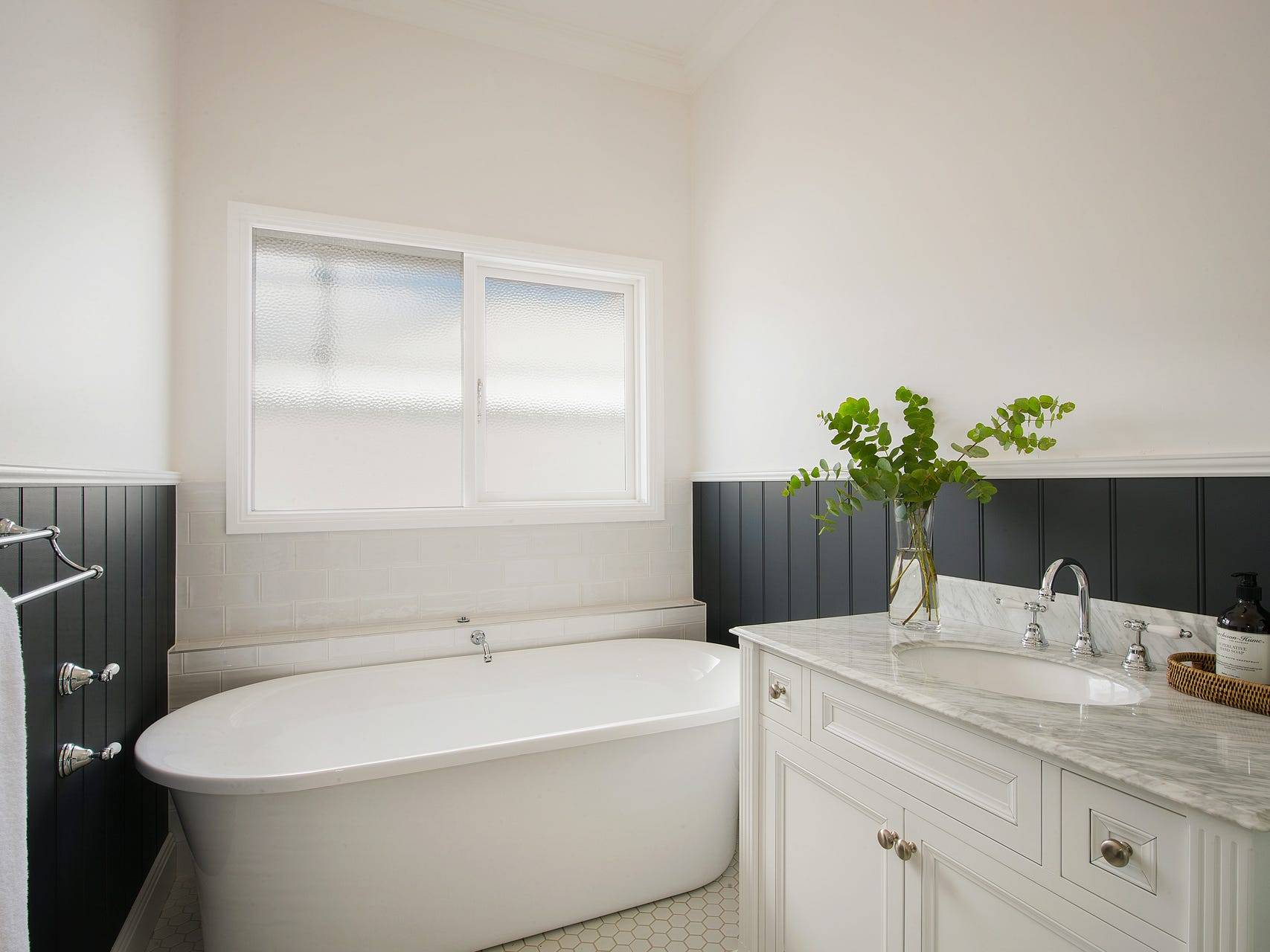 On the outside no detail has been spared with reclaimed solid sandstone bricks along the driveway and paths, Sir Walter Buffalo Turf, extensive planting and landscaping, a 10 000-litre water tank, a covered rear timber deck, Victorian period decorative fretwork, window hoods for more protection from the heat and rain and a one and a half car long garage with custom made timber carriage doors.