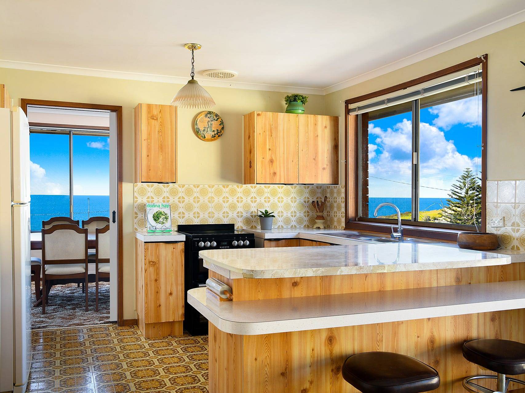 Perched on the rocky basalt coastline between Kaluela and Marsden Heads, this property takes in a glorious view overlooking the Little Blowhole rock platform and the emerald ocean.