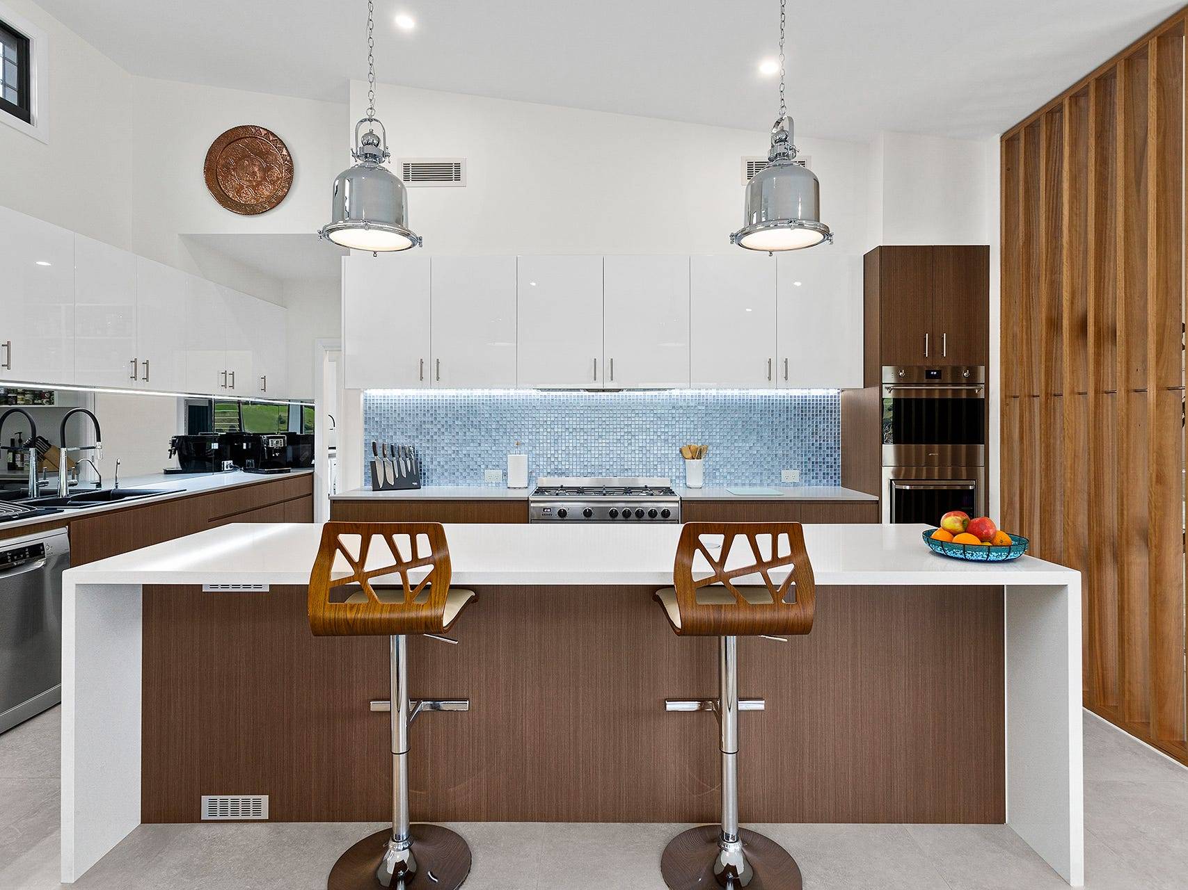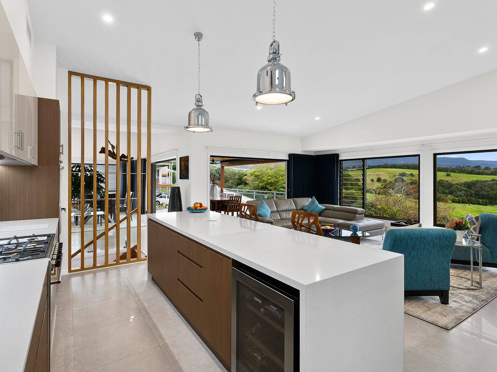 Back inside, large windows provide equally impressive views in the lounge as you settle in front of the gas fireplace. Or take it all in from the cascading stone island bench in a fully equipped kitchen loaded with quality appliances, gas cooking, soft-close cabinetry and butler's pantry.