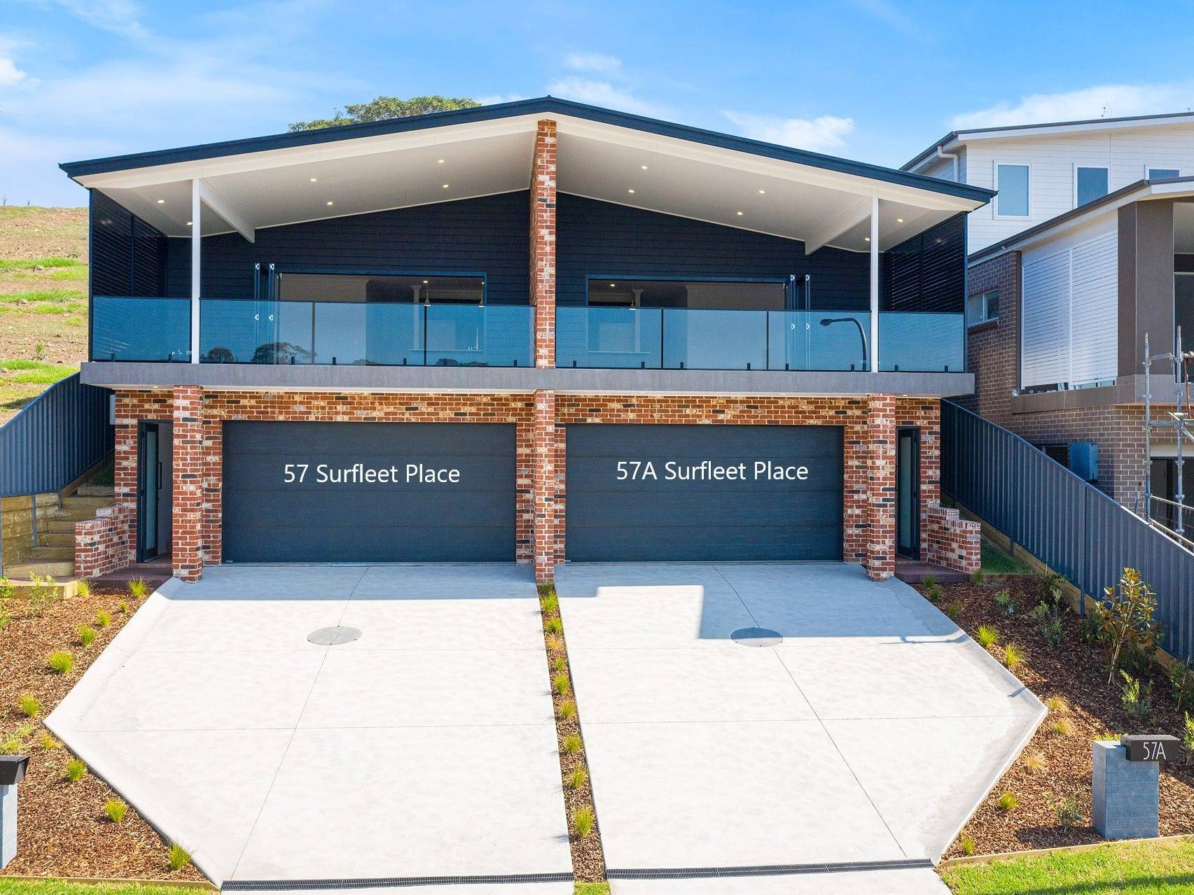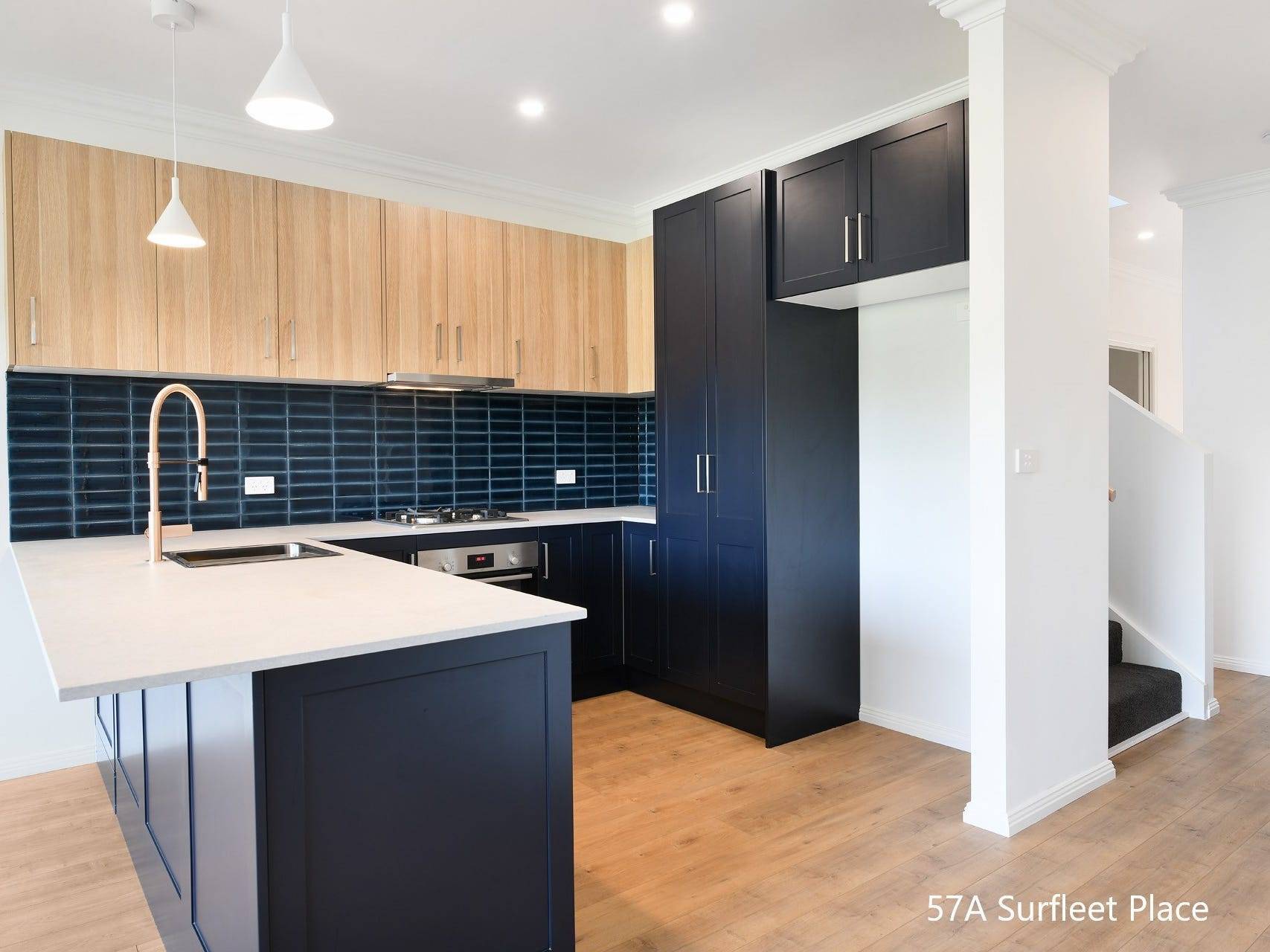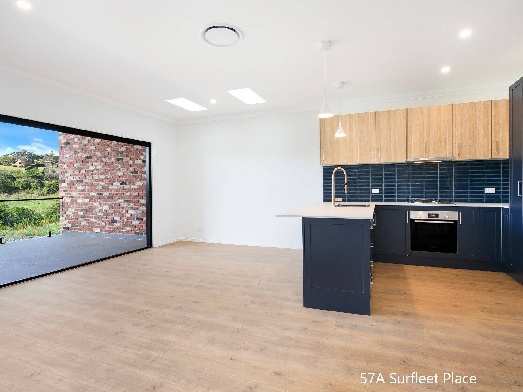 Newly completed and stylishly appointed, 57 & 57A Surfleet Place Kiama offer the discerning buyer a lot more than your average townhouse. As you enter the property you will immediately notice the generous width of the entryway and main staircase which amplifies the abundant sense of light and space. Fully retractable bifold doors separate the main open plan kitchen, living and dining area from the oversized tiled balcony with raked ceilings and classic rural views over paddocks and scenic Saddleback Mountain. Each property offers a rear North-facing paved courtyard adjoining the second rear living area with stairs leading up to the fully fenced terraced back yard with side access.