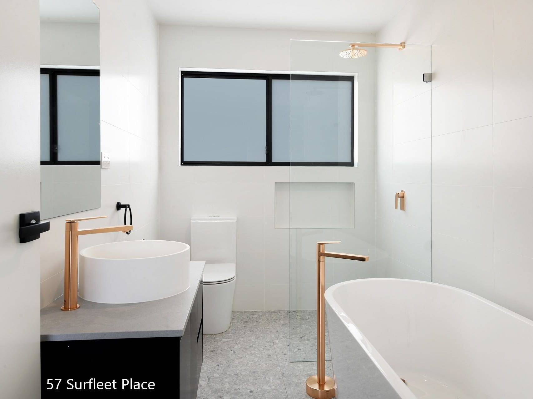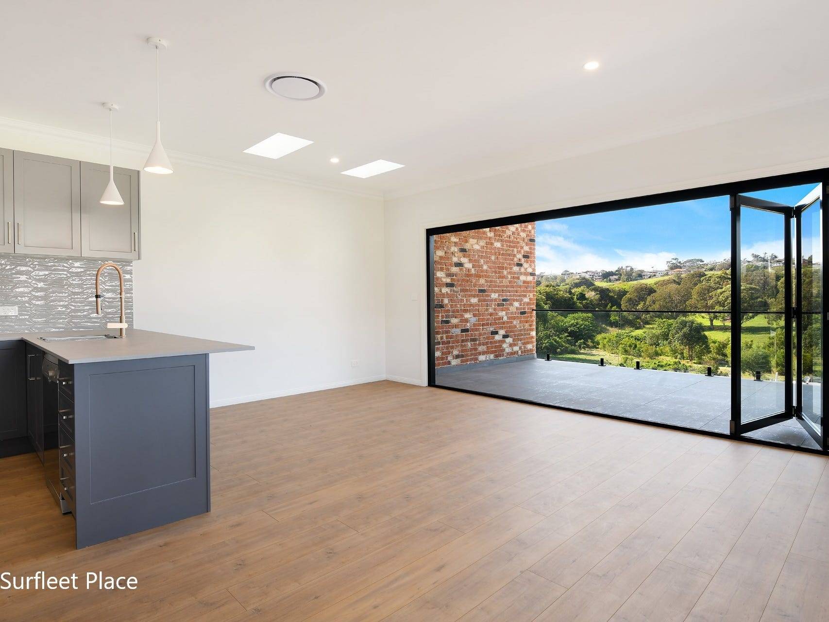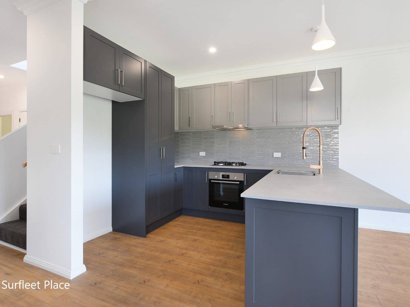 Newly completed and stylishly appointed, 57 & 57A Surfleet Place Kiama offer the discerning buyer a lot more than your average townhouse. As you enter the property you will immediately notice the generous width of the entryway and main staircase which amplifies the abundant sense of light and space. Fully retractable bifold doors separate the main open plan kitchen, living and dining area from the oversized tiled balcony with raked ceilings and classic rural views over paddocks and scenic Saddleback Mountain. Each property offers a rear North-facing paved courtyard adjoining the second rear living area with stairs leading up to the fully fenced terraced back yard with side access.