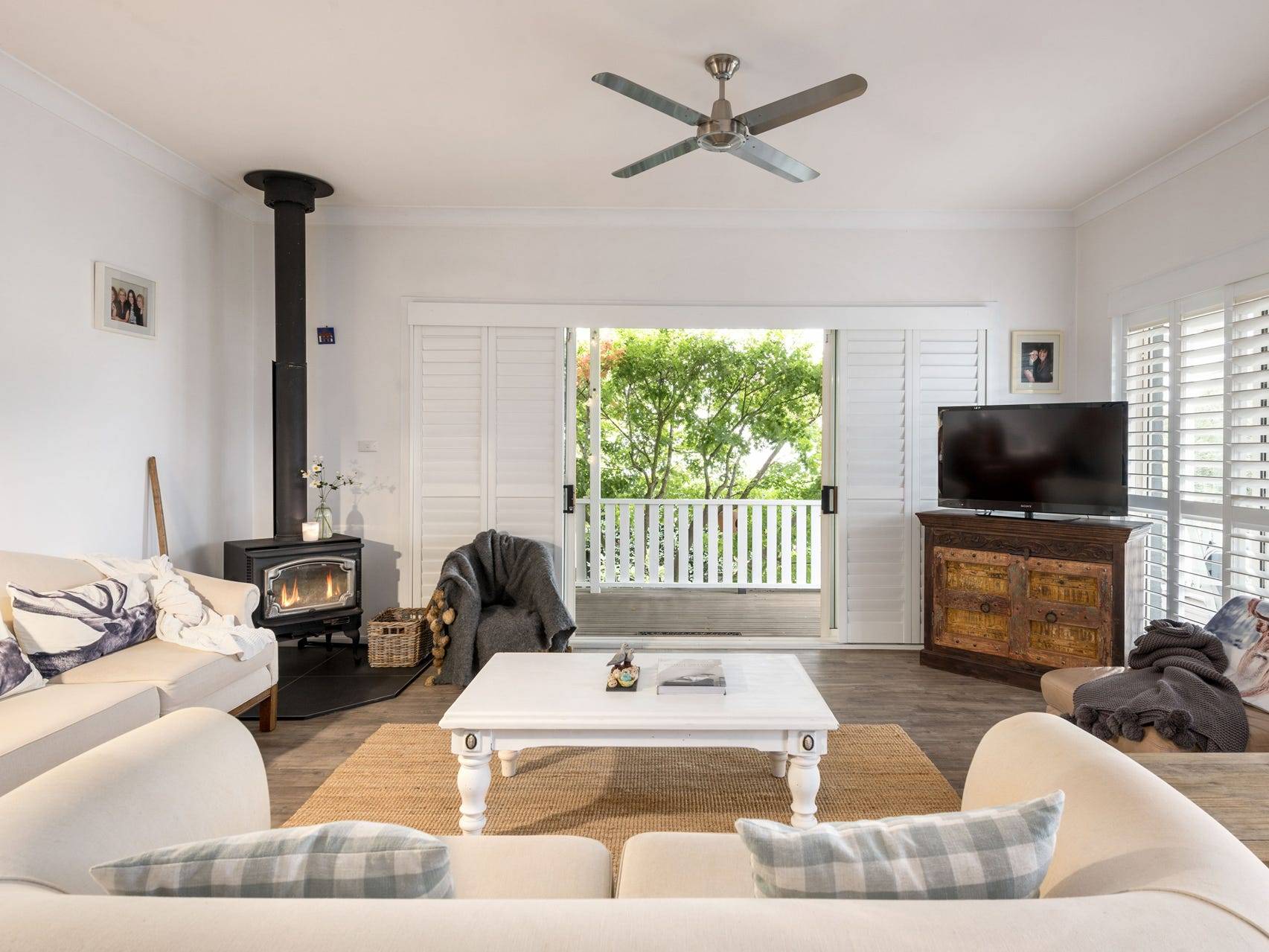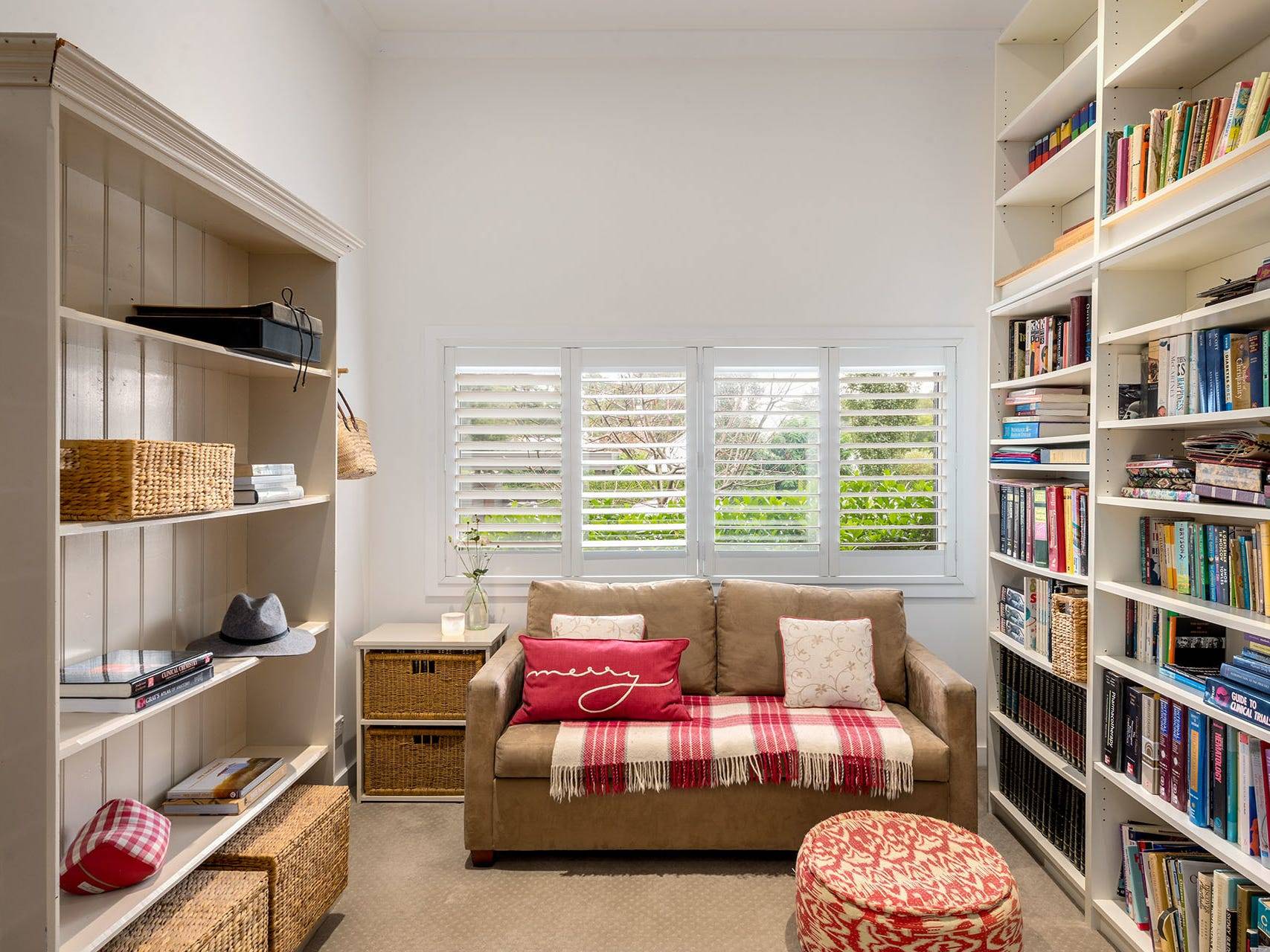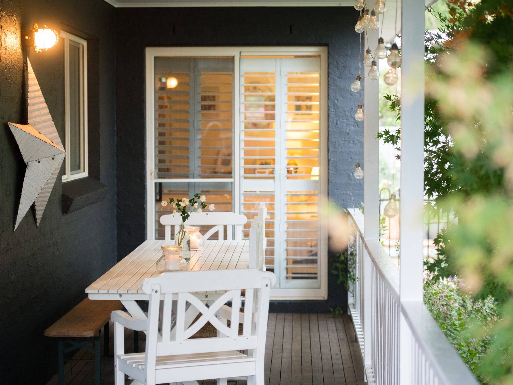 shutters are featured throughout the cottage – both aesthetically-pleasing