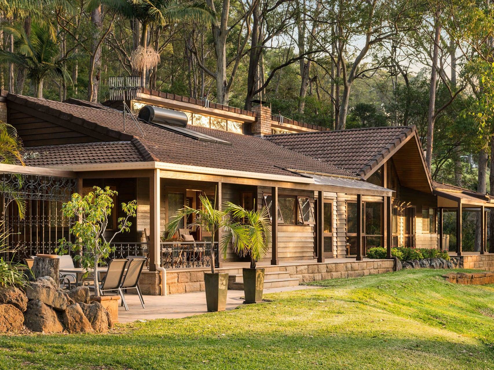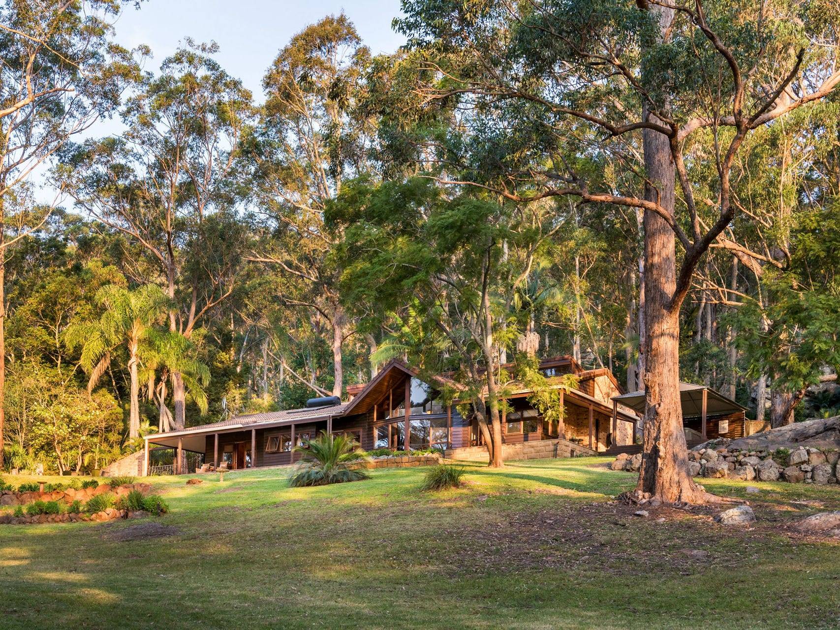 It would be easy to believe you're in the midst of a National Park when you arrive at this property, known as the Shoalhaven River Retreat. But this five-acre block of land is the setting for a four-bedroom home, with architectural details designed to maximise its setting.
