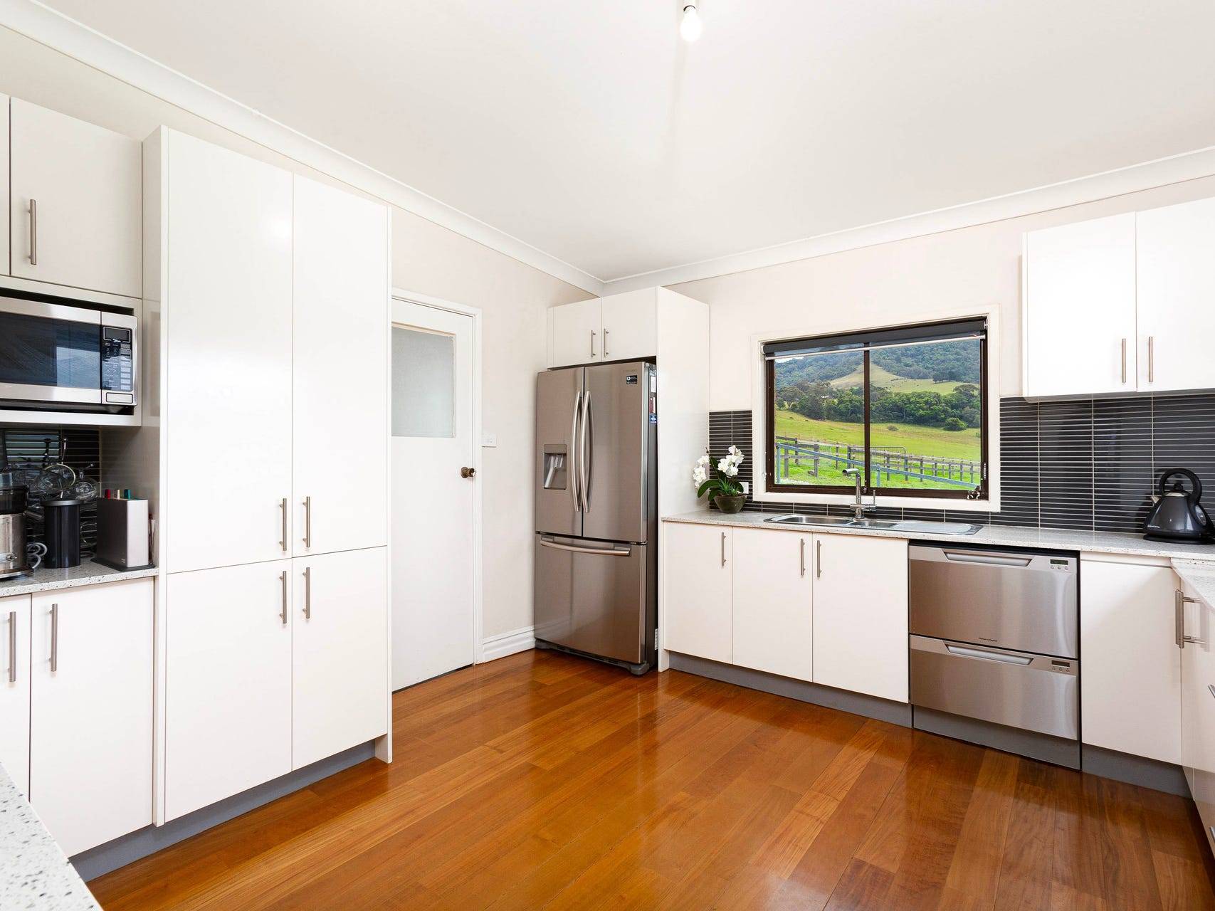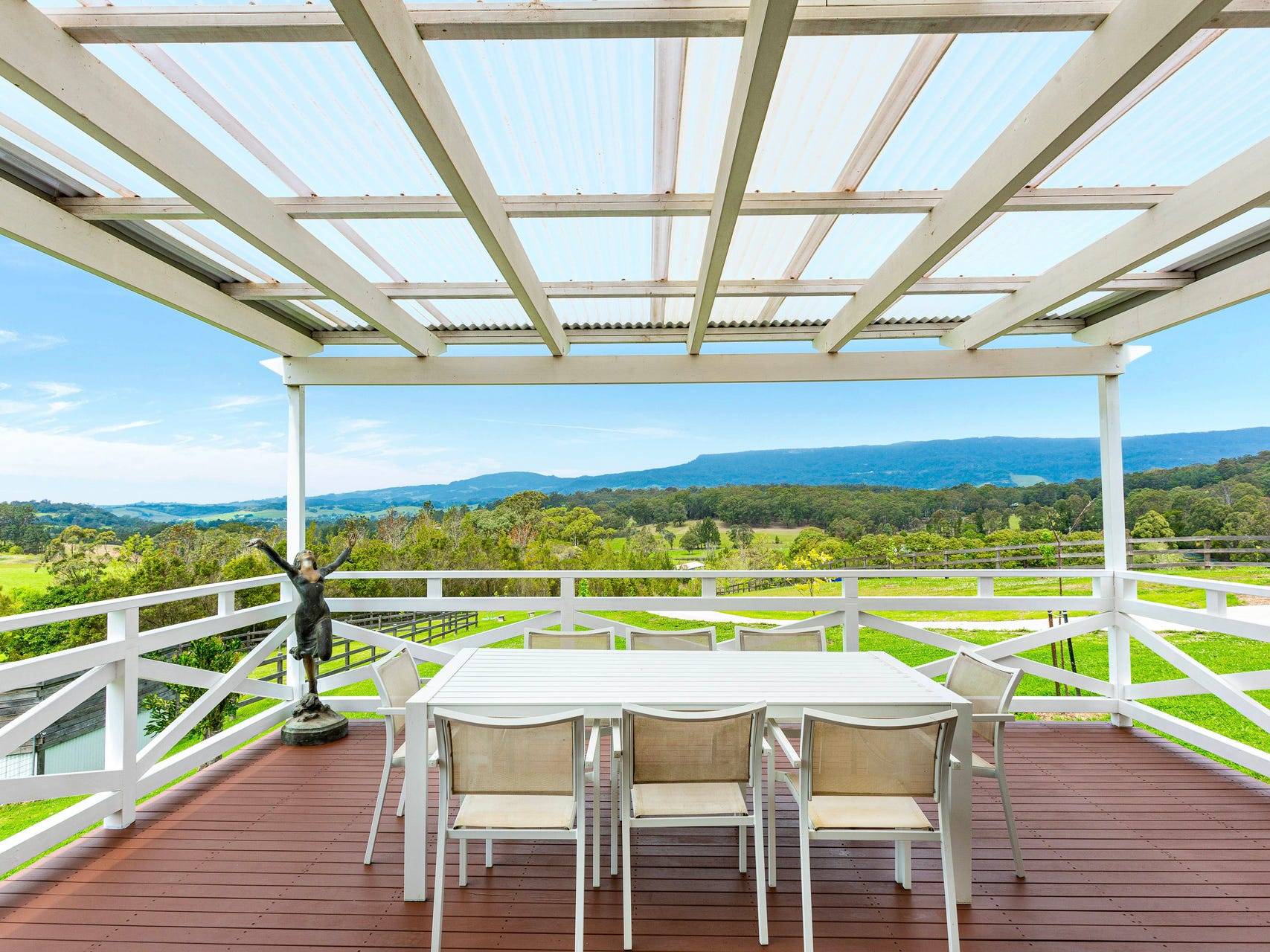 The three-bedroom house, which has been recently renovated, is a haven of privacy and calm. The spacious open-plan living area contains a living room and dining room, with patio doors leading onto a covered deck area - a perfect spot to enjoy panoramic views of the escarpment and landscape of Jamberoo.