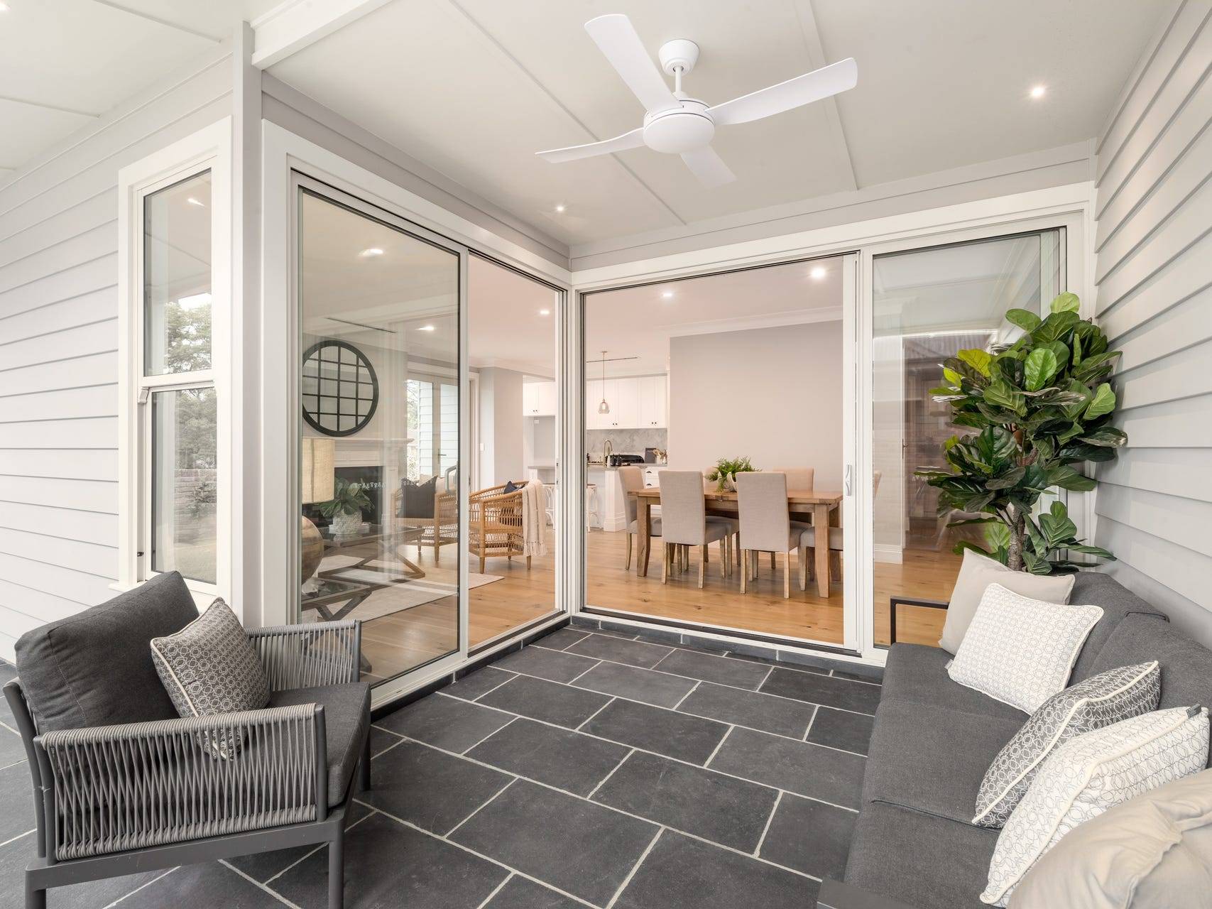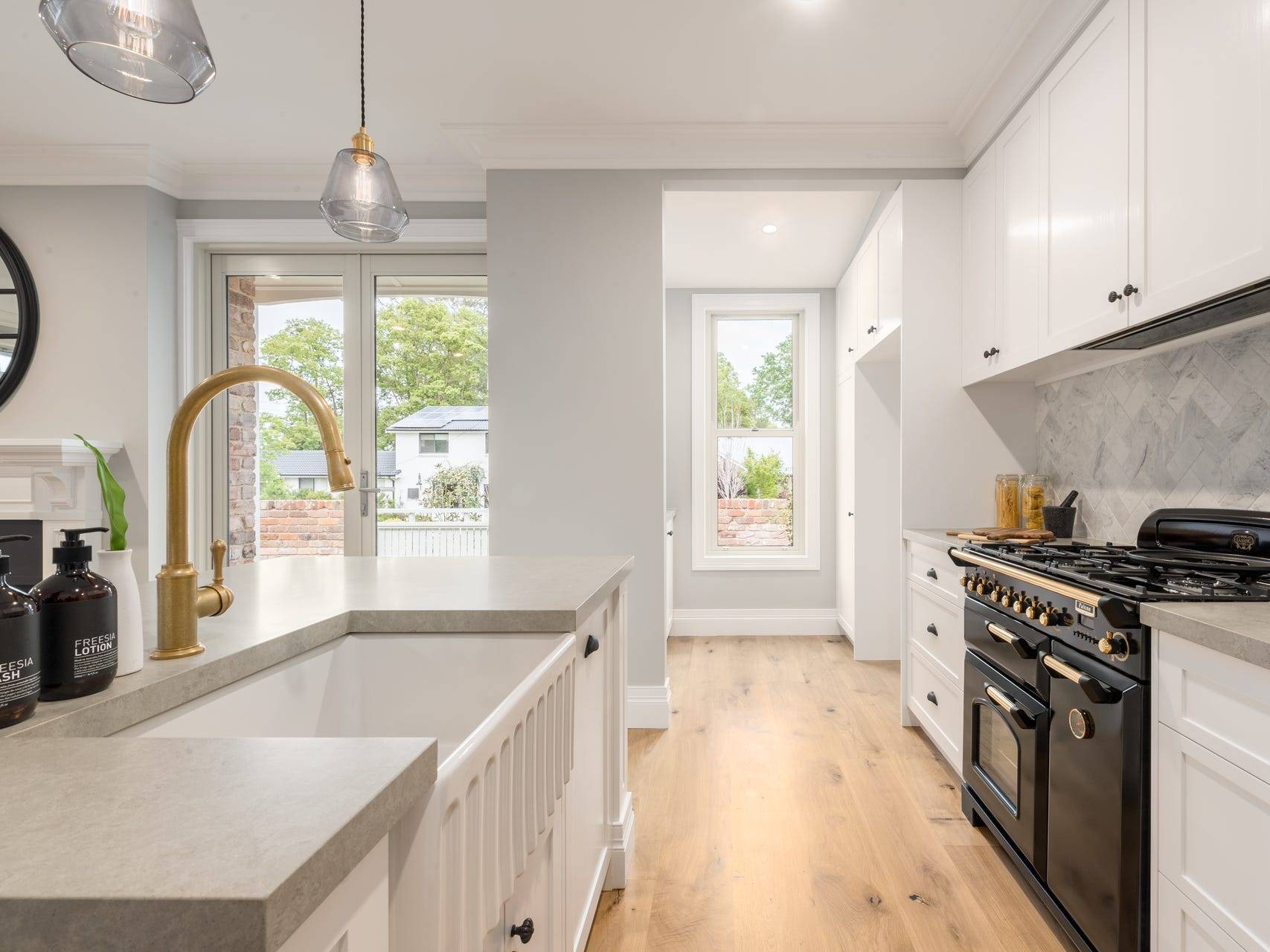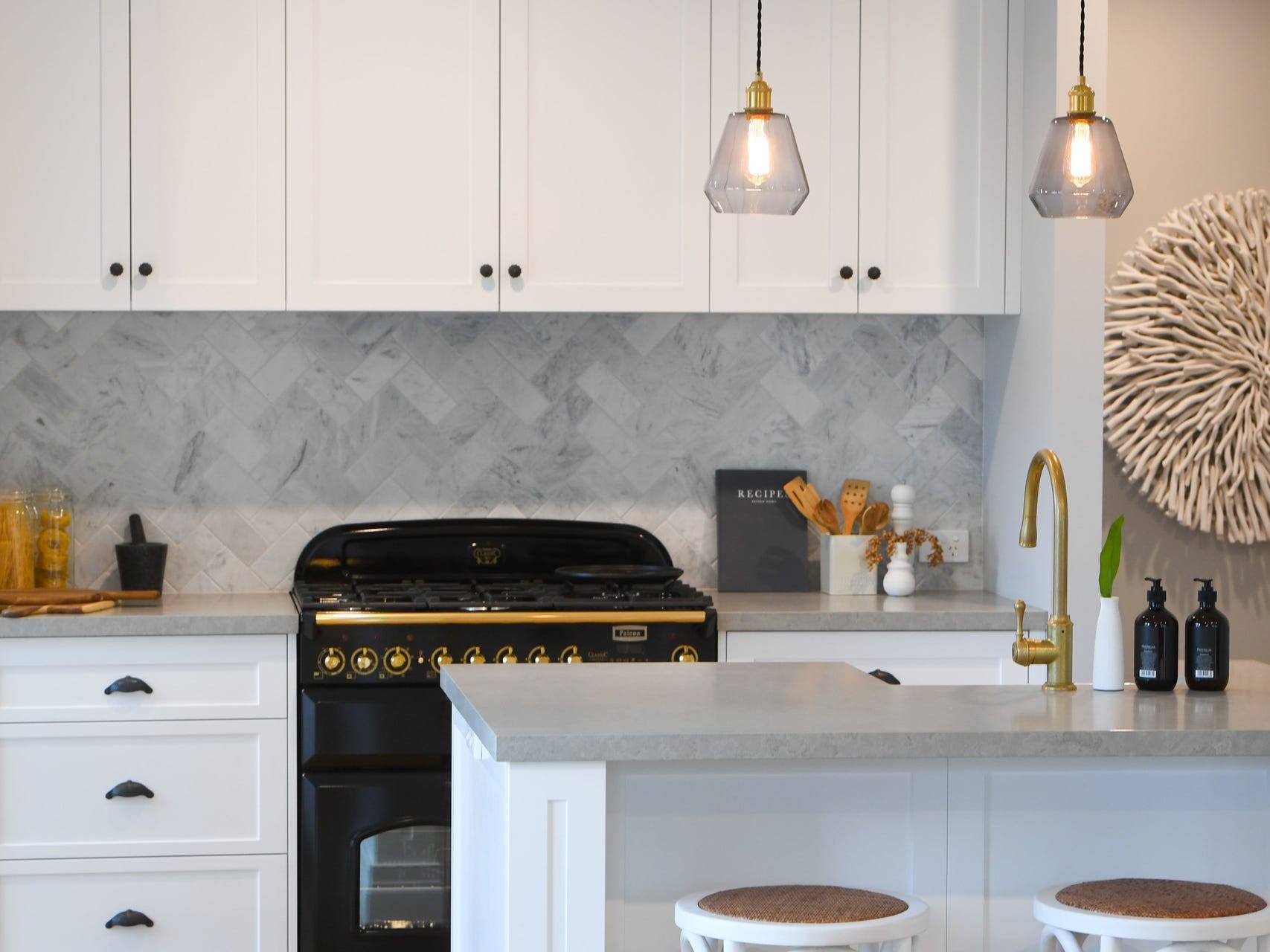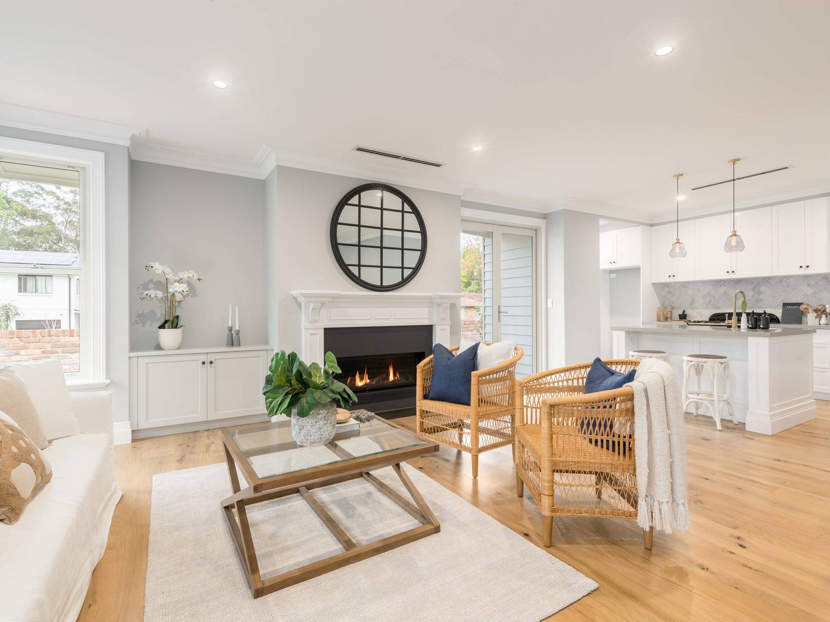 Each home offers an incredibly smart and seamless floorplan, designed to maximise indoor and outdoor living with minimum fuss. An oversized double garage welcomes you home, as you step through to solid European Oak floors throughout the open plan living, dining, and kitchen. It's clear that every detail has been thought of here – from the feature European light fittings, soaring high ceilings, and the all-year comfort of the open gas fireplace and ducted air-conditioning. The gourmet Hamptons-inspired kitchen is bathed in gorgeous natural light, showcasing stone benchtops and breakfast bar, Falcon stove, and custom cabinetry. A delicious combination.