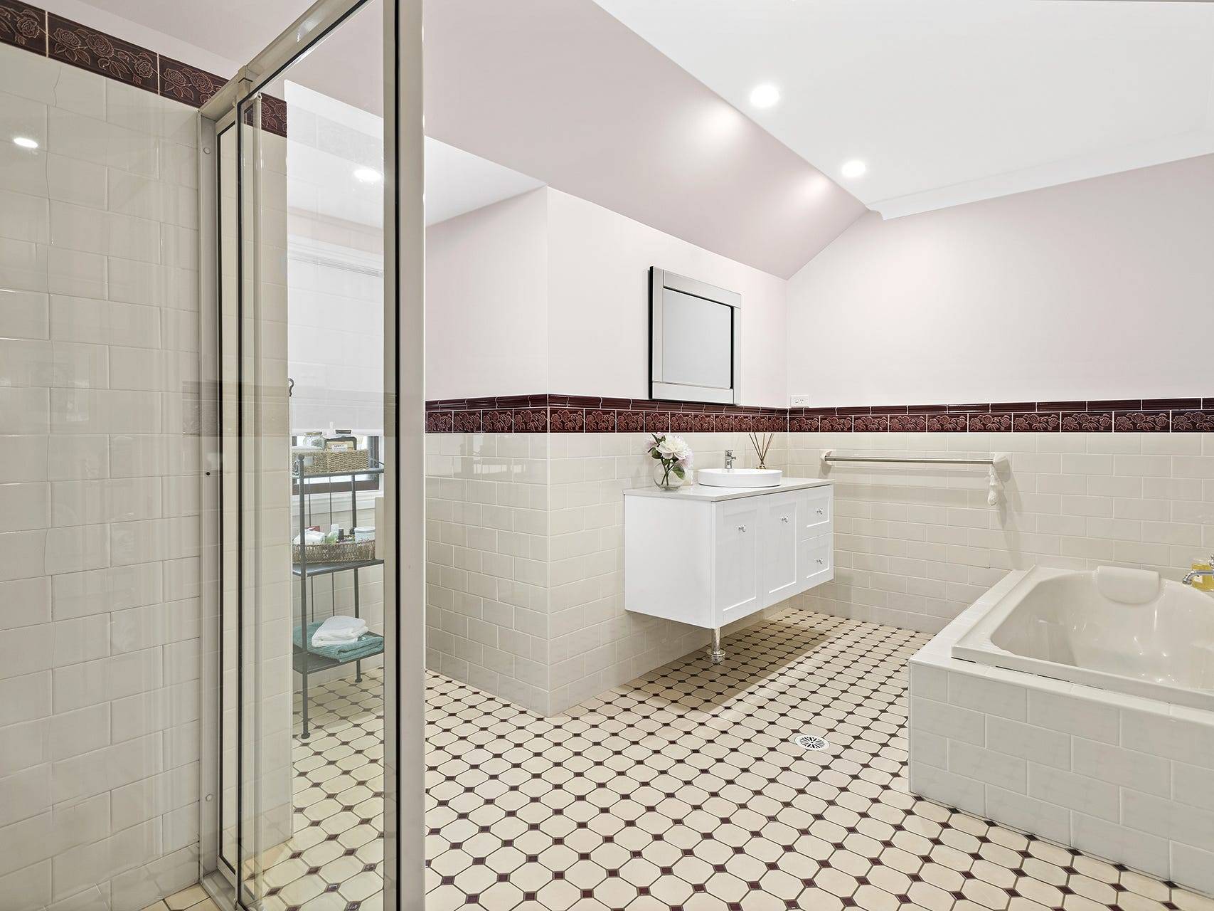 At first sight, this home casts an impressive figure – a wrap-around veranda providing a superb sunny afternoon spot, while eye-catching dormer windows define the level above. Inside, the ground floor radiates out from the open plan kitchen/living area – an air-conditioned space with solid timber floorboards and views out to the back yard. The timber kitchen makes good use of this outlook, featuring double sinks, stone benches, dishwasher, large breakfast bar and a formal dining room alongside.