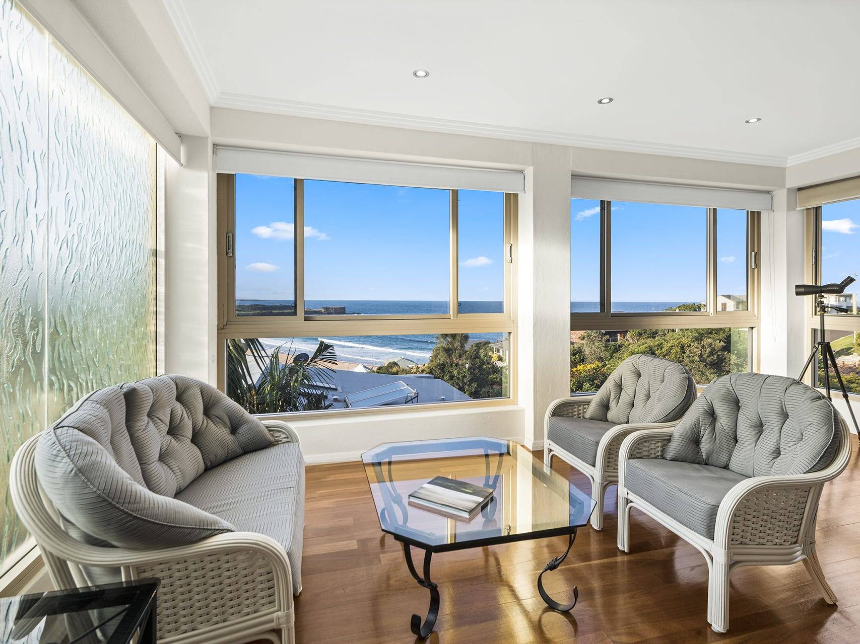 Downstairs, the lower level cleverly reveals a European-style laundry, as well as the main bathroom (with separate bath and shower) and two further carpeted bedrooms – each with good storage and stepping out to a covered terrace with even more ocean views. From here you can access the compact level yard, beautifully maintained and flanked by palm trees and hedging. There is also excellent under house storage.