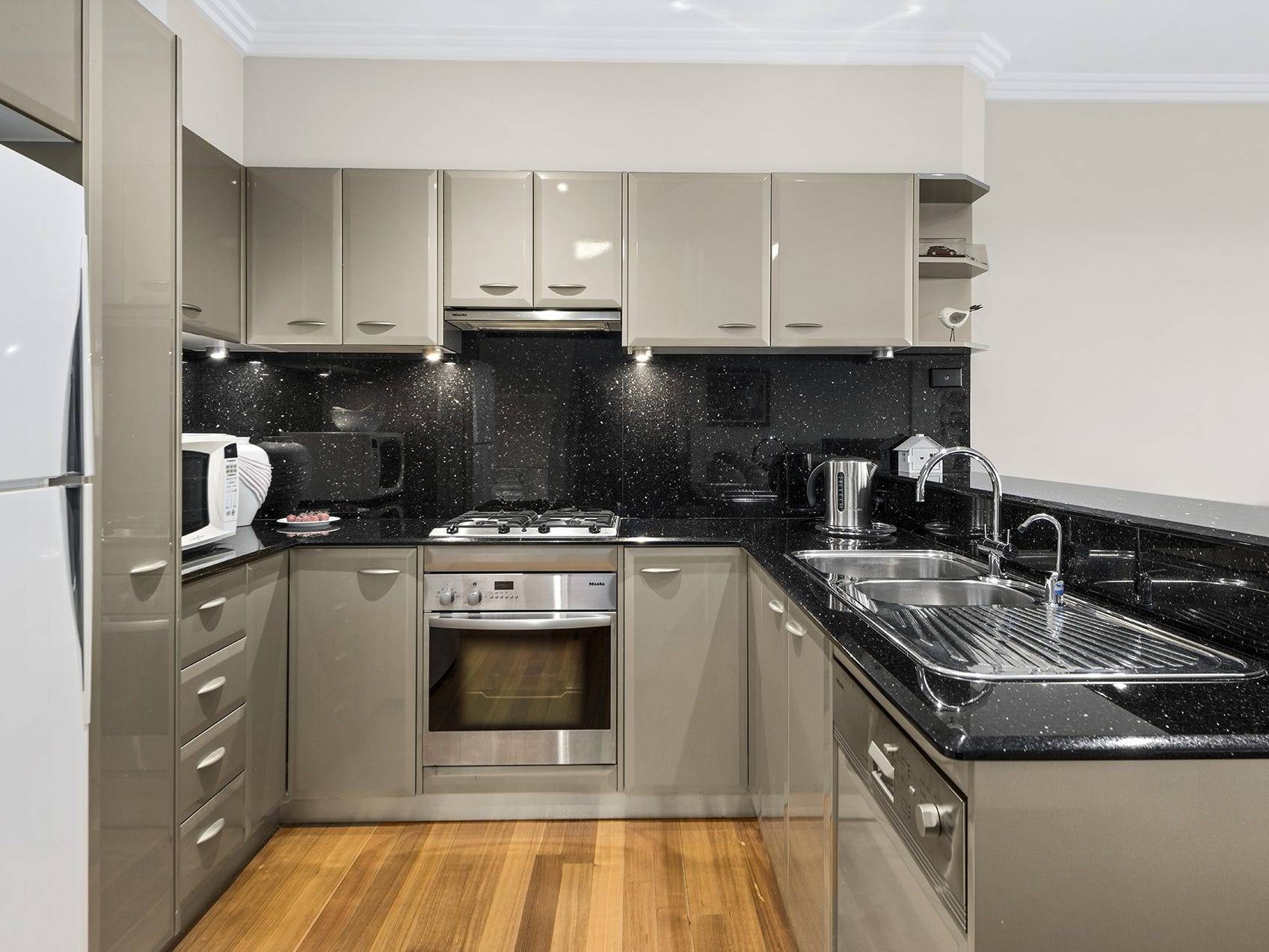 Everywhere on this level enjoys those impressive views, including the modern kitchen – with granite benchtops, gas cooking, stainless steel appliances and finished in silver cabinetry. Meanwhile, solid timber floors, gas heating and air-conditioning ensure a comfortable and welcoming living space, all year round.