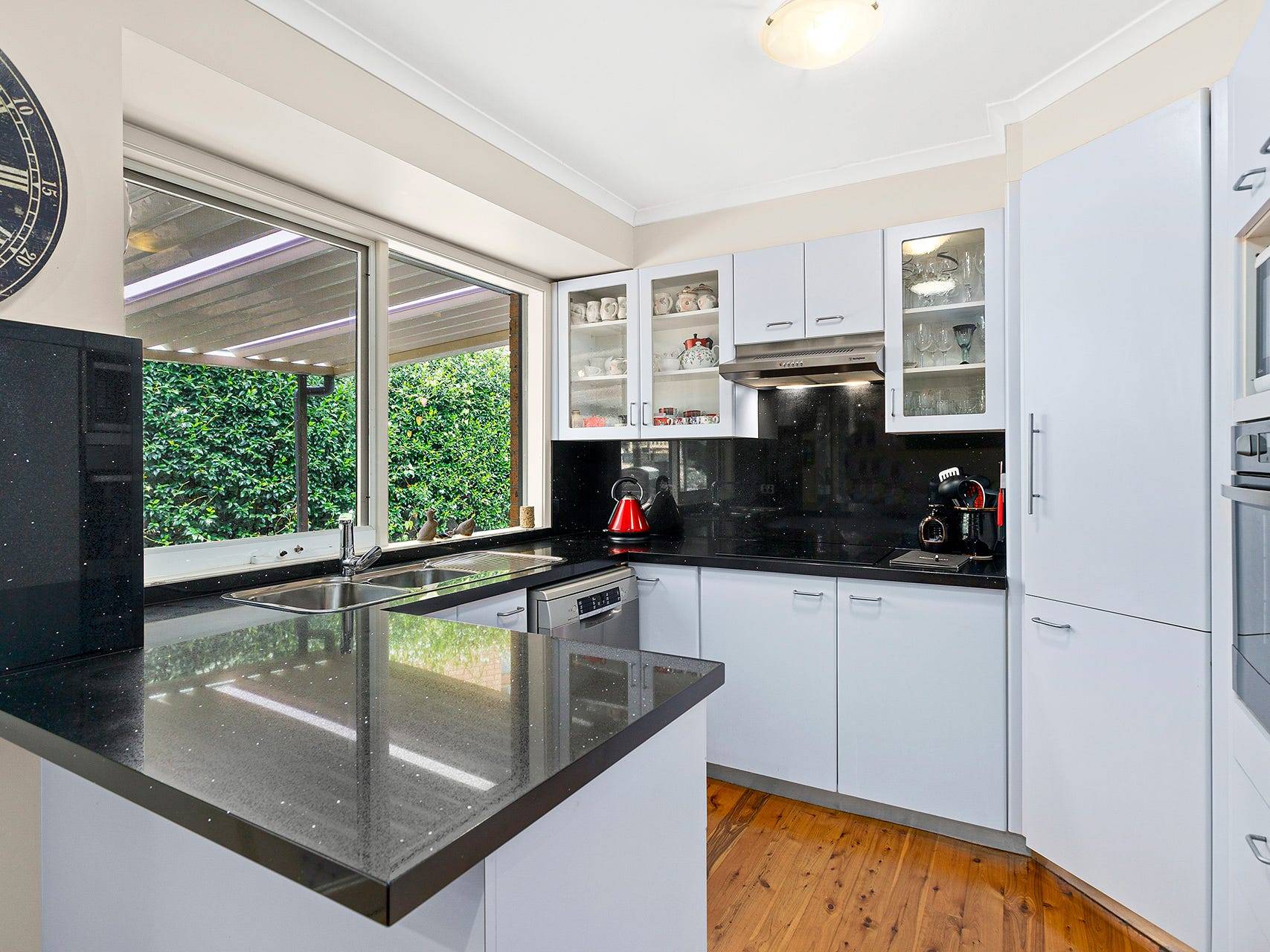 The property comes recently re-painted throughout and features an expansive lounge room with polished timber floors, plantation shutters and a sweeping northerly escarpment outlook. The combined kitchen and dining area opens to a private undercover al fresco dining and entertaining area and low maintenance landscaped backyard with detached garden studio.
