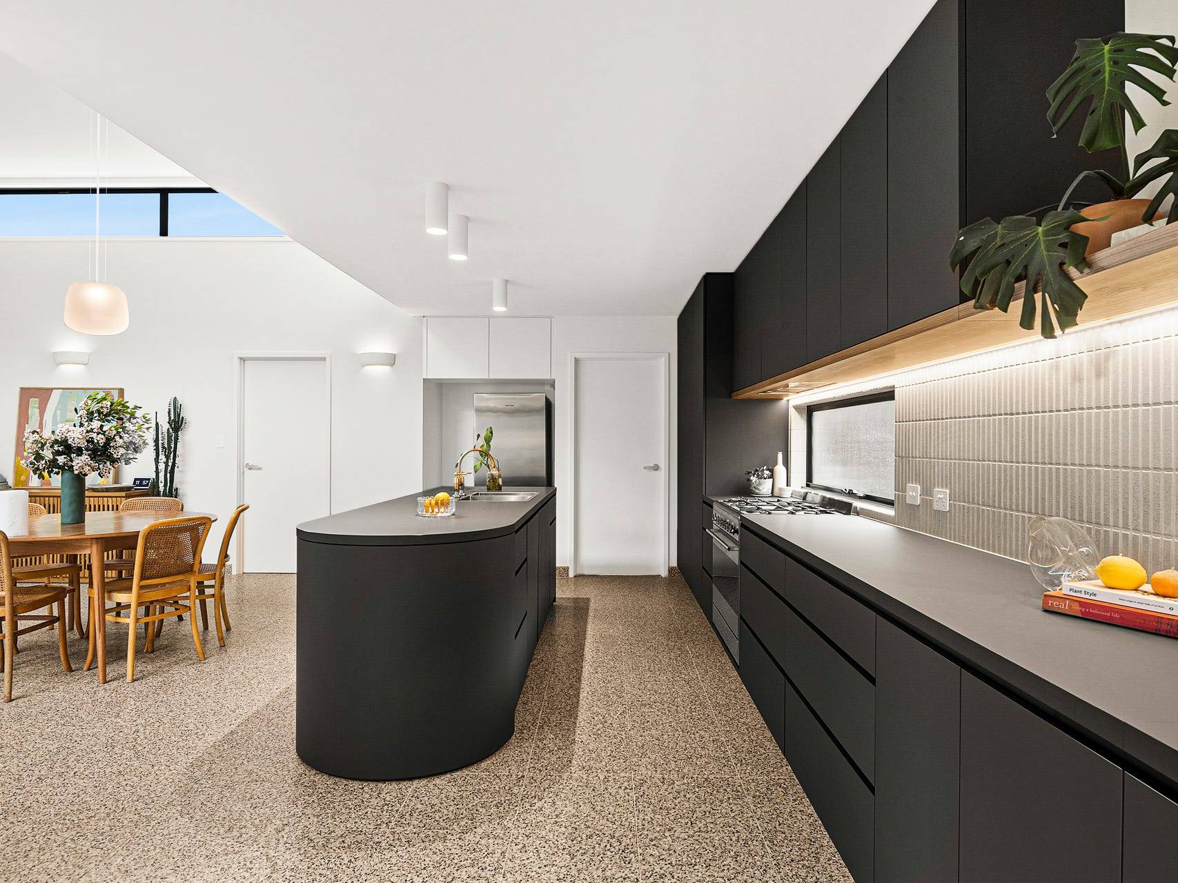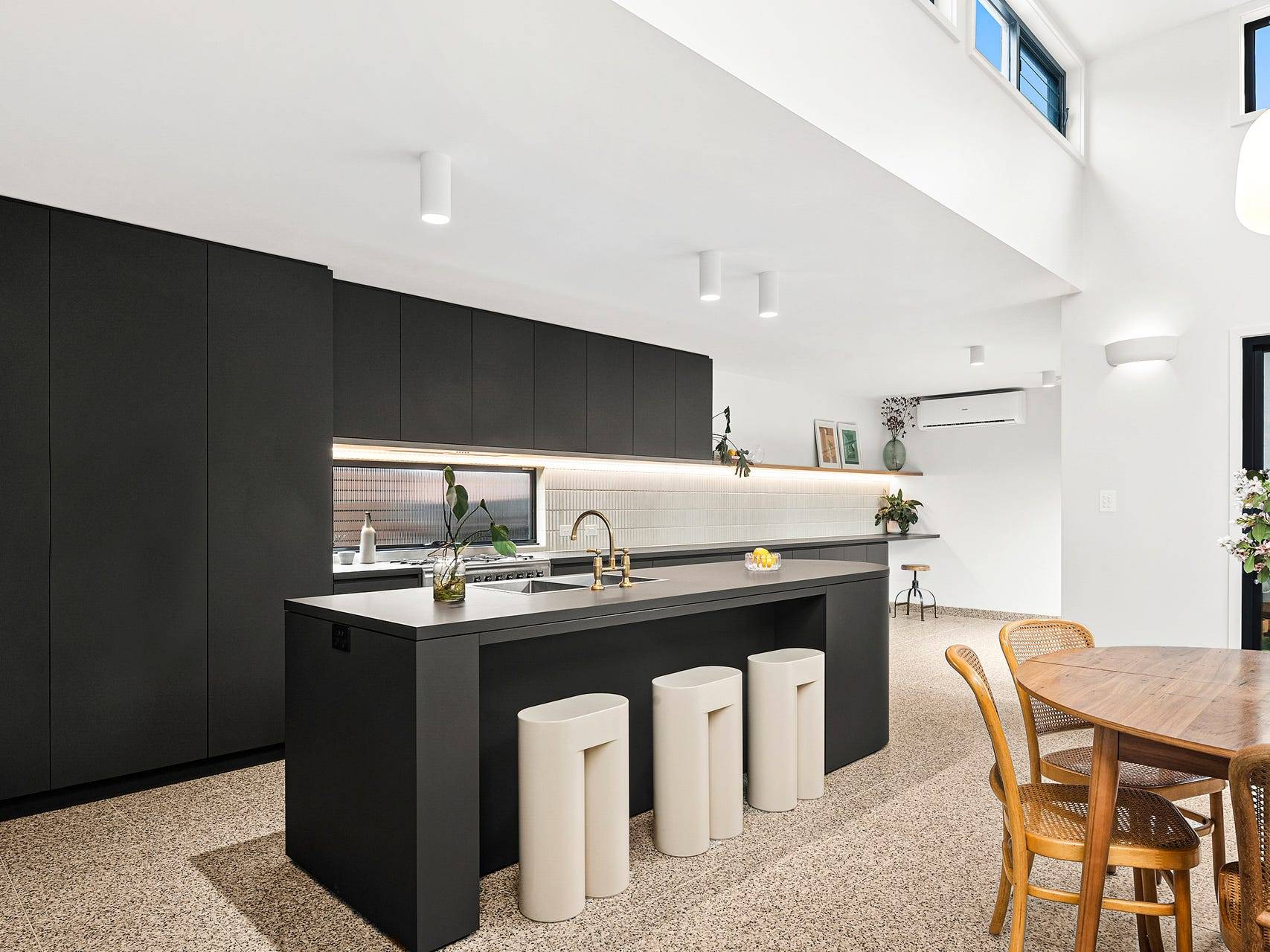 To get a taste for what modern might look like, simply step through to the back half of the home. Here, the current owners have spared no expense in creating the ultimate 'sanctuary among the trees', starting with a vast airconditioned living space filled with natural light. From the stunning terrazzo floors and skirting to the custom-sourced Italian FENIX kitchen island and benches, nothing here is 'off the rack'.