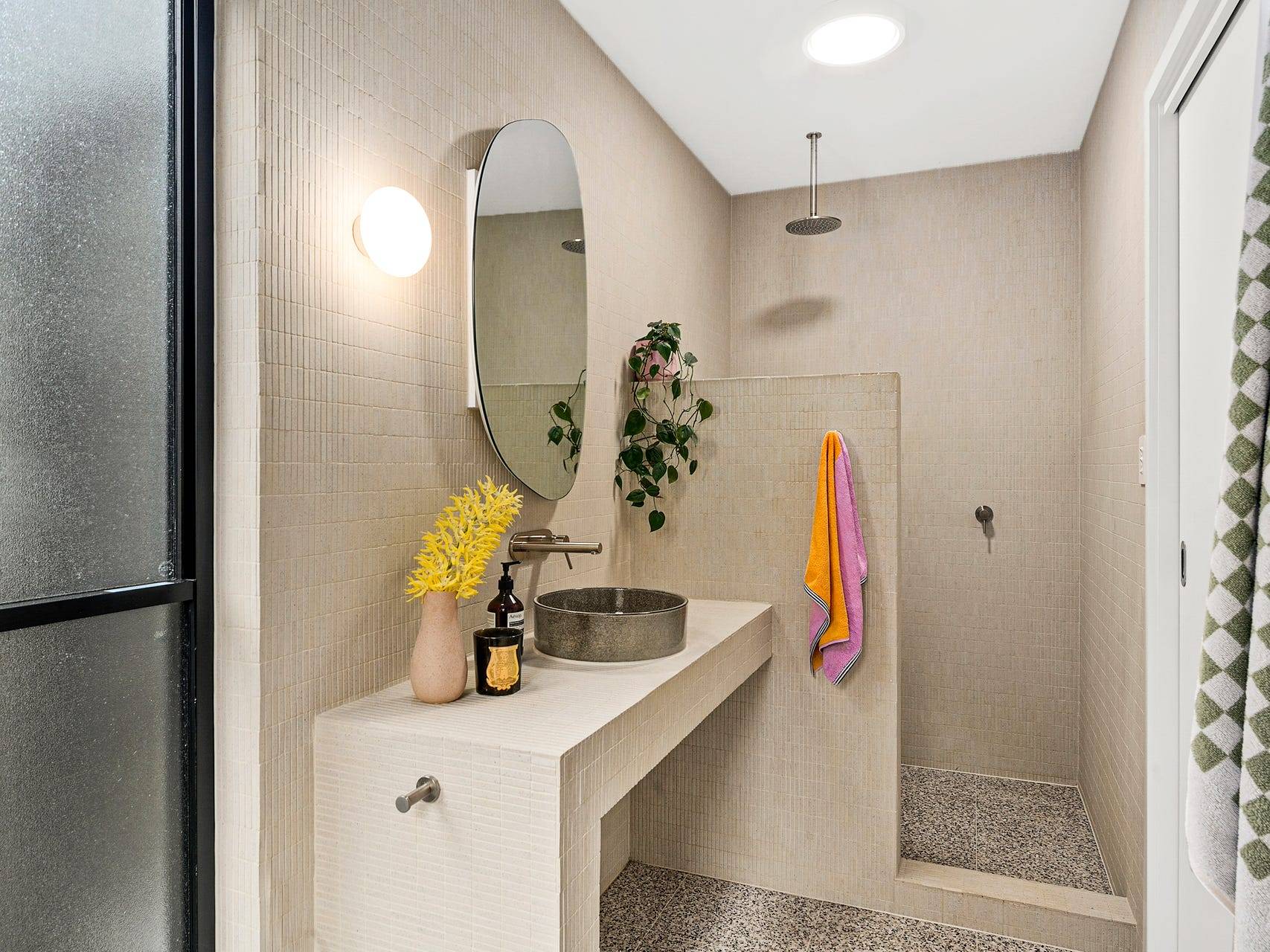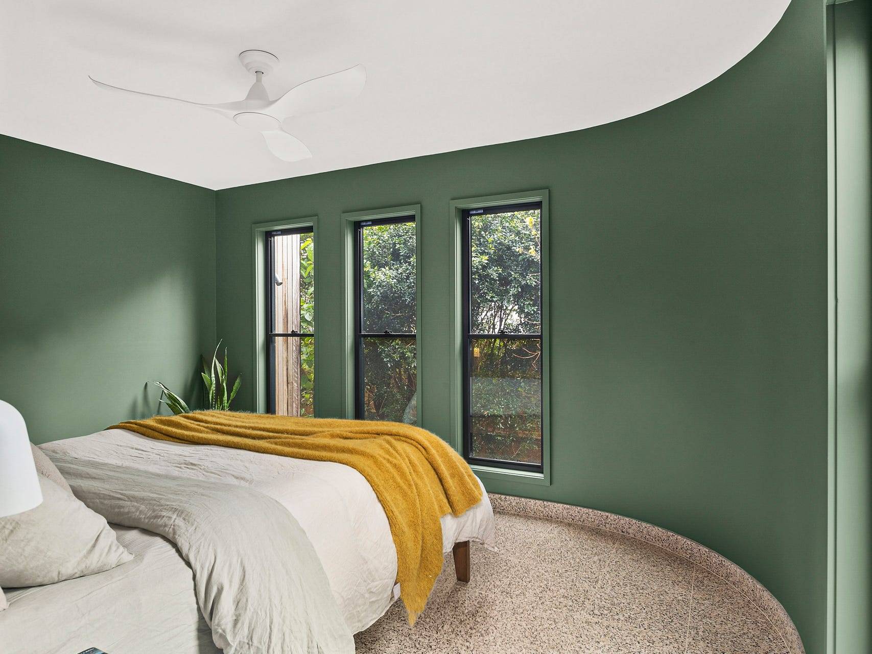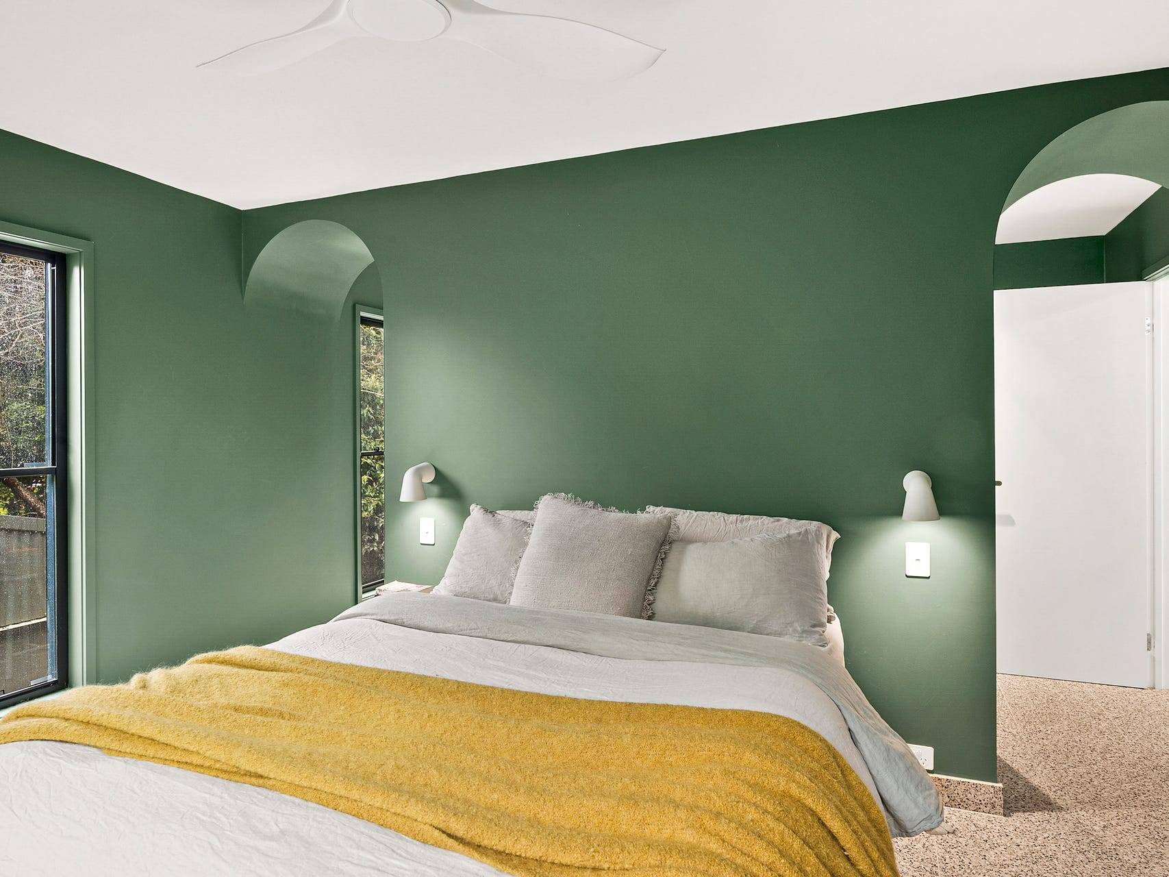 Venture further to find the master bedroom, with stunning curved wall and feature ceiling fan, while the walk-in wardrobe and custom-tiled ensuite maintain the same incredible attention to detail. There's also space for a laundry, stepping out to a yard with a separate shed – the ideal space for an artist's studio or gym.