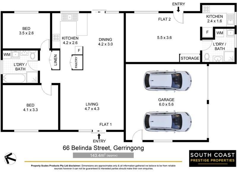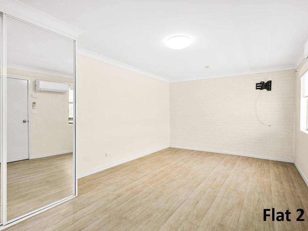 Situated on a 600sqm level parcel of land, this property presents a lucrative opportunity with broad appeal. It is the perfect opportunity to take advantage of the existing dwelling, with multiple incomes. Flat 1 offers 2 bedrooms, 1 bathroom, achieving between $450-$500 per week. Whilst flat 2 presents as a fully self-contained studio, achieving between $350-$400 per week. Each flat is separately power metered, whilst both boast a 1 car lockup garage.
