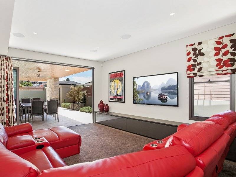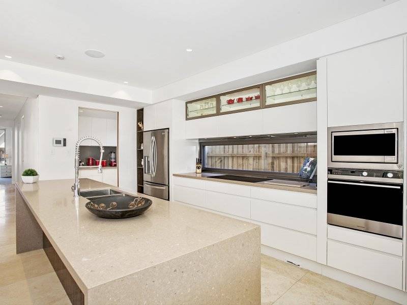 This spacious residence features multiple light-filled living areas and various outdoor entertaining options. With an open plan layout and full length glass bi-fold doors, this residences flows endlessly out to an undercover alfresco area overlooking a pool with water feature.