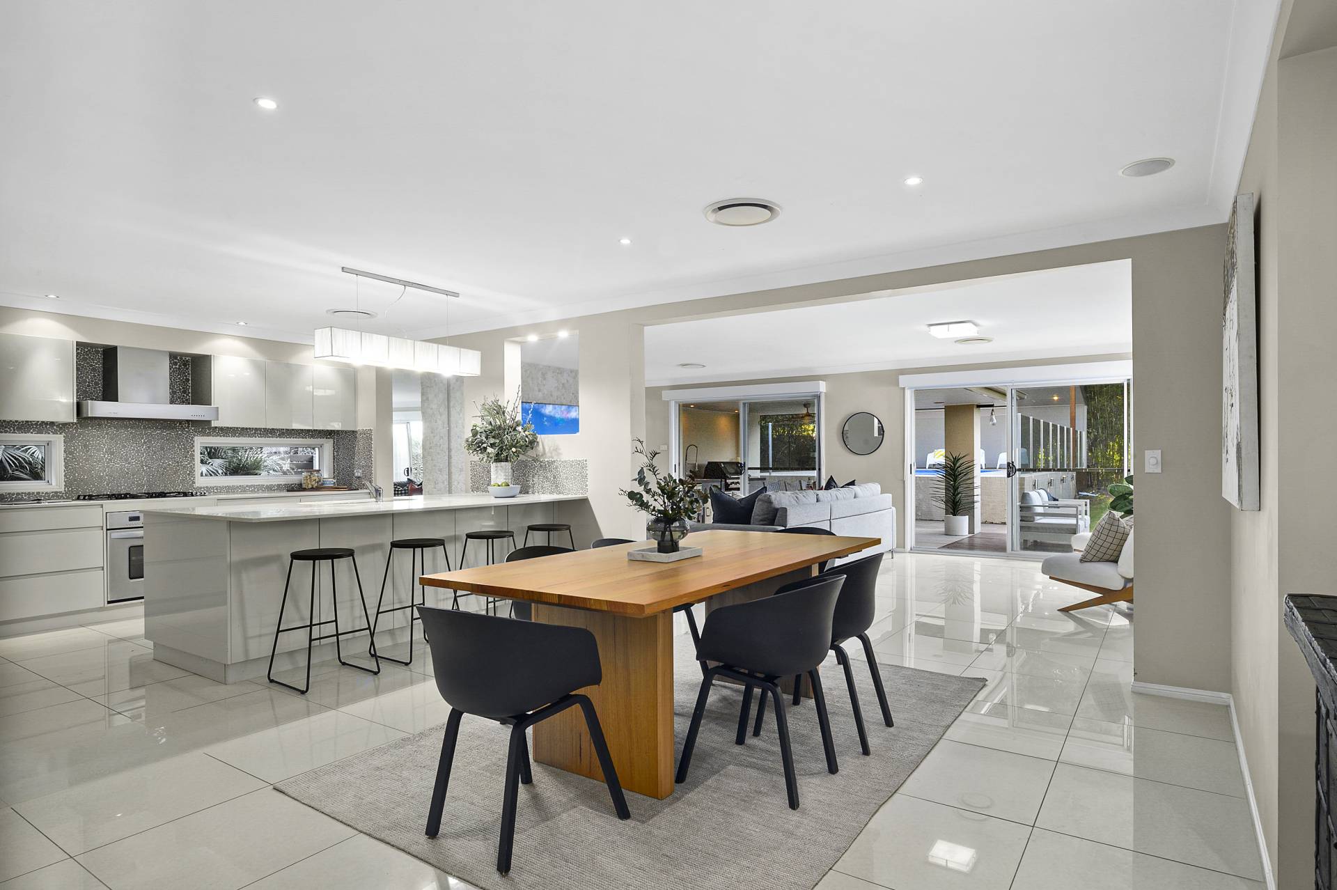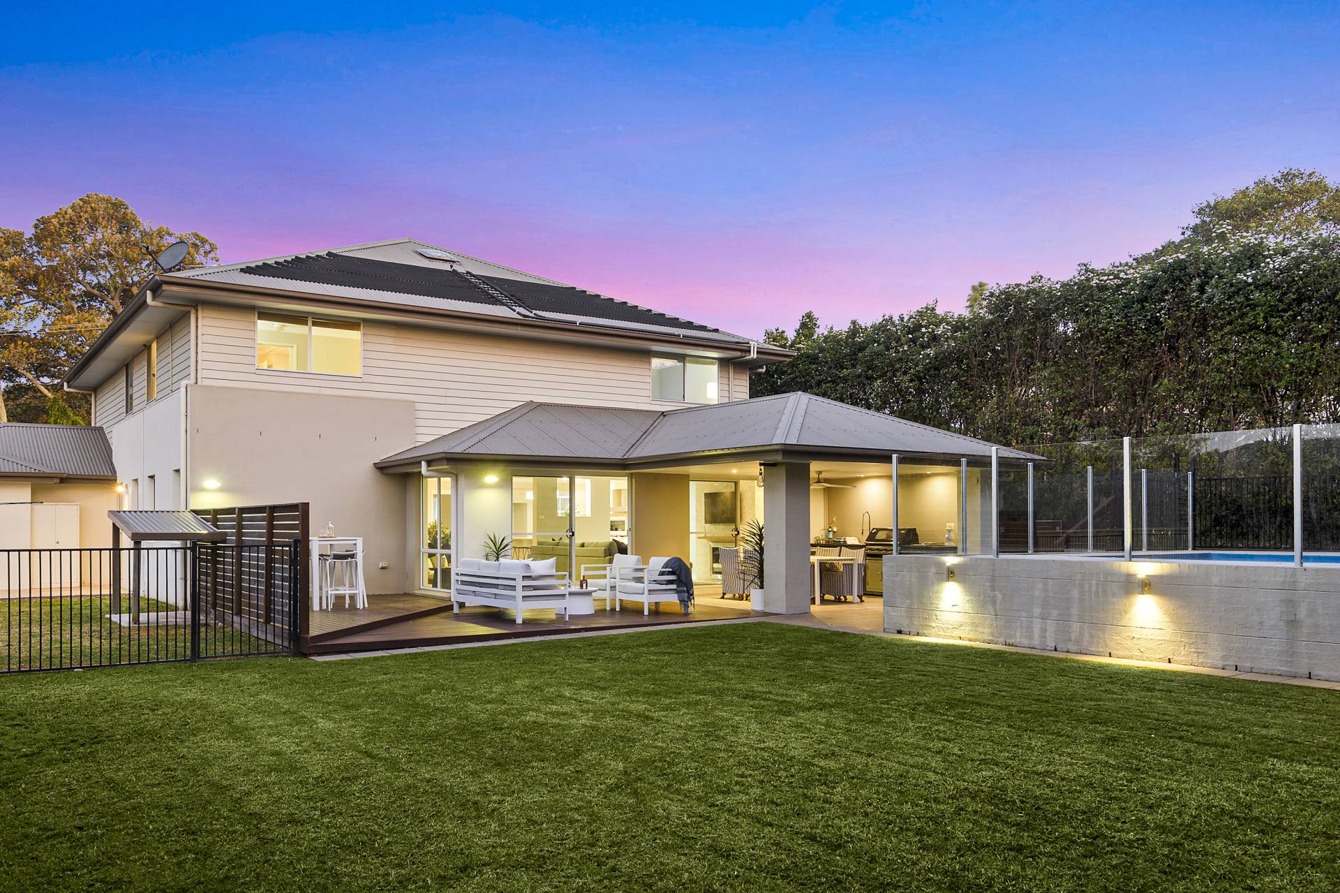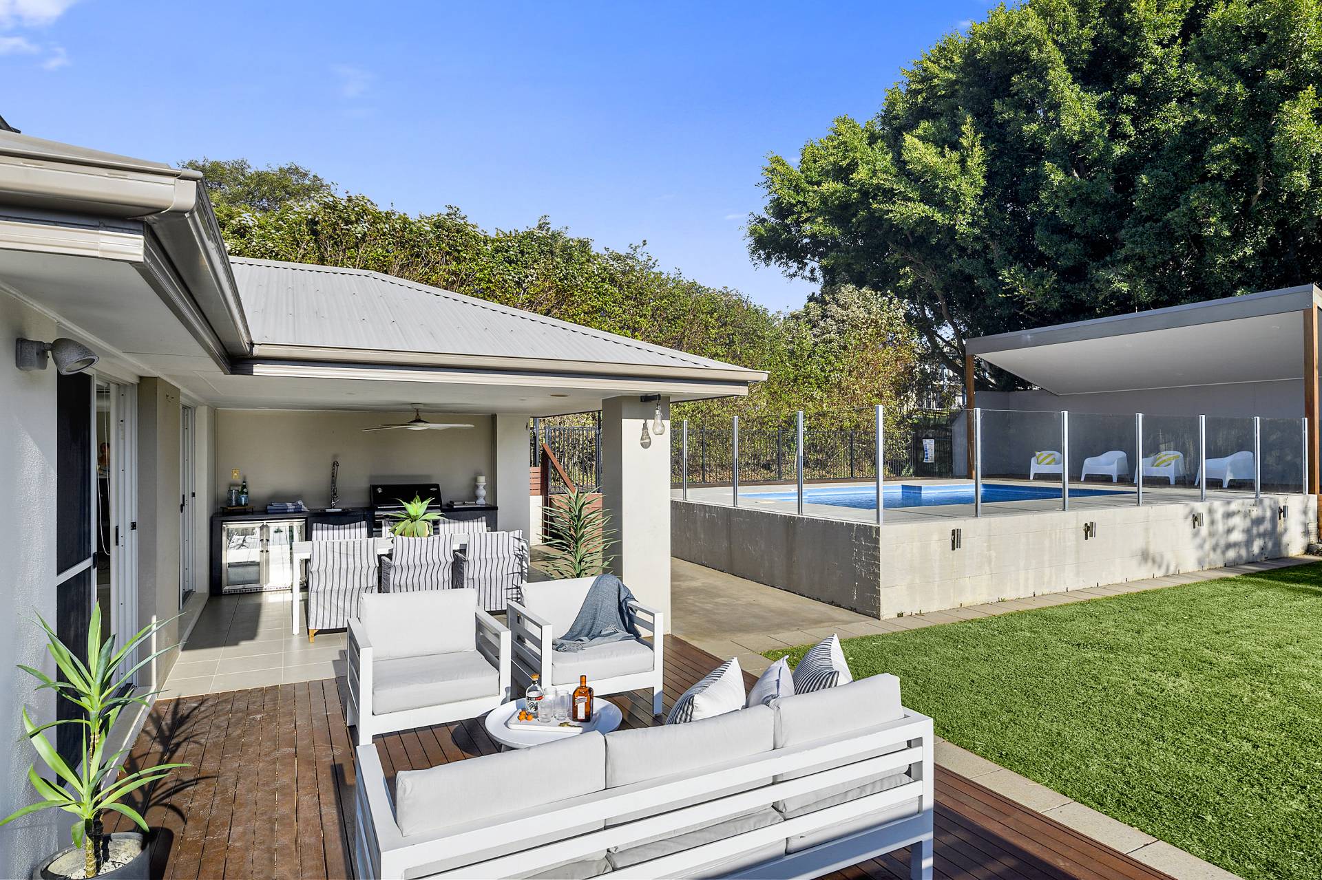 The allure of this remarkable home extends beyond the interior; a north-facing wall of sliding glass doors (which flood the space with oodles of natural light at all times of the day) leads to your own private outdoor sanctuary - an oasis offering privacy and tranquillity, complete with undercover al fresco kitchen/BBQ and dining, sun-drenched entertaining deck and a sparkling swimming pool with separate gazebo. A large lawn completes the picture, a garden perfect for entertaining year-round.