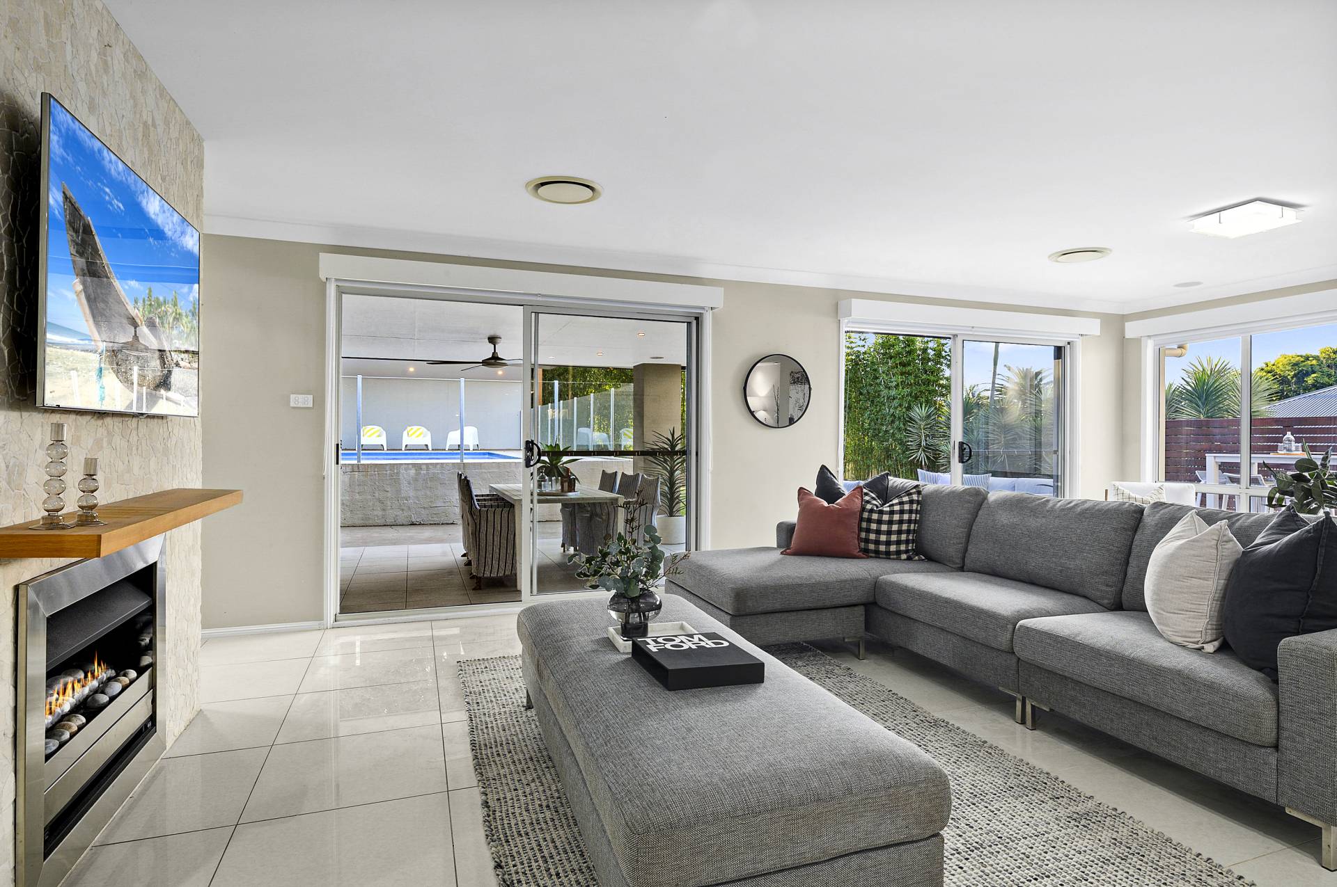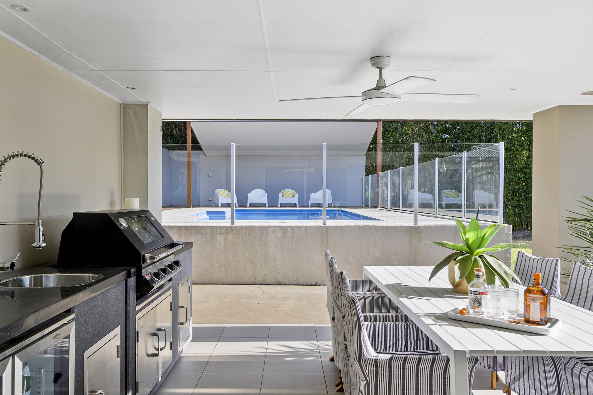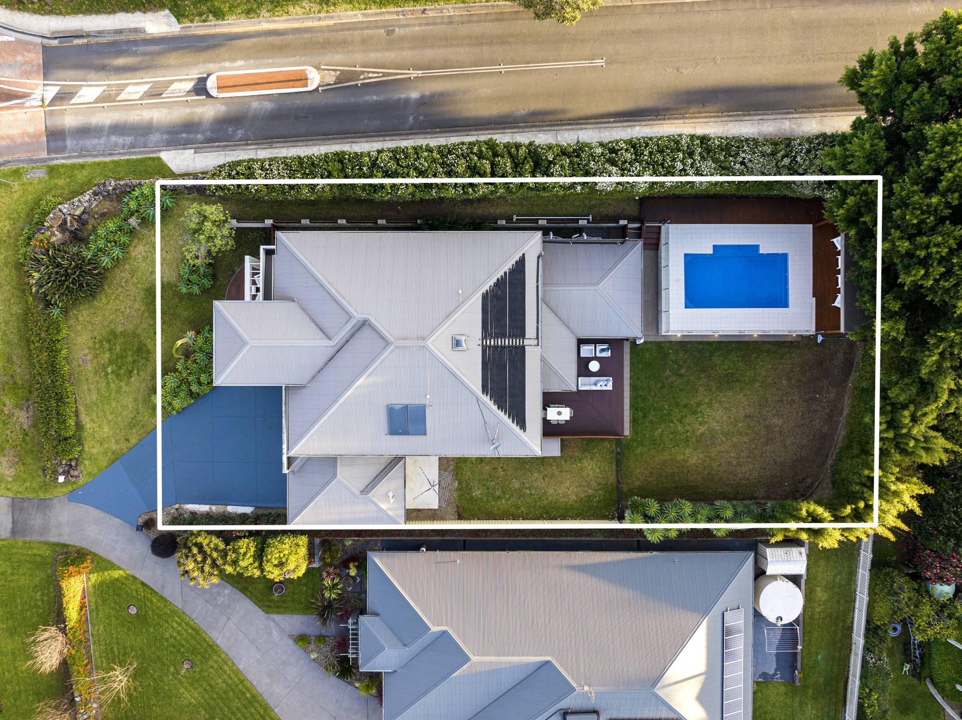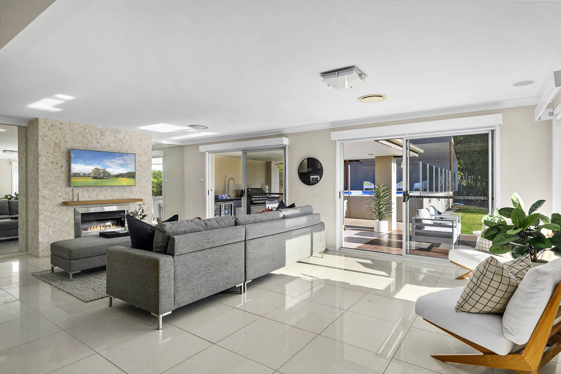 The allure of this remarkable home extends beyond the interior; a north-facing wall of sliding glass doors (which flood the space with oodles of natural light at all times of the day) leads to your own private outdoor sanctuary - an oasis offering privacy and tranquillity, complete with undercover al fresco kitchen/BBQ and dining, sun-drenched entertaining deck and a sparkling swimming pool with separate gazebo. A large lawn completes the picture, a garden perfect for entertaining year-round.