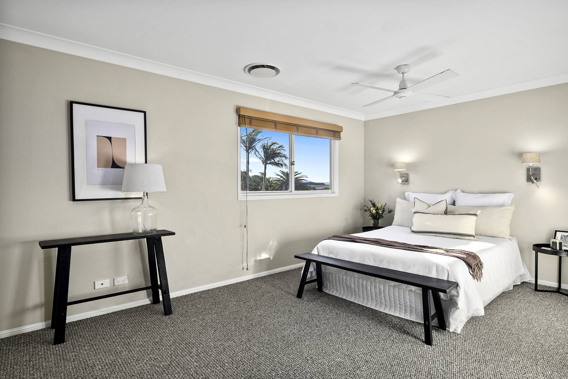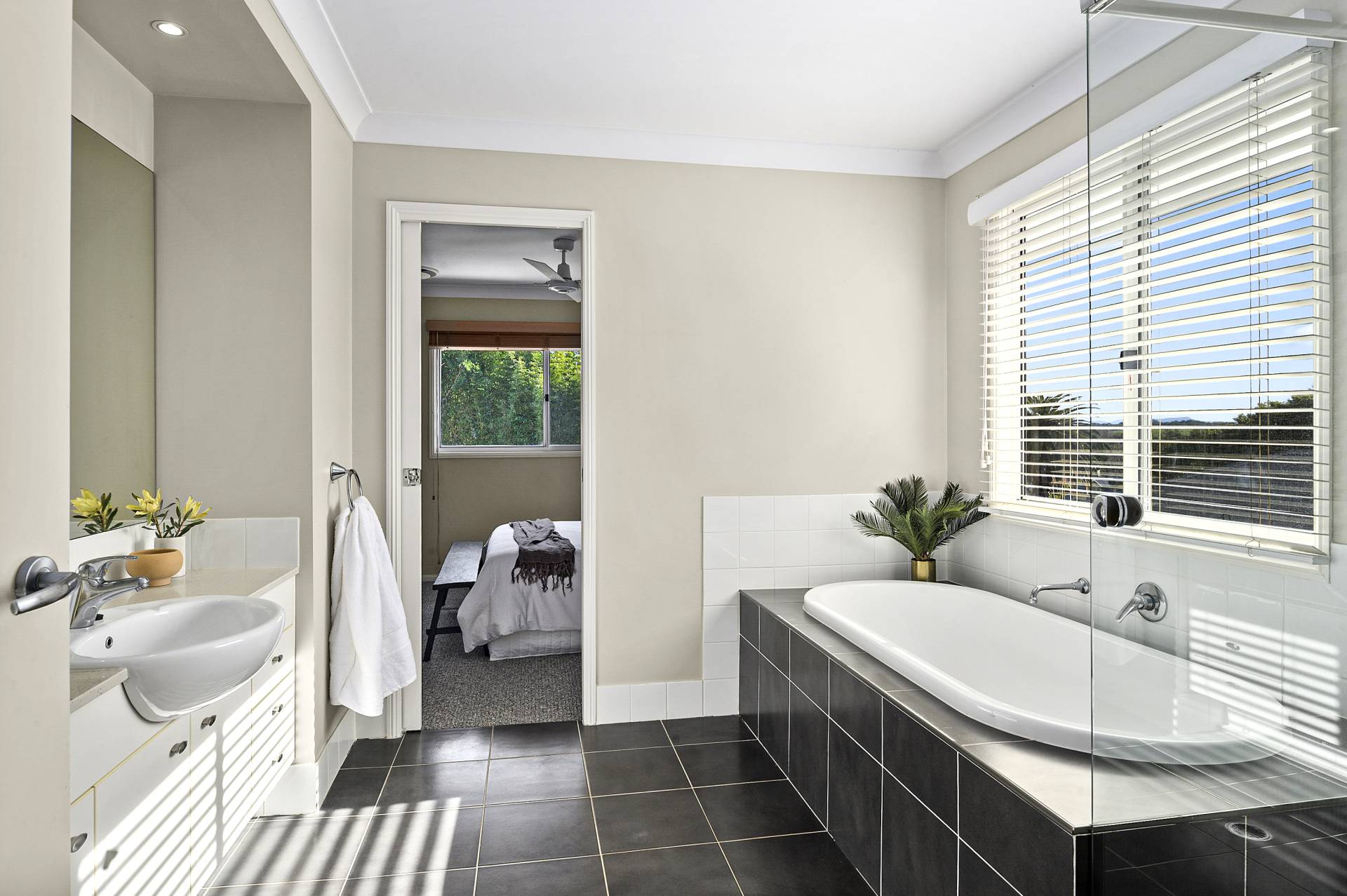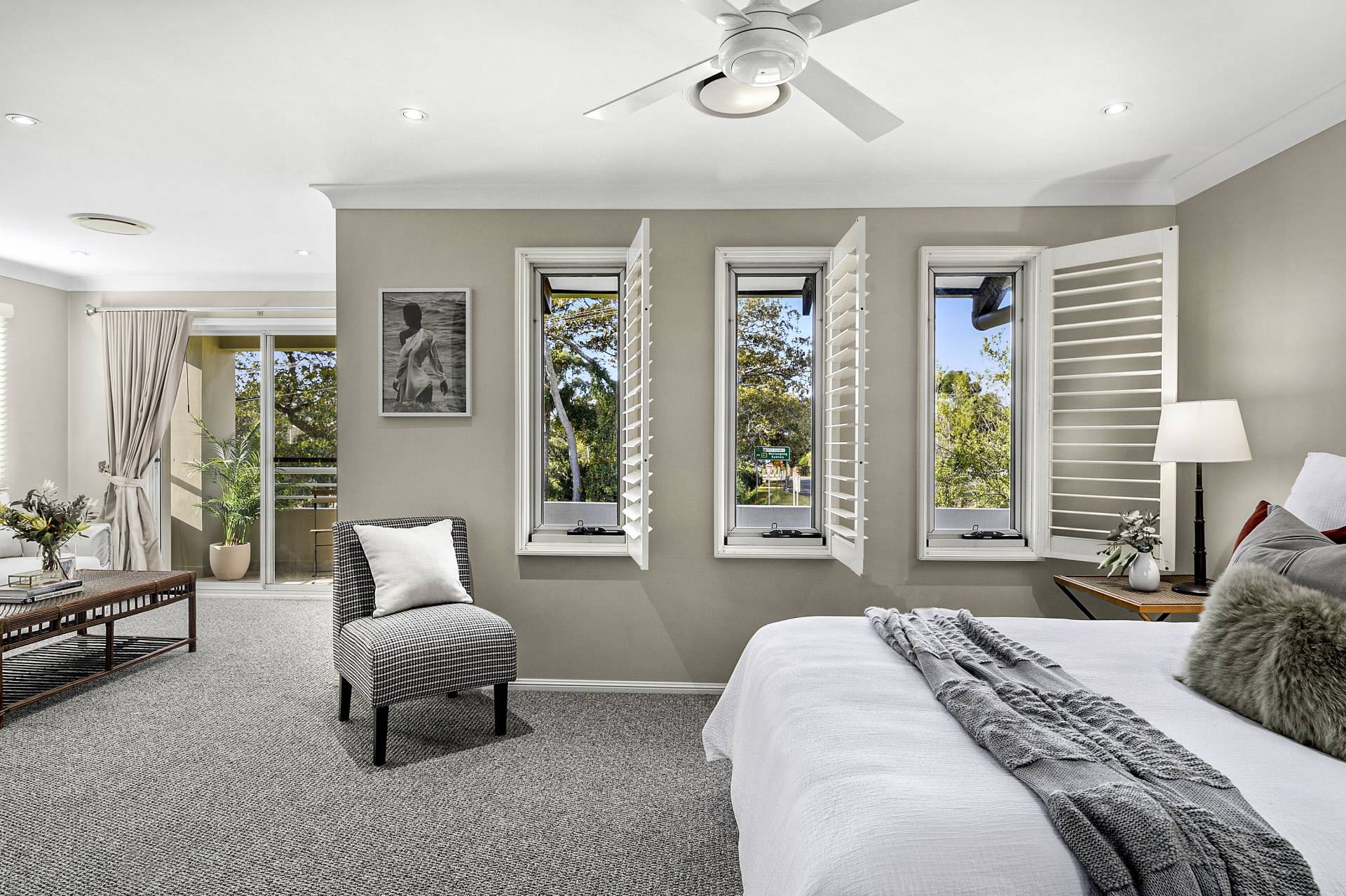 The principal bedroom suite is a true haven consisting of a generous main bedroom space with an adjoining retreat complete with external and internal balconies, an enormous walk-in robe and a large and luxurious bathroom complete with corner bath, separate shower and double-sink vanity.