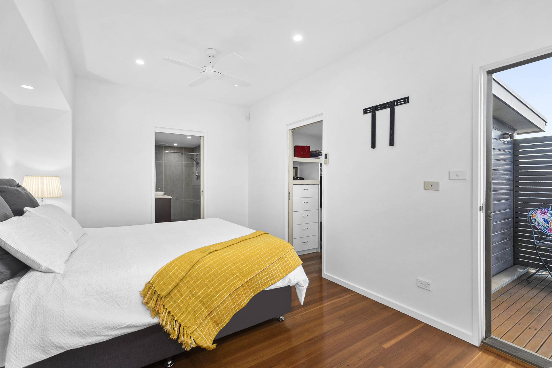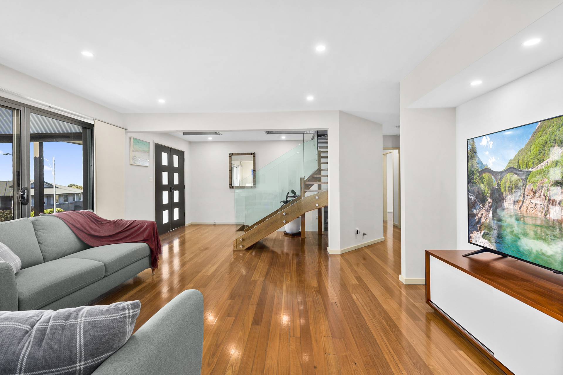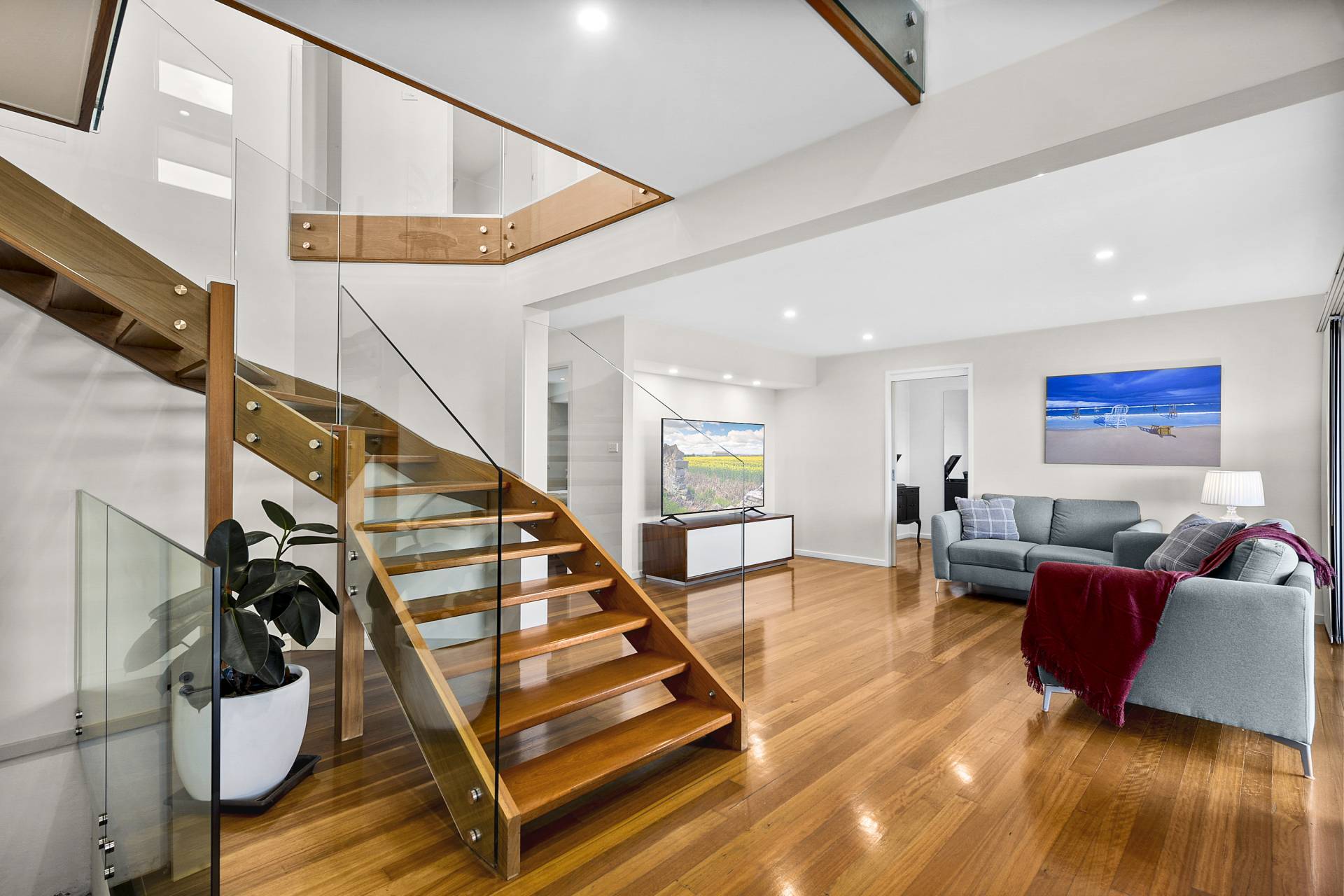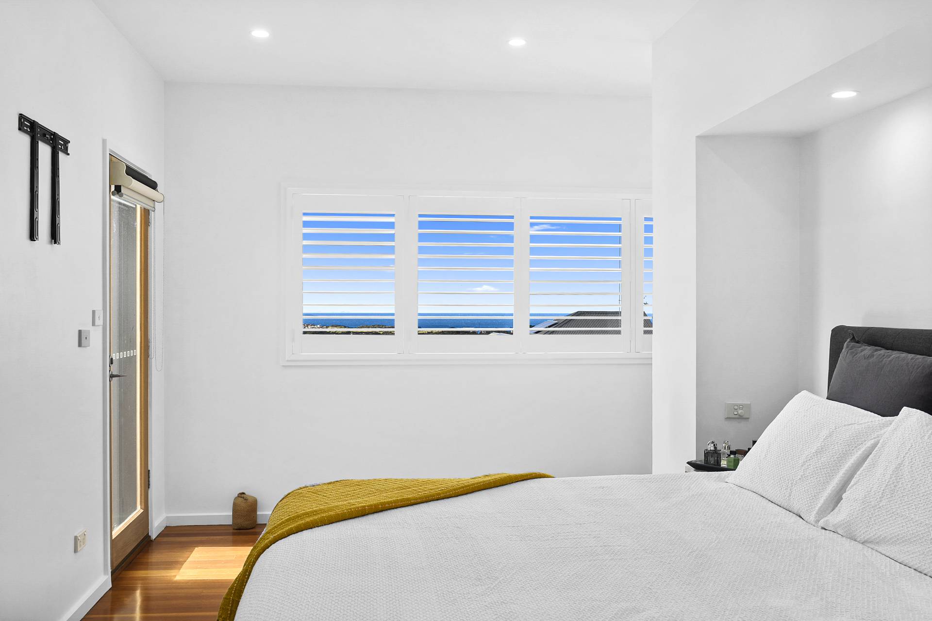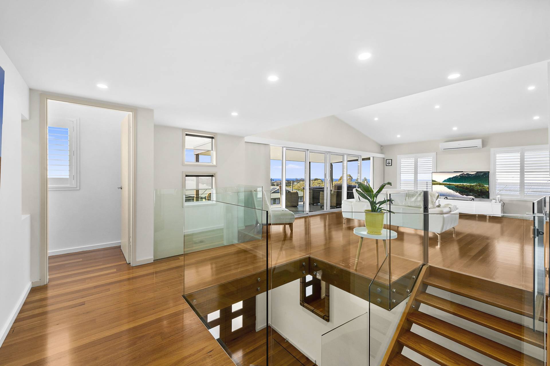 Step inside, and you'll discover sleek, pared-back interiors that are the epitome of modern sophistication. The open and airy living spaces are bathed in natural light, courtesy of large plantation-shuttered windows that stylishly frame the mesmerising views while offering the utmost privacy. The property's architectural brilliance is evident in its design details - frameless glass balustrades adorn the staircase, adding an extra layer of elegance and enhancing the sense of space. This is a home where every detail has been carefully considered, resulting in a harmonious blend of form and function, a clean canvas waiting only on your personal touches to make it your own.