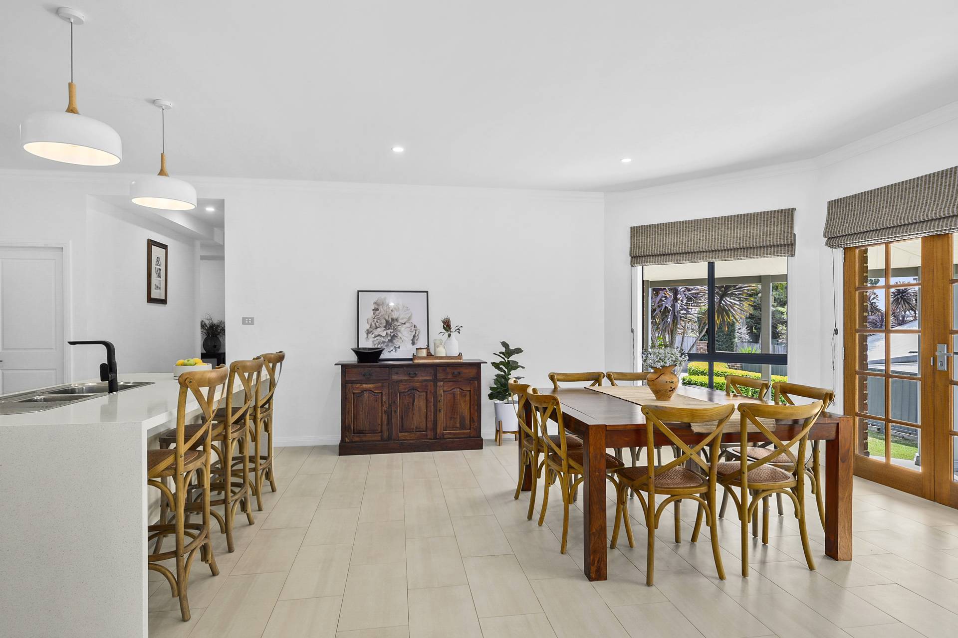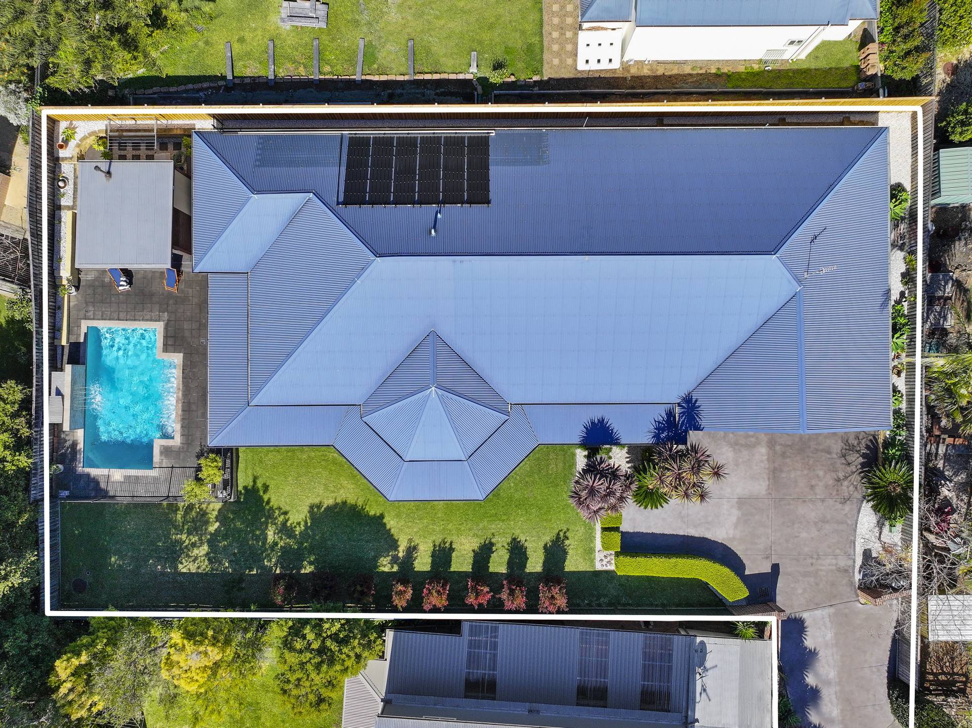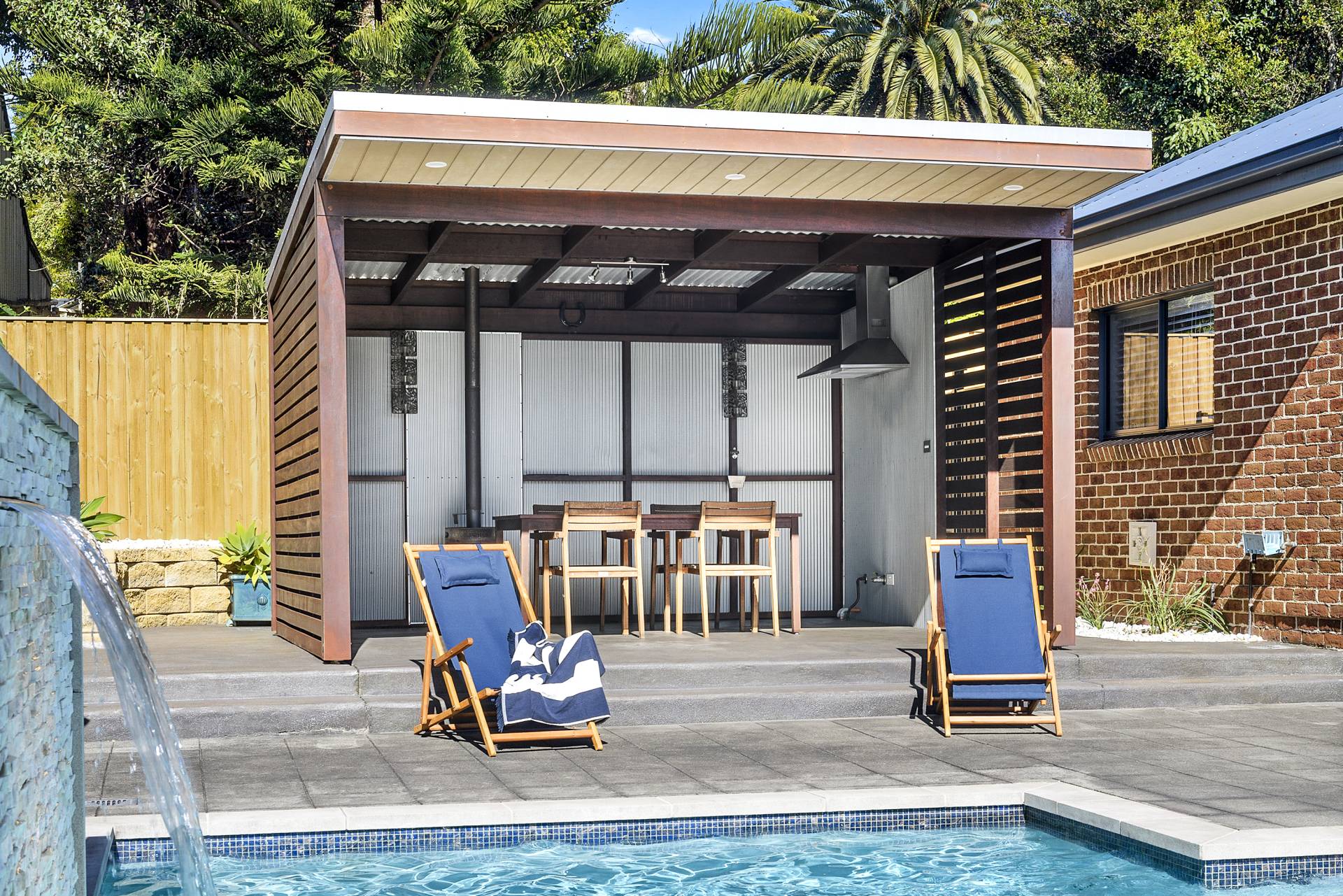 The side verandah leads directly onto a fully secured pool enclosure boasting an in-ground, solar heated pool as well as a pool cabana perfect for outdoor dining and entertaining in style and comfort.