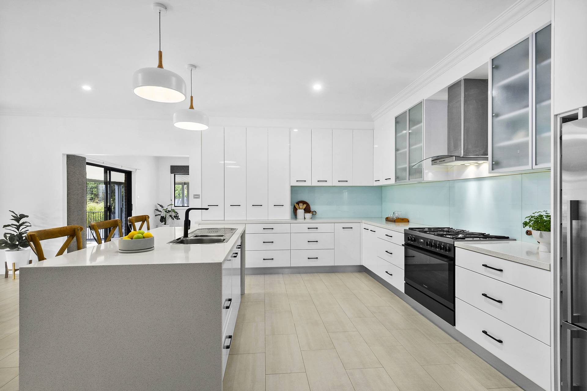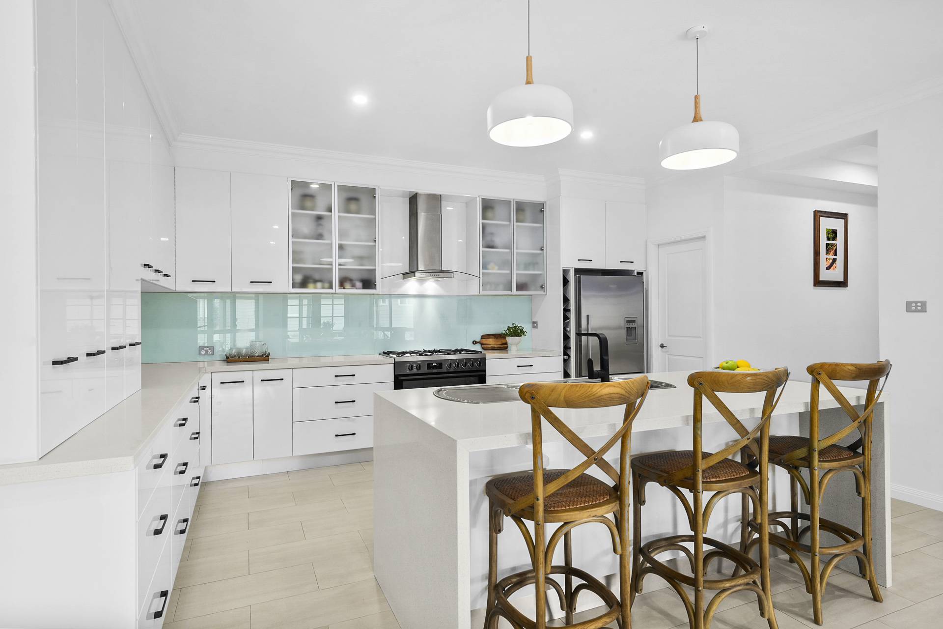 The home is presented in pristine condition, freshly painted throughout and with new carpet in all bedrooms, allowing you to move in and begin enjoying the lifestyle it offers from day one, with a formal living room and office/study directly adjoining the entrance foyer, a short passage leads you through to the relaxed, light-filled spacious family living, dining and modern, gourmet kitchen outfitted with glass splashbacks, crisp white cabinetry, high-end appliances, a walk-in pantry and large island bench with seating.