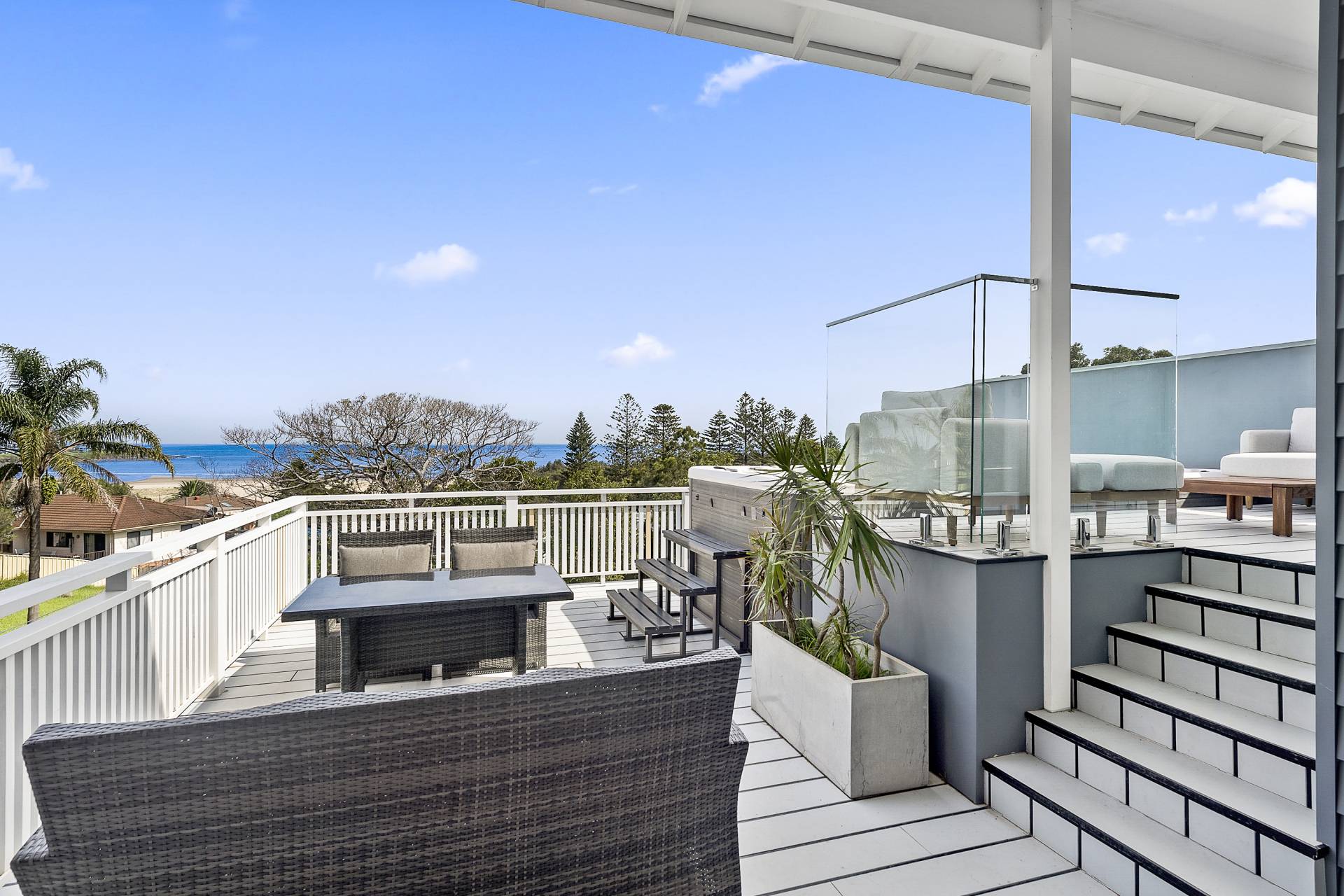 Balcony Deck Verandah Terrace/Paved Barbecue Indoor entertainment area Outdoor entertainment area Undercover outdoor area Water access Fenced Fireplace Skylight Low maintenance Smoke Alarms Ocean views Beach frontage Outside Spa Broadband Internet Ready Close to beach Water Tank Secure Parking Built-in wardrobe Air conditioning Dishwasher Workshop Ducted Heating Ducted Cooling Floorboards