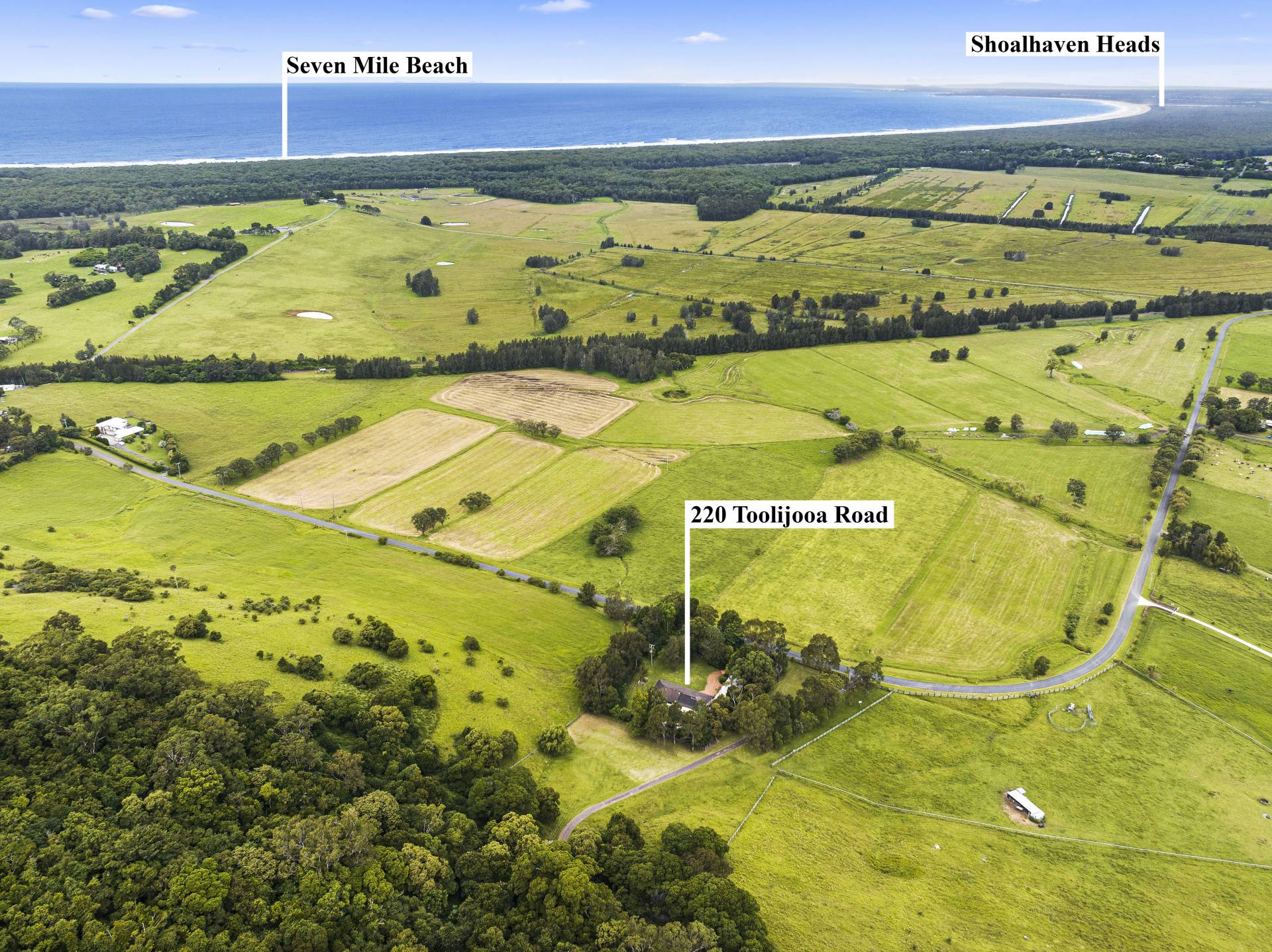 One of the most southerly villages in the Illawarra, Toolijooa in the local Dharawal language means ‘place of the emus’. Today, it’s a tightly held rural idyll with green pastures as far as the eye can see, and conveniently located a 5 minute drive to Gerringong, 10 minutes’ drive to both Kiama and Berry, moments from Gerroa and the breathtaking Seven Mile Beach and an approximate two-hour drive to Sydney CBD.  With the majority of properties in the valley consisting of larger, 50+ acres landholdings, 220 Toolijooa Road is a rare offering indeed - a family residence on a private and quiet 1-acre rural block.