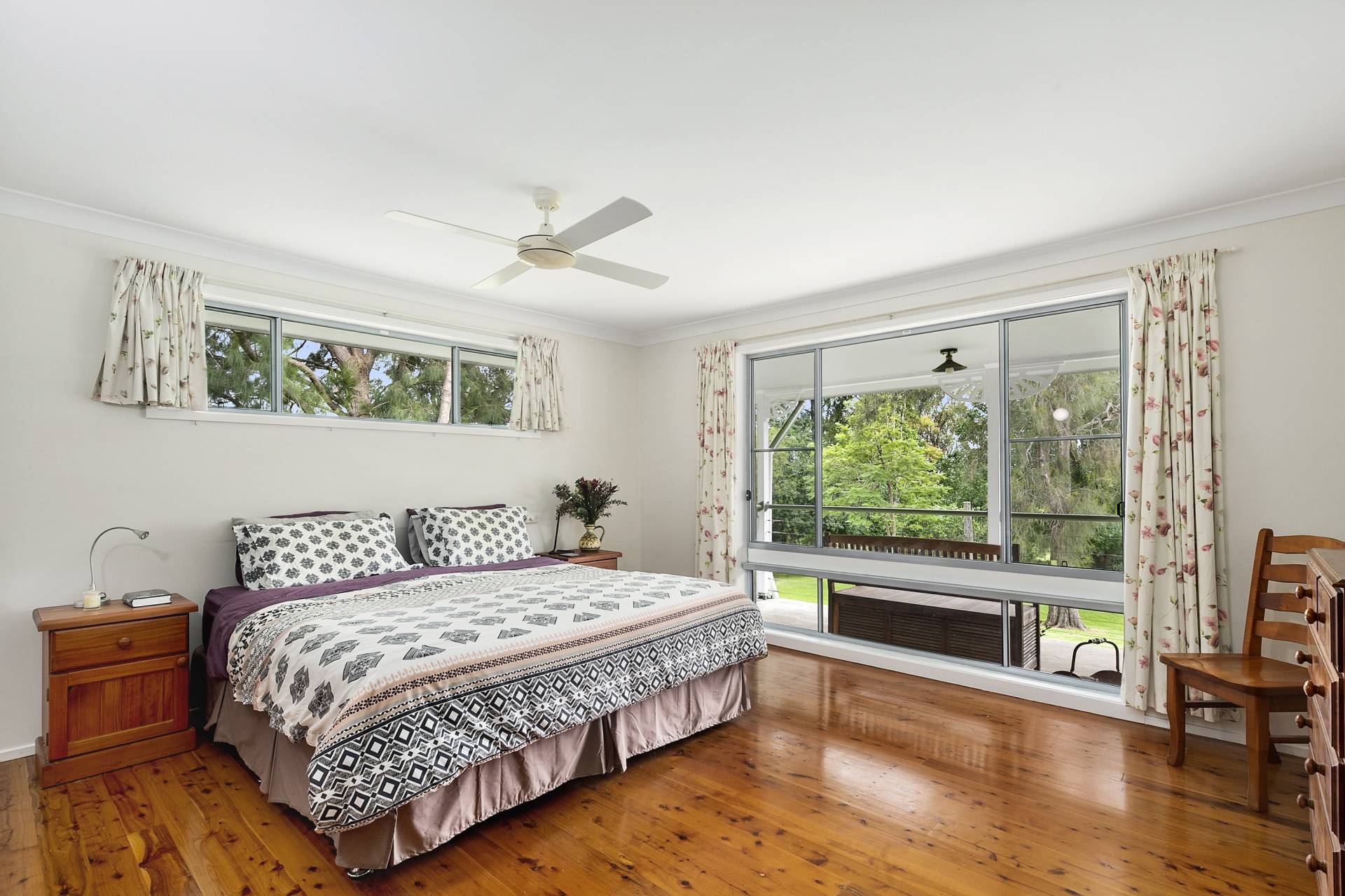 The principal bedroom, set apart at one end of the house, is of a generous size and features a spacious walk-in wardrobe and private bathroom. The remaining three bedrooms are equally spacious, providing plenty of room for family members and guests, with one currently in use as a home office/study. The principal and two of the other bedrooms all share direct access to the verandah, bringing in oodles of natural light and offering views of the garden and beyond.