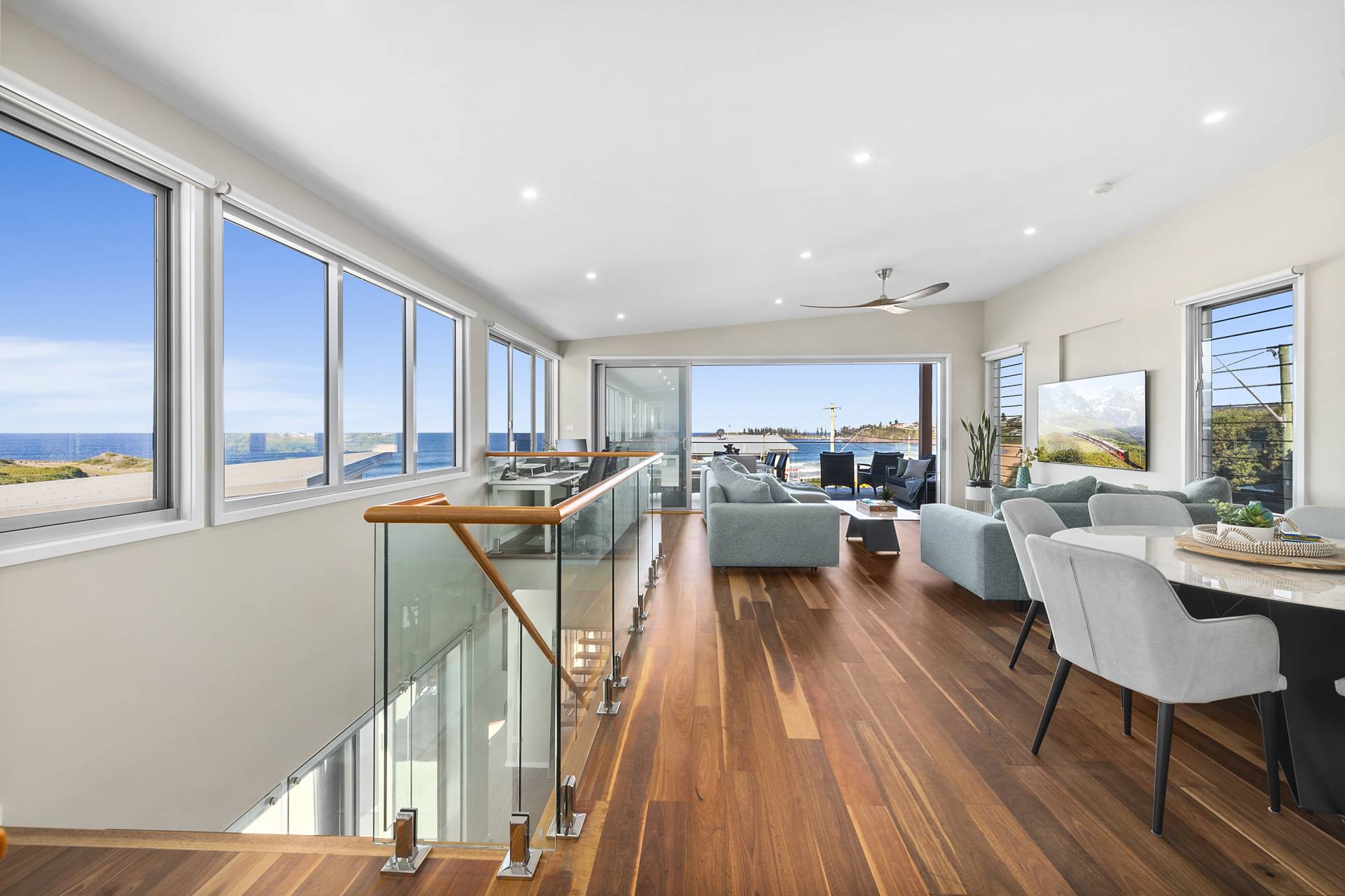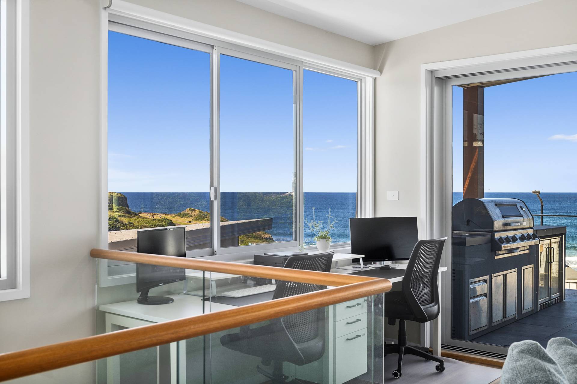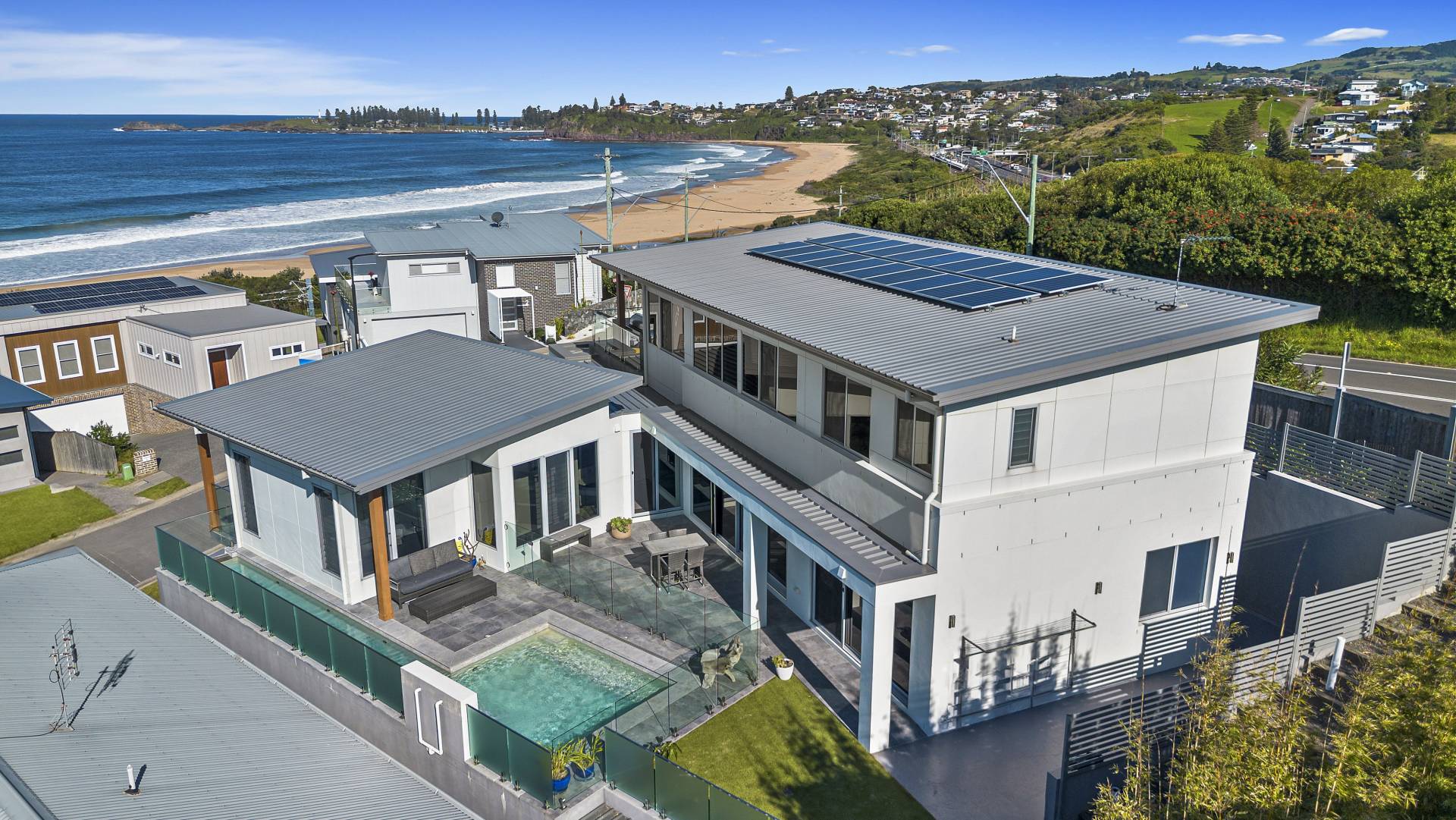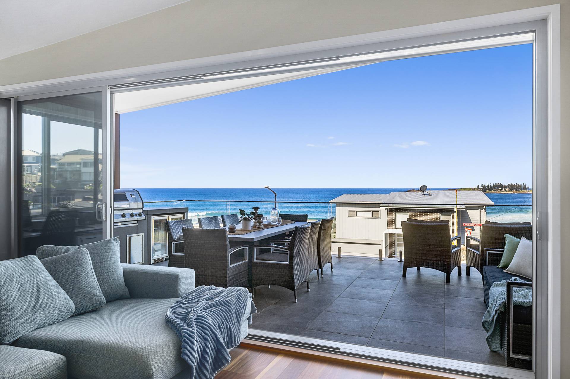 Designed to maximise the northeast exposure, the residence provides sweeping views of beautiful Bombo Beach, Kiama Harbour, and the iconic lighthouse. The spacious, open-plan layout ensures these stunning vistas can be enjoyed from the living room, dining area, luxury kitchen, expansive terrace, and most bedrooms.