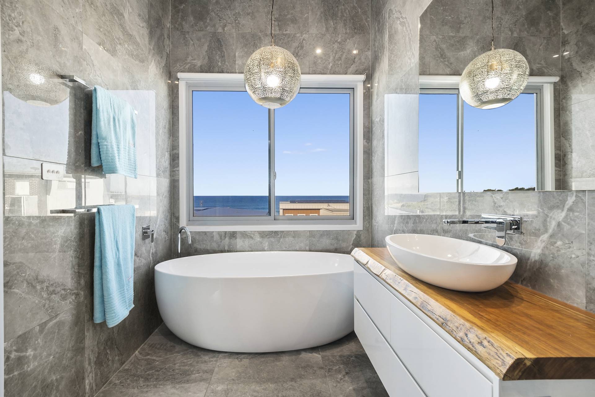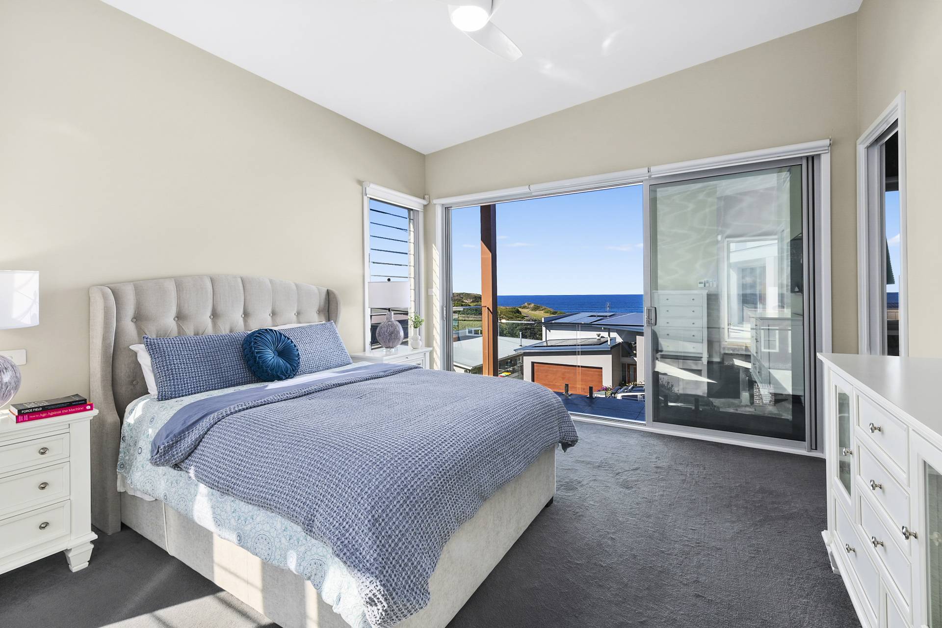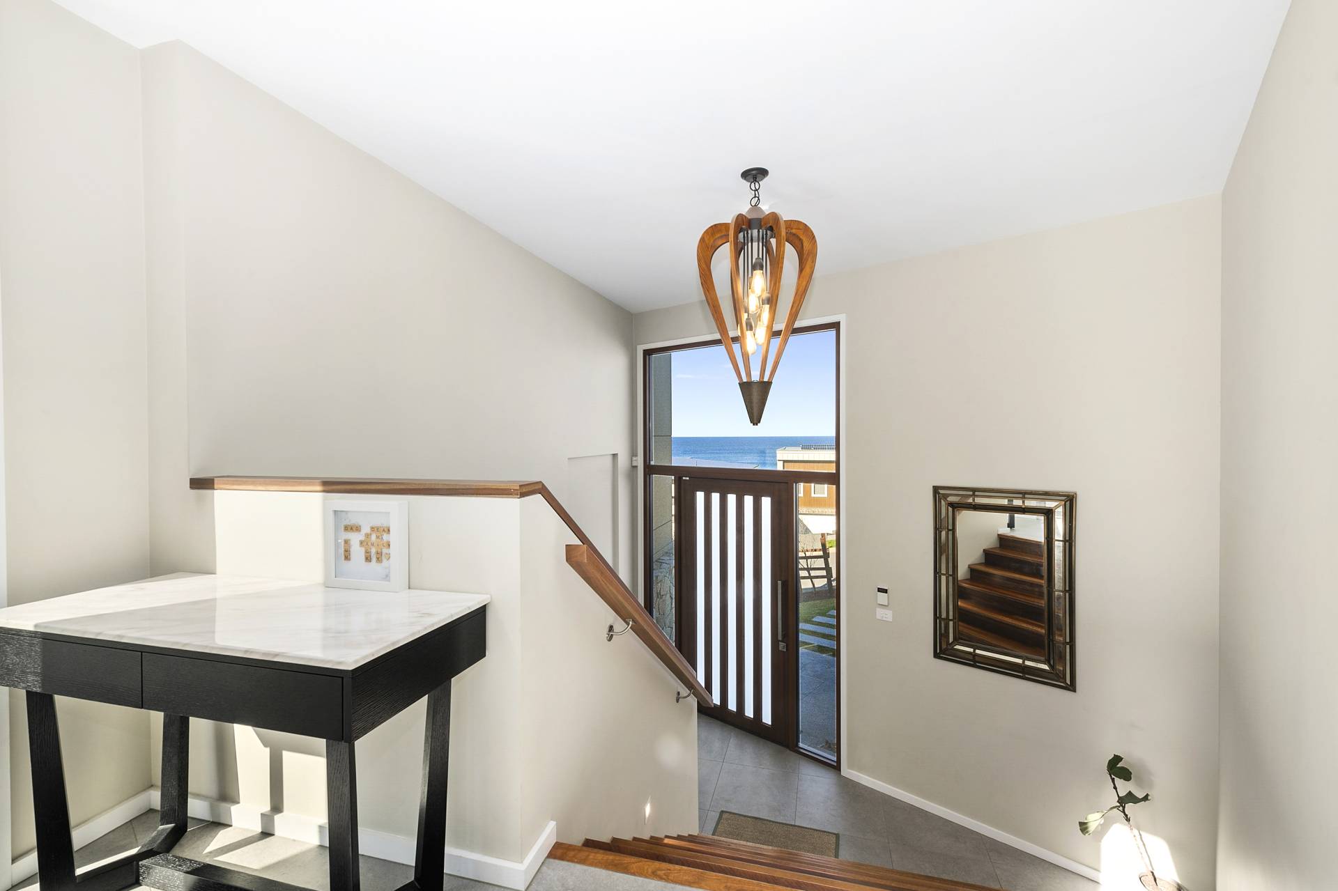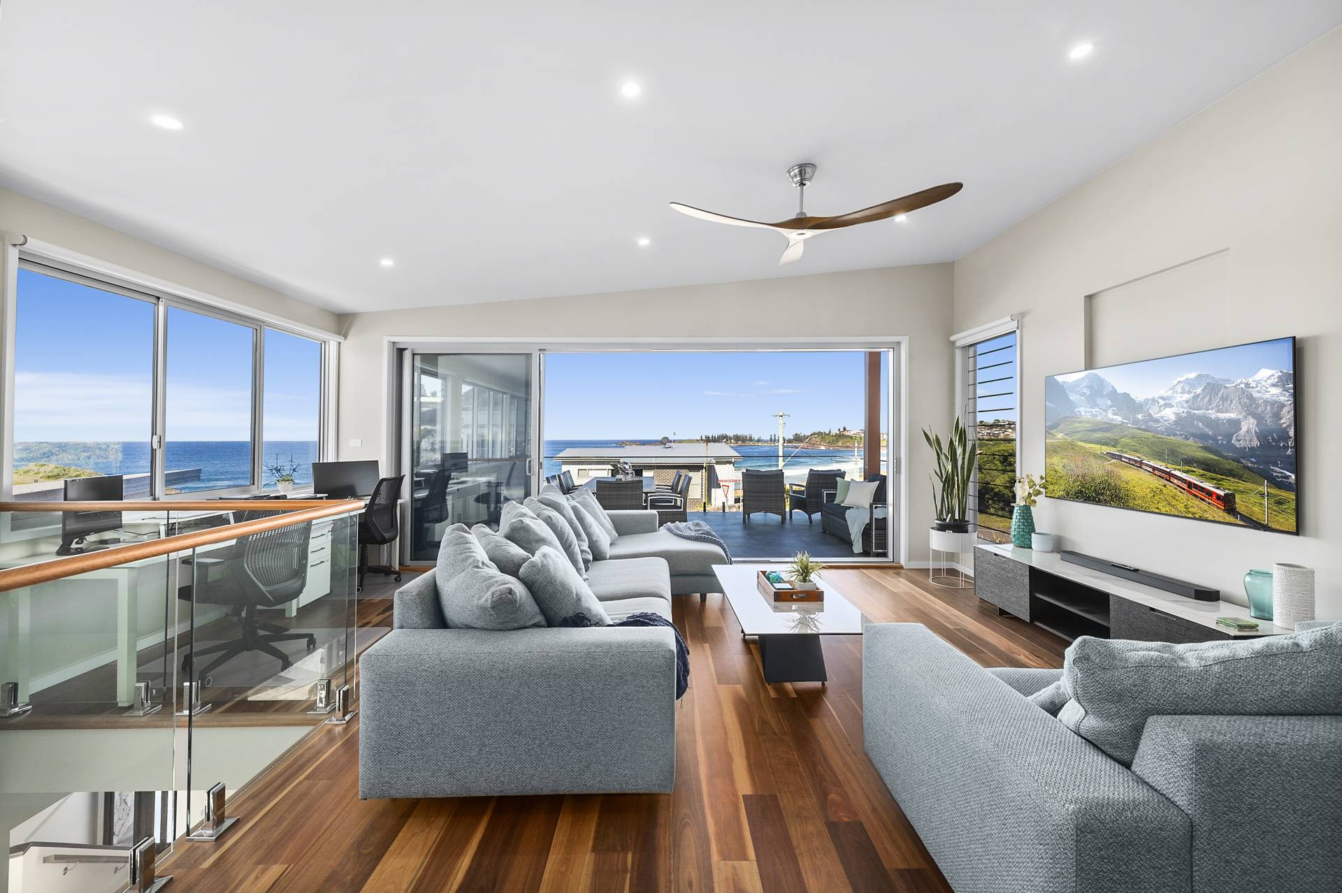 Designed to maximise the northeast exposure, the residence provides sweeping views of beautiful Bombo Beach, Kiama Harbour, and the iconic lighthouse. The spacious, open-plan layout ensures these stunning vistas can be enjoyed from the living room, dining area, luxury kitchen, expansive terrace, and most bedrooms.