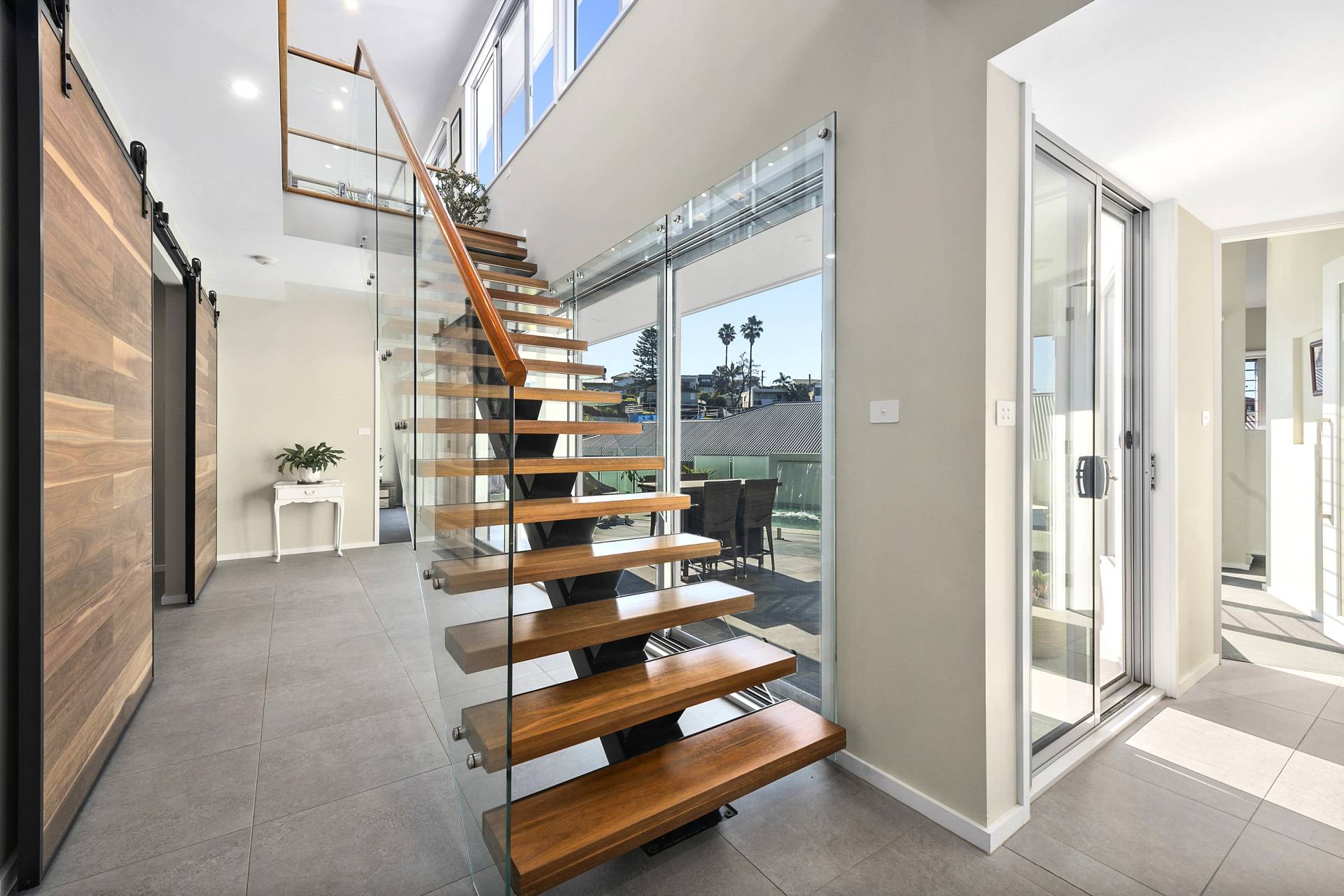 • Floating timber stairs made of spotted gum