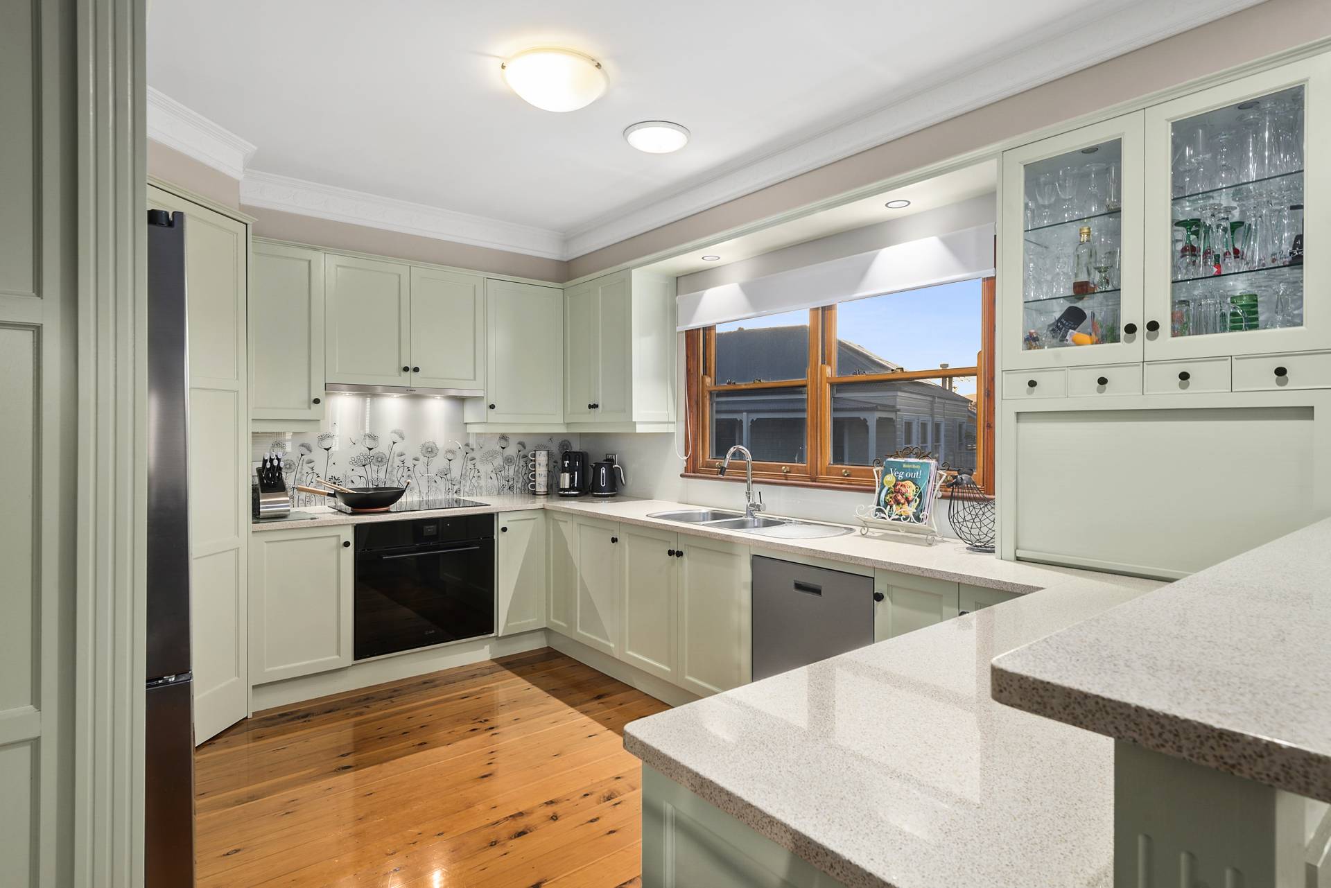 Ornate cornices and 9ft ceilings add a touch of elegance and a sense of spaciousness to the interiors, while beautiful Cyprus Pine timber floors feature throughout the home, enhancing its warm and inviting atmosphere.